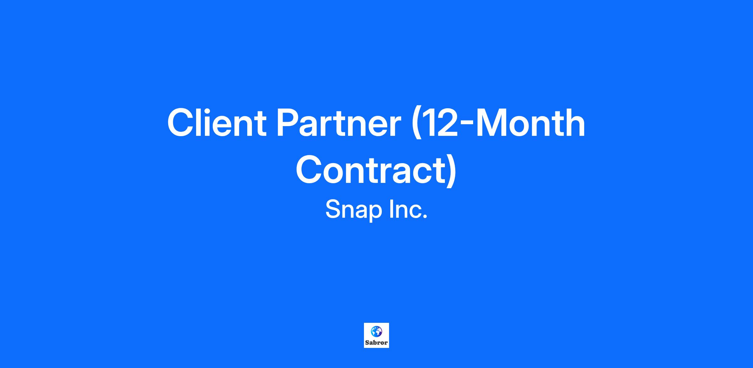 Snap Inc is a technology company. We believe the camera presents the greatest opportunity to improve the way people live and communicate. Snap contributes to human progress by empowering people to express themselves, live in the moment, learn about the world, and have fun together. The Company’s three core products are Snapchat, a visual messaging app that enhances your relationships with friends, family, and the world; Lens Studio, an augmented reality platform that powers AR across Snapchat and other services; and its AR glasses, Spectacles. We’re looking for a Client Partner to join Snap Inc! Please note, this is a 12-month fixed-term contract opportunity. You will build and manage partnerships with brands and agencies to help them expand their digital presences on Snap. You'll need great presentation and people skills, the ability to manage many projects at once, and a deep understanding of the digital advertising world. What you’ll do: Identify, prioritize, and secure business opportunities Ensure that our clients receive the highest level of sales and operational customer service Partner with other cross-functional teams on structuring and executing strategic initiatives Develop and implement best practices for client interaction, sales, and services Create persuasive sales presentations using market trends and case studies Responsible for educating clients on Snapchat products and best practices Create, own, and execute the strategic approach for each account in the assigned book of business with the intent to simultaneously unlock and elevate each relationship Analyze campaign performance statistics and recommend performance enhancements- Communicate and evolve a client's way of thinking to mirror success on Snap according to the Playbook & Planning Principals, while also balancing client goals Ensure strong health of the client relationships, identifying gaps where we do not have advocates, and asking for internal support to elevate Snapchat with clients under this book Own a room, present dynamically and instill confidence to challenge our clients in a kind, smart and creative way to ensure we are doing what is best for both businesses long-term Knowledge, Skills & Abilities: Extensive knowledge of social media, mobile apps, and digital and mobile marketing Ability to perform well in a highly dynamic, rapidly changing environment Excellent communication and presentation skills Ability to engage and partner with C-Level executives Ability to win the support of key stakeholders A team player and collaborator Experience running Weekly Office Hours, QBRs, arranging or leading top-to-tops, and comfortability with senior level engagement sessions Minimum Qualifications: Bachelor’s degree or equivalent preferred 5+ years of marketing, brand advertising, media sales, and/or online advertising experience Ability to travel as needed Preferred Qualifications: Proven track record of growing top to bottom relationships with both clients and agencies Proven track record of reaching and exceeding sales goals Creative, outside-the-box thinker, and strategist Passion for Snap, marketing, and up for the challenge of building something from the bottom up If you have a disability or special need that requires accommodation, please don’t be shy and provide us some information. "Default Together" Policy at Snap: At Snap Inc. we believe that being together in person helps us build our culture faster, reinforce our values, and serve our community, customers and partners better through dynamic collaboration. To reflect this, we practice a “default together” approach and expect our team members to work in an office 4+ days per week. At Snap, we believe that having a team of diverse backgrounds and voices working together will enable us to create innovative products that improve the way people live and communicate. Snap is proud to be an equal opportunity employer, and committed to providing employment opportunities regardless of race, religious creed, color, national origin, ancestry, physical disability, mental disability, medical condition, genetic information, marital status, sex, gender, gender identity, gender expression, pregnancy, childbirth and breastfeeding, age, sexual orientation, military or veteran status, or any other protected classification, in accordance with applicable federal, state, and local laws. EOE, including disability/vets. Our Benefits: Snap Inc. is its own community, so we’ve got your back! We do our best to make sure you and your loved ones have everything you need to be happy and healthy, on your own terms. Our benefits are built around your needs and include paid parental leave, comprehensive medical coverage, emotional and mental health support programs, and compensation packages that let you share in Snap’s long-term success! A Decade of Snap: Learn about our origin story, values, mission, culture of innovation, and more. CitizenSnap: In our third annual CitizenSnap Report, we demonstrate progress towards our environmental, social, and governance (ESG) goals, and we lay out our plans looking forward. The DEI Innovation Summit: Watch highlights from the 2nd annual DEI Innovation Summit, which brings together thought leaders and DEI experts for a day of courageous conversations to enable bold action. Snap News: Stay up to date on the latest and greatest product and innovation news at Snap Applicant and Candidate Privacy Policy