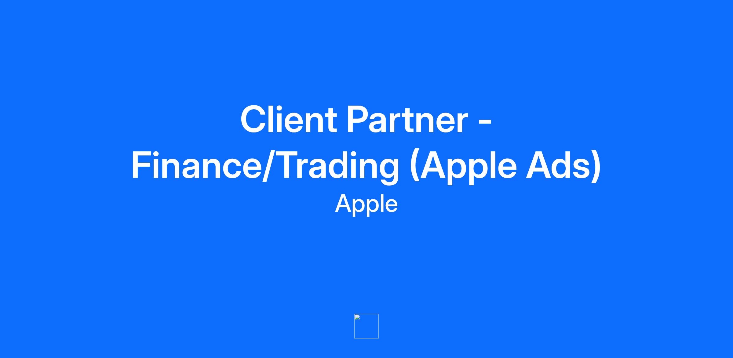 At Apple we don’t just create products — we create the kind of wonder that’s revolutionised entire industries. It’s the diversity of those people and their ideas that inspires the innovation that runs through everything we do, from amazing technology to industry-leading environmental efforts. Our Advertising Platforms are a set of technologies that enable thriving ecosystems for Apple’s content partners: we help publishers and developers earn money for the work that they produce, and we help consumers to discover the amazing content that iOS developers are creating for their iPhone and iPad. DESCRIPTION We have a new opportunity for a Client Partner to join our growing team and help businesses achieve success through promotion and discovery with Apple Ads. Our strategic team focuses on key app verticals and this role will have a focus on the finance and trading category. In this role, you will manage the strategy across a focused portfolio of clients, drive adoption of our growing ads offering and onboard new developer partners in the region. MINIMUM QUALIFICATIONS You are a self-starter with a proven track record of exceeding sales targets within advertising. Extensive experience working with app developers, brands, or agencies, ideally within the mobile or performance marketing sector. Demonstrates a professional and positive demeanour, with a strong ability to collaborate effectively across teams, fostering a culture of shared success. Industry knowledge across the finance category (banking or trading) is preferable. PREFERRED QUALIFICATIONS A consultative selling approach, inspiring clients to consider new perspectives and influencing strategic direction, positioning the company as a trusted partner in achieving business outcomes. Proven experience building relationships with C-level executives and managing multiple projects, business leads, and internal stakeholders. Excellent strategic and tactical thinking skills, with the ability to align strategies to deliver customer outcomes. Excellent communications skills with the ability to listen effectively, socialise ideas across functions and articulate the business visions both internally and externally. Fluency in English and one other European language (e.g Spanish or Italian) is preferable.