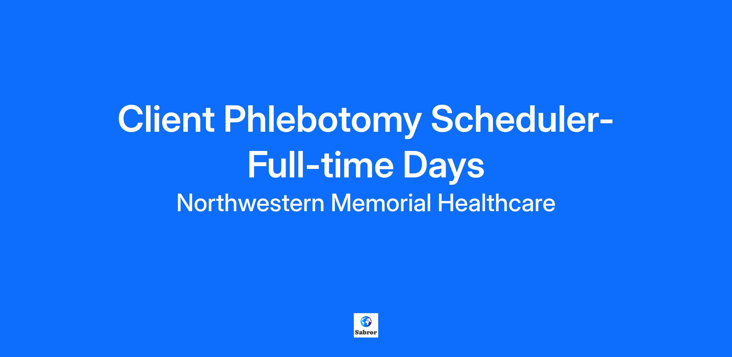 The Client Phlebotomy Scheduler reflects the mission, vision, and values of Northwestern Medicine, adheres to the organization's Code of Ethics and Corporate Compliance Program, and complies with all relevant policies, procedures, guidelines and all other regulatory and accreditation standards.