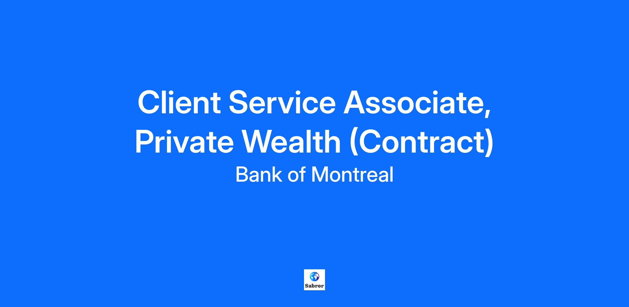 Client Service Associate, Private Wealth (Contract)