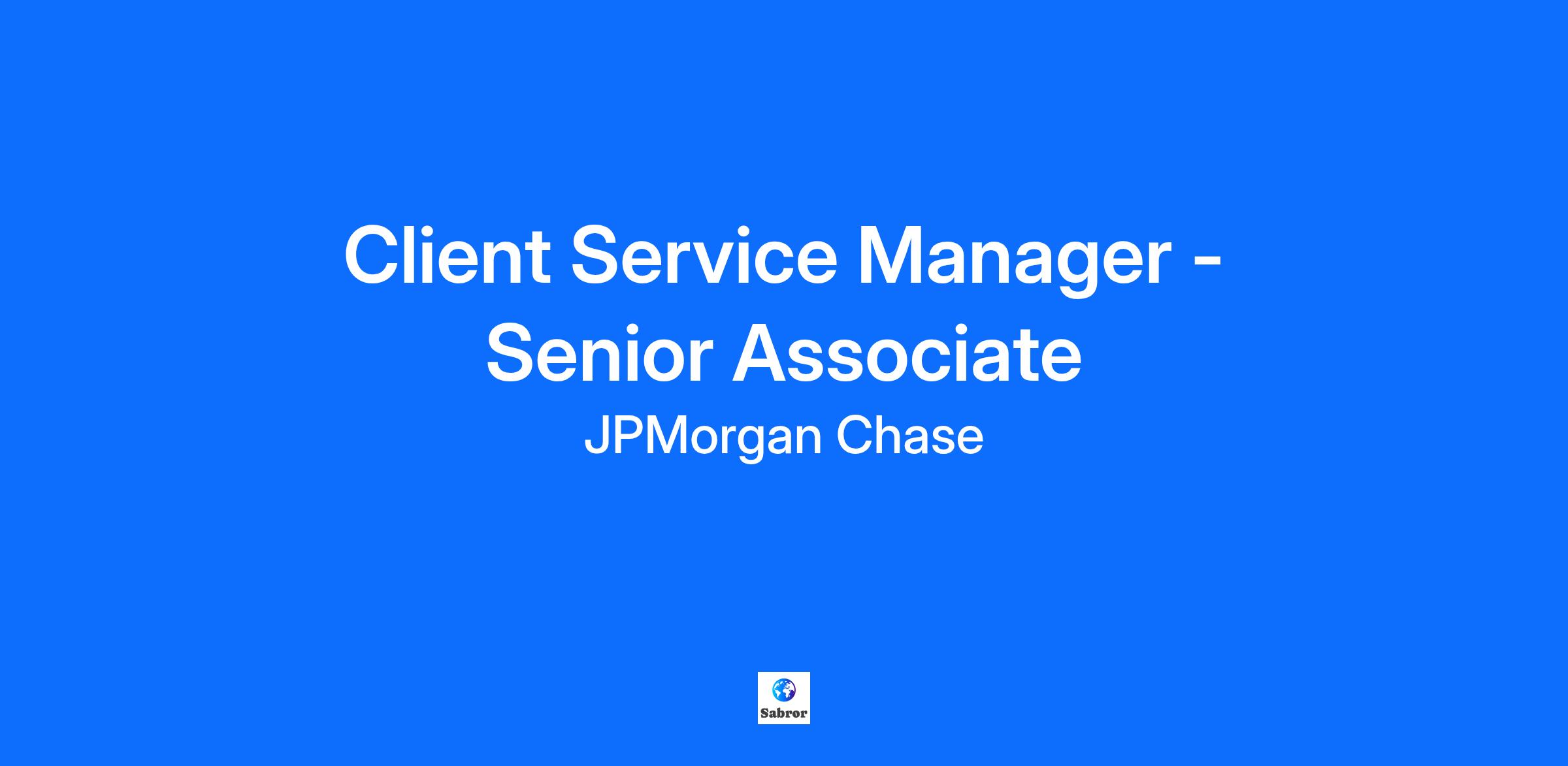 Client Service Manager - Senior Associate