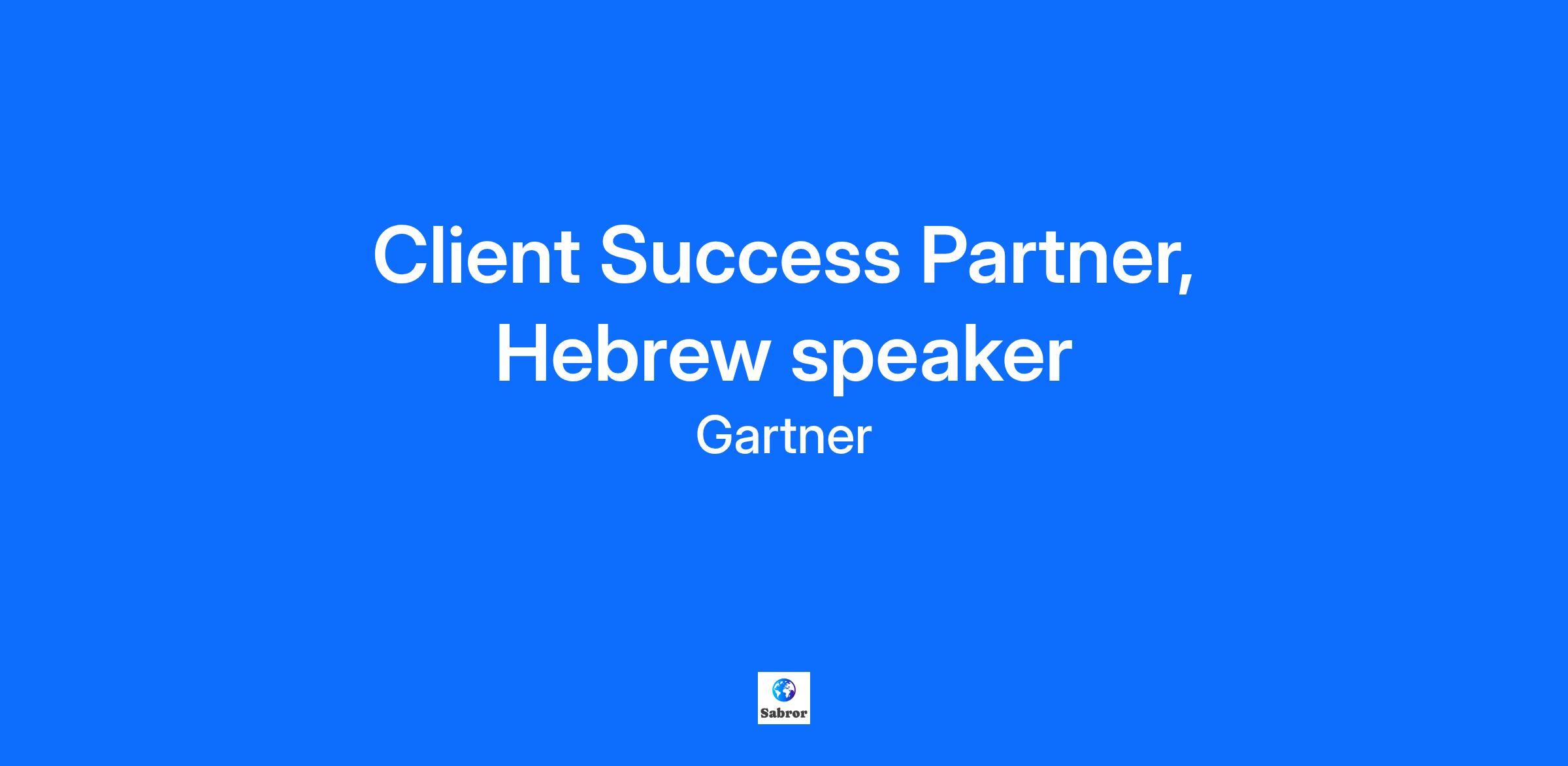 Role: Client Success Partner - Hebrew Speaking Location: Egham OR Barcelona About the role: The Client Success team follows a Client for Life Philosophy, and individuals in this role ensure that every Gartner client receives value far exceeding their investment. Associates seek to understand and surface client’s business priorities, breakdown challenges, apply logic, and identify the most effective ways to support the client in making the right decisions for their business. They are responsible for onboarding clients, proving the concept of Gartner services, and stimulating client engagement of products that are used by large client teams. What you will do: Build, develop and manage relationships with a variety of clients ranging from senior C-levels to more junior client professions in IT, HR, Supply Chain, Marketing, Finance, Legal, and Sales practices ensuring they are successful in the utilization of their Gartner subscription, resulting in client satisfaction, retention, and growth Introduce Gartner services and capabilities to new clients and communicate value to decision makers Facilitate client calls and engagements to surface client priorities, and recommend a program of action that drives high value and return of investment on their Gartner membership Collaborate with internal Gartner partners to overcome obstacles and maximize the value Gartner delivers to clients Conduct regular reviews of client book of business looking into performance and key client engagement metrics What you will need: 2+ years relevant professional and/or internship experience Bachelor’s or Master’s degree preferred Proven track record of success fueled by a passion for delighting clients Strong communication, collaboration, prioritization, critical thinking, and influencing skills Ability to use English (Reading, Writing and Speaking) at a Business or Native level Hebrew language proficiency required What you will get: We offer a highly competitive rewards & benefits package Collaborative, team-oriented culture that embraces diversity Professional development and unlimited growth opportunities #LI-WB3 Who are we? At Gartner, Inc. (NYSE:IT), we guide the leaders who shape the world. Our mission relies on expert analysis and bold ideas to deliver actionable, objective business and technology insights, helping enterprise leaders and their teams succeed with their mission-critical priorities. Since our founding in 1979, we’ve grown to 21,000 associates globally who support ~14,000 client enterprises in ~90 countries and territories. We do important, interesting and substantive work that matters. That’s why we hire associates with the intellectual curiosity, energy and drive to want to make a difference. The bar is unapologetically high. So is the impact you can have here. What makes Gartner a great place to work? Our vast, virtually untapped market potential offers limitless opportunities – opportunities that may not even exist right now – for you to grow professionally and flourish personally. How far you go is driven by your passion and performance. We hire remarkable people who collaborate and win as a team. Together, our singular, unifying goal is to deliver results for our clients. Our teams are inclusive and composed of individuals from different geographies, cultures, religions, ethnicities, races, genders, sexual orientations, abilities and generations. We invest in great leaders who bring out the best in you and the company, enabling us to multiply our impact and results. This is why, year after year, we are recognized worldwide as a great place to work. What do we offer? Gartner offers world-class benefits, highly competitive compensation and disproportionate rewards for top performers. In our hybrid work environment, we provide the flexibility and support for you to thrive — working virtually when it's productive to do so and getting together with colleagues in a vibrant community that is purposeful, engaging and inspiring. Ready to grow your career with Gartner? Join us. The policy of Gartner is to provide equal employment opportunities to all applicants and employees without regard to race, color, creed, religion, sex, sexual orientation, gender identity, marital status, citizenship status, age, national origin, ancestry, disability, veteran status, or any other legally protected status and to seek to advance the principles of equal employment opportunity. Gartner is committed to being an Equal Opportunity Employer and offers opportunities to all job seekers, including job seekers with disabilities. If you are a qualified individual with a disability or a disabled veteran, you may request a reasonable accommodation if you are unable or limited in your ability to use or access the Company’s career webpage as a result of your disability. You may request reasonable accommodations by calling Human Resources at +1 (203) 964-0096 or by sending an email to ApplicantAccommodations@gartner.com. Job Requisition ID:105013 By submitting your information and application, you confirm that you have read and agree to the country or regional recruitment notice linked below applicable to your place of residence. Gartner Applicant Privacy Link: https://jobs.gartner.com/applicant-privacy-policy For efficient navigation through the application, please only use the back button within the application, not the back arrow within your browser. At Gartner, we guide the leaders who shape the world. About 14,000 client enterprises worldwide rely on Gartner for actionable, objective insight. Our teams of thinkers and doers know that staying curious is the best way to shape the future, for ourselves and our clients. Our sustained success creates limitless opportunities for you to grow professionally and flourish personally. We have a vast, virtually untapped market potential ahead of us, providing you with an exciting trajectory long into the future. How far you go is driven by your passion and performance