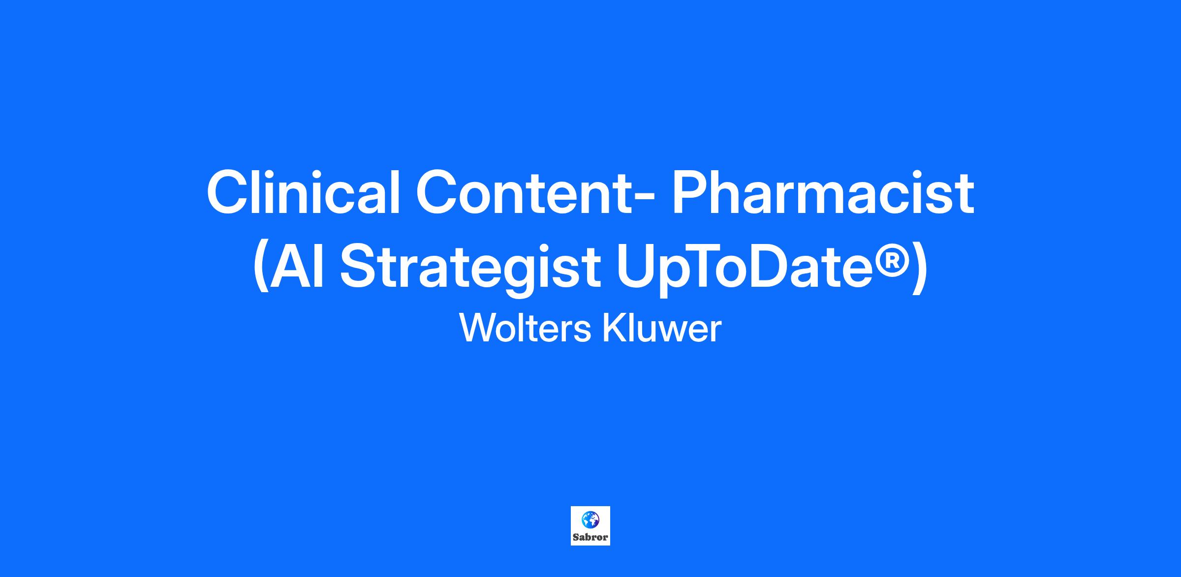 LOCATION: U.S. locations – remote/hybrid. Candidates within commuting distance of a Wolters Kluwer office will be considered for hybrid employment. Candidates not within commuting distances will be considered for remote employment. OVERVIEW Wolters Kluwer, UpToDate® Lexidrug® is seeking a clinically experienced pharmacist to join our clinical AI strategy team, with a specific focus on drug content innovation. This role will help define how pharmacologic knowledge is embedded into AI systems and contribute to the development of standards for safe, scalable, and clinically meaningful medication decision support. The ideal candidate brings deep clinical expertise and strong communication skills, thrives in a fast-paced, start-up-like environment, and is excited to work cross-functionally to shape the future of healthcare technology. RESPONSIBILITITES Clinical AI Strategy & Development (80% to 100%) Collaborate with cross-functional teams to design and refine AI systems, including prompt strategies and medication-related search logic. Define and maintain pharmacologic indices and decision pathways that reflect real-world clinical reasoning. Contribute to the development and execution of validation processes for medication-related AI outputs. Translate user feedback into system improvements in partnership with product, engineering, and editorial teams. Monitor regulatory frameworks and risk management strategies relevant to clinical AI and pharmacy practice. Represent UpToDate externally through white papers, conference presentations, and thought leadership. Help establish internal standards and best practices for AI-driven drug content delivery. Clinical Practice (Optional – up to 20%) Maintain limited clinical practice to stay current with evolving standards and workflows. QUALIFICATIONS Education: PharmD or equivalent clinical pharmacy degree. Experience: Minimum 5 years of clinical experience in hospital, ambulatory, or managed care settings. Active clinical practice preferred; board certification strongly preferred. A valid license in at least one U.S. state, preferred Strategic mindset with the ability to contribute to central clinical content strategy and influence product direction. Experience with clinical decision support tools, formulary management, or medication safety programs. Familiarity with AI technologies, natural language processing, or healthcare informatics preferred. Understanding of evidence-based medicine principle and background in clinical research or statistics is a plus. Strong analytical, writing, and communication skills. Ability to work independently and collaboratively in a fast-paced, cross-functional environment. Experience leading teams or contributing to product development is a strong plus. Comfort with ambiguity and rapid iteration; ability to pivot quickly based on feedback and evolving strategy. TRAVEL: 1 week every six weeks for team meetings #LI-Remote Applicants may be required to appear onsite at a Wolters Kluwer office as part of the recruitment process. Compensation: Target salary range CA, CT, CO, DC, HI, IL, MA, MD, MN, NY, RI, WA: $199,300 - $282,100 Additional Information: Wolters Kluwer offers a wide variety of competitive benefits and programs to help meet your needs and balance your work and personal life, including but not limited to: Medical, Dental, & Vision Plans, 401(k), FSA/HSA, Commuter Benefits, Tuition Assistance Plan, Vacation and Sick Time, and Paid Parental Leave. Full details of our benefits are available upon request. If making a difference matters to you, then you matter to us. Join us, at Wolters Kluwer, and be part of a dynamic global technology company that makes a difference every day. We’re innovators with impact. We provide expert software and information solutions that the world’s leading professionals rely on, in the moments that matter most. You’ll make a real difference in the lives of millions of people. Together with our customers, we help to advance sustainability, health, justice, prosperity, and commerce around the world. You can thrive at Wolters Kluwer, where diversity is core to our collective strength and high performance. Be your unique self, share your creative ideas, do your best work, and take time to grow in our caring and inclusive culture where you can belong. Wolters Kluwer reported 2023 annual revenues of €5.6 billion. The group serves customers in over 180 countries, maintains operations in over 40 countries, and employs approximately 21,400 people worldwide. Our customers work in industries which impact the lives of millions of people every single day. Our mission is to empower our professional customers with the information, software solutions, and services they need to make critical decisions, achieve successful outcomes, and save time. Our expert solutions combine deep domain knowledge with technology to deliver both content and workflow automation to drive improved outcomes and productivity for our customers. We are committed to helping professionals improve the way they do business and solve complex problems with our range of digital solutions and services, which we continuously evolve to meet their changing needs. Our 188-year legacy and portfolio represent thousands of customers worldwide. For more information about our solutions and organization, visit www.wolterskluwer.com, follow us on Twitter, Facebook, and LinkedIn. Wolters Kluwer has a dedicated team of experienced talent acquisition professionals who are ready to hear what makes you tick and share how Wolters Kluwer can help you achieve your goals and ambitions. Here Rasi Fawaz shares some tips on what recruiters are looking for on a resume. As a global organization, we recognize that solving a wide range of complex problems requires diverse perspectives and innovative thinking. We know that bringing our best to our customers, communities, and other key stakeholders requires a highly engaged and talented workforce – 