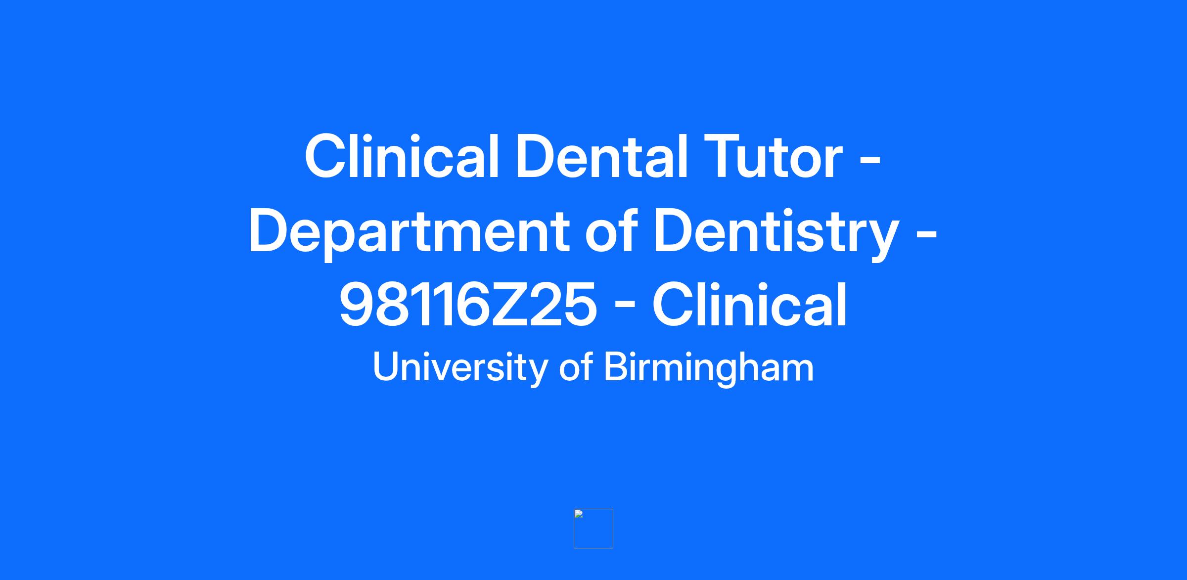 Position Details Department of Dentistry, School of Health Sciences, College of Medicine and Health Location: University of Birmingham, Edgbaston, Birmingham UK Full time starting salary is normally in the range £45,943 to £82,701 Clinical Part Time (16 hours per week) Fixed Term contract up to January 2027 Closing date: 12th January 2026 Background An opportunity has arisen for an individual to join the enthusiastic and forward-looking team of Clinical Dental Tutors and academics at the University of Birmingham teaching undergraduate dental students registered on the BDS degree programme. Teaching on the open plan clinics, supervising patient care, at the Birmingham Dental Hospital and School of Dentistry provides an excellent opportunity to shape the future dental professional using modern assessment and feedback technologies. The state-of-the-art Dental Hospital and School opened in 2016 as the first integrated, stand-alone facility of its kind in the UK for almost 40 years. Students have access to microscopes and other modern dental equipment to ensure they get the clinical experience they need to enter the profession upon graduation. This role has a focus on teaching in Fixed and Removable Prosthodontics and Primary Care Dentistry. College Overview and Structure The College of Medicine and Health (CMH) is the largest of the University’s five Colleges with over 1,700 members of staff ensuring teaching and research excellence across a wide range of pre-clinical and clinical disciplines. The College structure is aligned under three Schools (Principal Academic Units): the School of Medical Sciences, the School of Health Sciences and the School of Infection, Inflammation and Immunology. Within these three schools sit fifteen different departments, including our clinical trials units: School of Medical Sciences: Cancer and Genomic Sciences Cardiovascular Sciences Metabolism and Systems Science Birmingham Medical School Cancer Research UK Clinical Trials Unit (CRCTU) School of Health Sciences: Pharmacy Dentistry Nursing and Midwifery Applied Health Sciences Birmingham Clinical Trials Unit (BCTU) School of Infection, Inflammation and Immunology: Immunology and Immunotherapy Inflammation and Ageing Microbes, Infections and Microbiomes Biomedical Sciences Clinical Immunology Service Our departments are in identified areas of high-performing research and teaching excellence, each with an ambitious strategy and empowered leadership. We draw together outstanding academic, clinical, and professional services staff around coherent and highly collaborative themes. Role Summary The Department of Dentistry is looking to appoint a Clinical Dental Tutor to work under the direction of the Academic Leads for Clinical Practice, Specialty Teaching, Programme Director and the Head of Department. To undertake clinical teaching and/or laboratory-based simulation teaching and associated administrative duties including progress monitoring, report writing and feeding into the Department’s reporting processes, particularly with a focus on the delivery of teaching in and supervision of students providing Fixed and Removable Prosthodontics and Primary Care Dentistry. The demonstration of initiative in contributing actively to the continued development and improvement of the teaching programme is welcomed and expected. Clinical teaching sessions run through the day (08:30-12:30 morning and 13:00-17:00 afternoon). The post holder will be required to work through the day or on a sessional basis, which will be agreed at the time of appointment. Main Duties Teaching Clinical supervision of integrated adult restorative dentistry teaching in Clinical Practice or specific Specialty Teaching areas, including paediatrics, fixed and removable prosthodontics, endodontics, periodontics, simulation environments and occasionally in other areas as required. Simulation teaching, as directed by Specialty Teaching areas, utilising phantom heads in both the laboratory and clinical environments. To monitor student progress with clinical procedures and to intervene when appropriate. Participation in tutorials and lecture programme which may include development of new teaching materials as appropriate. Preparation of the required teaching material and conforming to relevant teaching policies, including those published by Specialty Teaching areas. To clarify these policies where necessary through discussion with the area concerned. Continuous Assessment/Feedback Maintain a professional record of student achievement and clinical experience on a sessional basis including timely provision of recorded feedback to the student. Currently, this is provided digitally through the use of an online application CAFS (Clinical Assessment & Feedback System). To provide input (report writing) to termly Continuous Assessment reports, collated by the Head of Firm or Specialty Lead. Ensure that unsatisfactory performance is explained in a supportive manner and duly noted in records so that they can be substantiated. Provide verbal and written feedback to students on strengths and weaknesses as close to the event as possible. Participate in examinations including, from time to time, the invigilation, assessment, question setting and marking of examination papers. Clinical Organisation To conform to the clinical policies, guidelines, and standard operating procedures of Birmingham Community Healthcare NHS Foundation Trust (BCHCfT) and the Department of Dentistry. To support the Speciality Lead and/or Head of Firm in the safe and efficient running of the clinic. To complete clinical documentation as appropriate to the hospital and local teaching area. Check student clinical patient record entries for errors or omissions. Electronically sign the hospital clinical patient record. Check and sign to authorise dental technical laboratory prescriptions and IRMER compliant radiography prescriptions. Initial clinical stages and items. Target items according to 