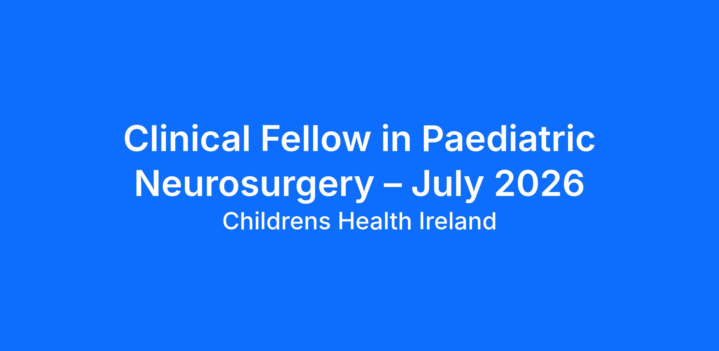 Are you ready to take the next step in your paediatric career? Children’s Health Ireland (CHI) is now inviting applications for Clinical Fellow in Paediatric Neurosurgery, commencing Monday, 13th July 2026.