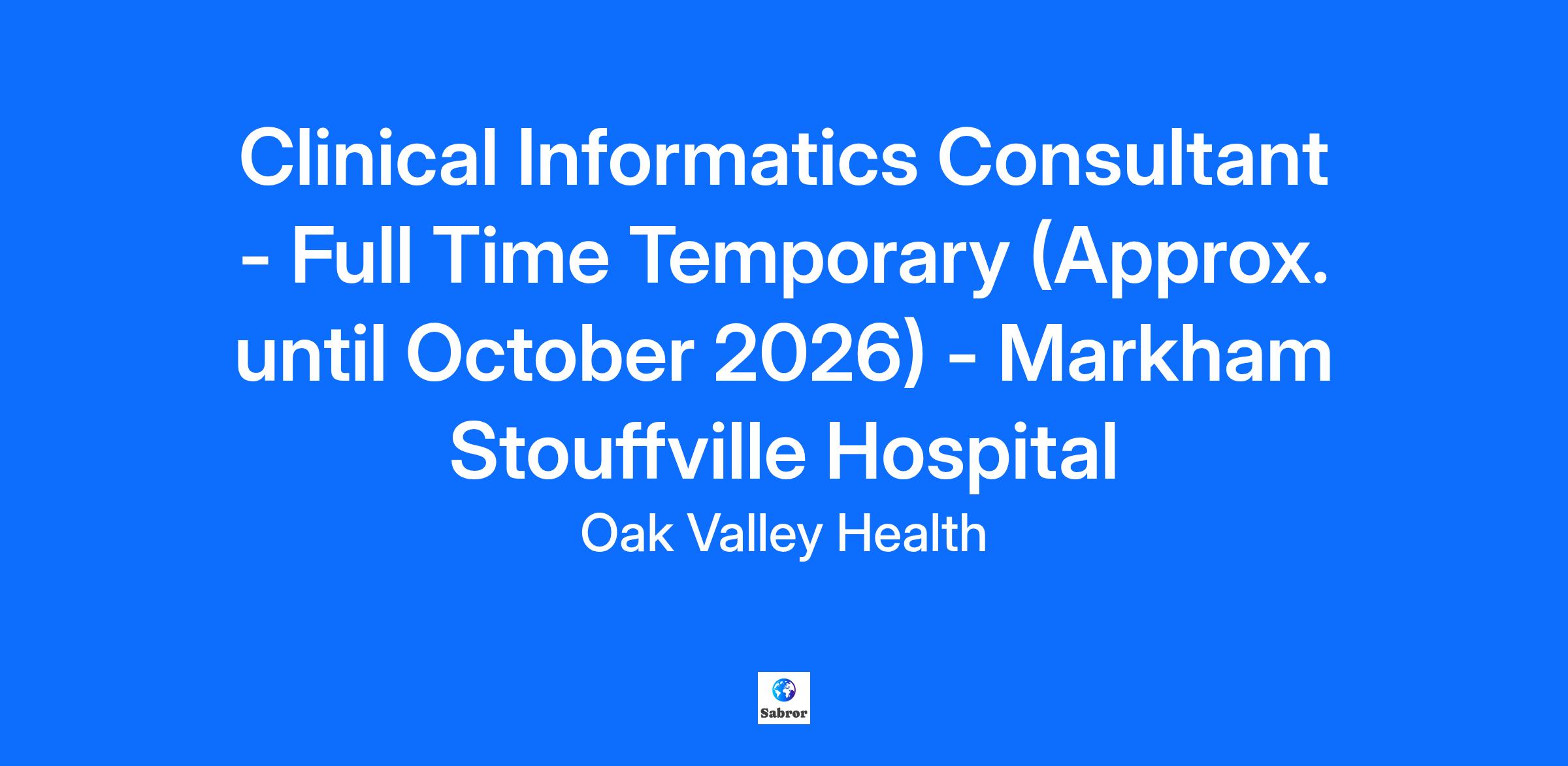 Please Note: If you are a current Oak Valley Health employee, apply to this job via the internal Workday application. Land acknowledgement: Oak Valley Health is honoured to provide care on the traditional and treaty territory of the Anishinaabeg, and acknowledge our closest Indigenous communities, the Chippewas of Georgina Island and the Mississaugas of Scugog Island. The land is encompassed within Treaty 13, Treaty 20, and the Williams Treaty. Today, this area is home to many diverse Indigenous Peoples, and we acknowledge the health disparities and barriers Indigenous Peoples face in accessing care. To support true healing, we are committed to understanding these challenges, learning from Indigenous knowledge, and taking action together to improve safe and equitable health care for current and future generations. Who you are: You encompass Oak Valley Health’s core values and live the words of respect, trust, commitment, compassion and courage You are a patient and/or client centered individual who performs at an exemplary standard You are a team player with excellent communication, critical thinking and prioritization skills Positing Closing Date: September 26th What we are looking for: Working out of the Markham Site you will provide coverage to both the Markham and Uxbridge Sites. You will interact with professional practice, clinical staff, information technology, quality improvement, decision support and health information management; ensuring that information is available to, and appropriately used by, clinicians, managers and directors to enhance clinical care and patient health outcomes. In collaboration with the Information Technology and Professional Practice teams, you will actively participate in the development, implementation and evaluation of informatics projects, including the Advanced Clinical Phases of Meditech Expanse to improve clinical processes and outcomes. Job Duties & Responsibilities Implementing and evaluating systems for clinical and administrative workflows that support interdisciplinary healthcare team activities Ability to successfully coordinate multiple projects simultaneously Collaboratively liaises with clinical staff and physicians, management, IT professionals, Finance, Decision Support, and Health Information Management staff Identifies opportunities for process improvement and collaborates with others to enhance orientation and training related to clinical documentation and data utility Provides guidance and support to users of electronic systems to maximize efficiency and effectiveness of the systems within patient care Identifies opportunities to integrate data utilization into quality improvement and practice change initiatives and supports data utilization by managers and directors What you bring to the role: University degree in either Healthcare Science, Computer science or related discipline 2 years recent informatics experience preferred Proven proficient computer skills and working experience with computerized patient care systems, ideally MEDITECH Expanse clinical software Excellent communication, leadership, project management and change management skills. Demonstrated analytical, consultative and critical-thinking skills in a quality-focused and team-driven environment with a working knowledge of quality improvements principles Excellent interpersonal, team oriented, collaborative, and facilitation skills Demonstrates support for eHealth initiatives across the organization Maintains membership in relevant professional organizations and up-to-date knowledge of current trends in informatics and participates in reflective practice to continually improve performance You encompass Oak Valley Health’s core values and live the words of Respect, Trust, Commitment, Compassion and Courage Demonstrated good attendance and performance records with the ability to maintain these same standards Demonstrated a commitment to a healthy and safe workplace for self and others (staff, patients, families, etc.) by taking all reasonable precautions and working in compliance with hospital related policies, health and safety legislation and best practices and completing relevant mandatory education as required Work Schedule: Monday to Friday with occasional off-shift requirements Please note schedules may change due to operational needs. Compensation: BAND G Range: $49.30 - $60.53 Who we are: Oak Valley Health is one of Ontario’s leading community healthcare organizations. Across our two hospital sites (Markham and Uxbridge) a Reactivation Care Centre (RCC), a Community Health Centre (CHC), and Hospital-to-Home programs, we provide high quality, patient-centred care to more than 468,000 patients each year. We offer diagnostic and emergency services, and deliver clinical programs in acute care medicine and surgery, addictions and mental health, and childbirth and children’s services. We are also proud to be part of the Eastern York Region North Durham Ontario Health Team (OHT). Our 542 physicians, 35 midwives, over 3,000 staff and 1,000 volunteers serve patients and families with an Honoured to Care mindset, and are focused on delivering an extraordinary patient experience to the residents of Markham, Whitchurch-Stouffville, Uxbridge and beyond. We are dedicated to providing access to the right care, at the right time, in the right place by the right people and at the right cost. Oak Valley Health Equity, Diversity, Inclusion and Belonging statement Oak Valley Health takes pride in serving some of Canada’s most diverse communities. We are committed to fostering an environment of equity and inclusivity where every person can work and receive care safely, openly and honestly. All qualified applicants will receive consideration and we encourage applications from Indigenous peoples, members of LGBTQ2+ communities, members of racialized groups, persons with disabilities, and all others who may contribute to the further diversification of Oak Valley Health. F