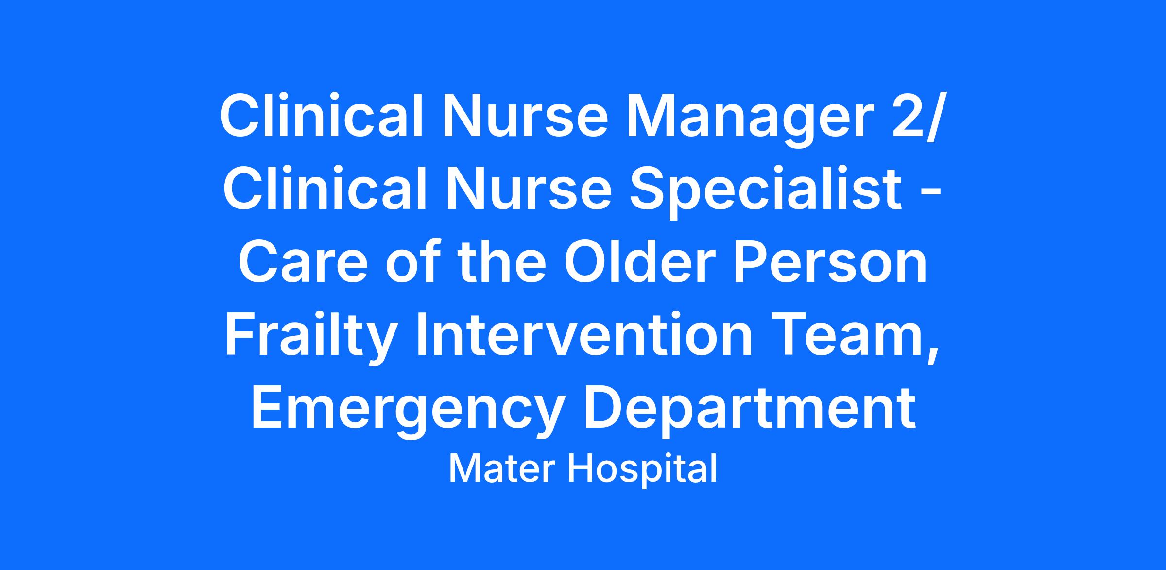 INFORMAL ENQUIRIES - Ms Allison Kennedy, Directorate Nurse Manager, Acute Neuroscience, Specialty and Rehabilitation Medicine. kennedya@mater.ie