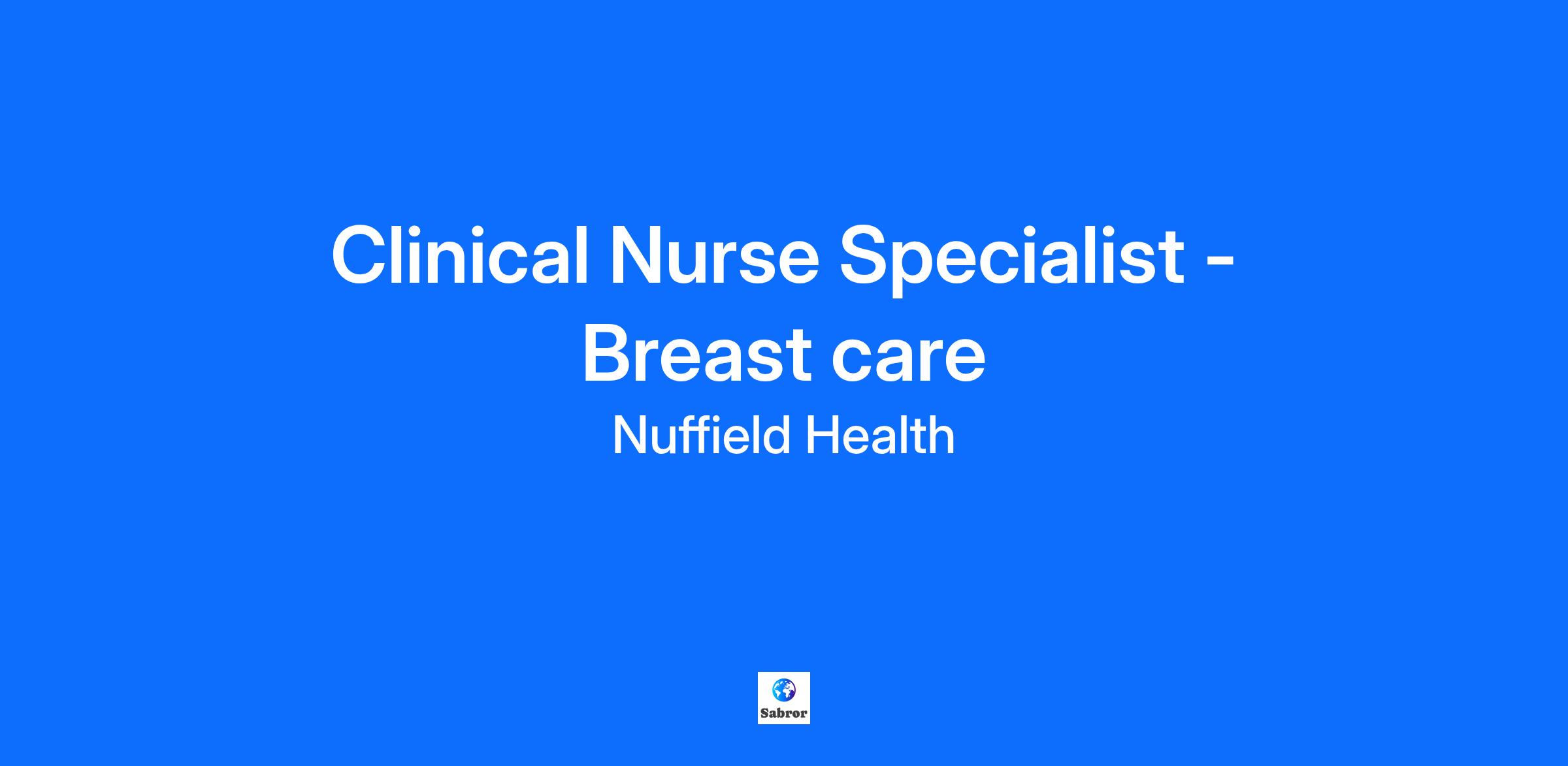 Clinical Nurse Specialist - Breast Care Guildford | Nursing | Permanent | Full time Up to £50,560 per annum depending on experience 37.5 hours per week An exciting opportunity has arisen in our Guildford Hospital for an experienced Clinical Nurse Specialist in Breast Care . Continue your journey with us whilst we’ll support you to be your best. The opportunity is for a skilled, motivated, confident nurse to join our new team. We are looking for a Clinical Nurse Specialist who is experienced in both Breast Care, Oncology and leadership. This is a position to support the breast care pathway. For patients from Imaging and diagnosis through to surgery, oncology and onwards. Supporting your nursing colleagues, breast surgeons, oncologists, out-patient team, theatre, and ward manager, by providing a high standard of care both within the outpatient setting and visiting patients on the ward post-procedure. There are plenty of opportunities for staff to develop their knowledge and skills and you will be offered support for your on-going professional development. The opportunity As a Clinical Specialist in Breast Care, you will need to operate autonomously with an extended and advanced scope of practice, providing clinical leadership, specialist knowledge and skills that enable the delivery of the highest quality patient care. As our Clinical Nurse Specialist - Breast care you will: Oversee the delivery of care, acting as a key worker in breast cancer, ensuring that all team members treat patients, families, friends and representatives with kindness, dignity, respect and compassion while supporting them emotionally with care, treatment or condition. Coordinate care management and delivery. Offering patients and their carers' care, advocacy, information, education and psychological support. Support the pathway from our Breast one Stop clinics, imaging and diagnosis through treatment planning, implementation, surgery and oncological treatments. Expert communication skills are required in a kind and compassionate manor, demonstrating knowledge and skills of breast cancer, its treatments and side effects. To partner and collaborate with other specialist clinicians and clinical leaders within the organization to develop and implement new ideas, protocols and pathways to improve the Breast Service, enabling seamless patient care. To seek opportunities to evaluate patient experience, learning from complaints, accolades and feedback and continually striving towards the delivery of seamless patient care To identify opportunities and drive quality improvement and assurance activity in specialist area, supporting the delivery of Nuffield Health’s clinical audit schedule and continuous improvement cycle. To support patients during normal hours and out of hours being part of the oncall rota system to support our 24hour patient advice line The person To succeed as a Clinical Nurse Specialist - Breast care , you will need: Registered clinical practitioner with the appropriate governing body. A degree / equivalent qualification or proven post-registration/post- qualification experience in own specialist area. Postgraduate/post-registration training, qualifications and accreditations as appropriate to Breast Care. Evidence of stretching continued professional development. Recognized advanced practice. Experience working in Surgery and/or Oncology. Specialist, senior level, post-registration experience gained through formal training required to meet registration requirements. Demonstrable specialist experience as a Subject Matter Expert. Leadership/management experience. Flexible working- ability to work some evening clinics/ support other team members on leave. Helping you feel good. We want you to love coming to work, feeling healthy, happy and valued. That’s why we’ve developed a benefits package with you in mind. Here, you can choose from a range of fitness, lifestyle, health and fitness wellbeing rewards, such as free gym membership, health assessments, retail discounts and pension options. At Nuffield Health, we take care of what’s important to you. Join Nuffield Health and create the future you want, today. If you like what you see, why not start your application now? We consider applications as we receive them and reserve the right to close adverts early (for example, where we have received an unprecedented high volume of applications). So, it’s a good idea to apply right away to ensure you’re considered for this role. It starts with you. Nuffield Health, is the UK’s largest healthcare charity. For over 60 years, we’ve been working to make the UK fitter, healthier, happier and stronger. All for the public benefit. We do this through our family of 31 award-winning hospitals, 113 fitness and wellbeing centres, healthcare clinics and over a 100 workplace wellbeing services. As a charity, we invest all our income back in to our services, in to pioneering improvements in care, and most importantly, we invest in to our flagship programmes, which have been developed to help people who could normally afford or access our services. Its all part of our mission to give everyone the care they need and to build a healthier nation.