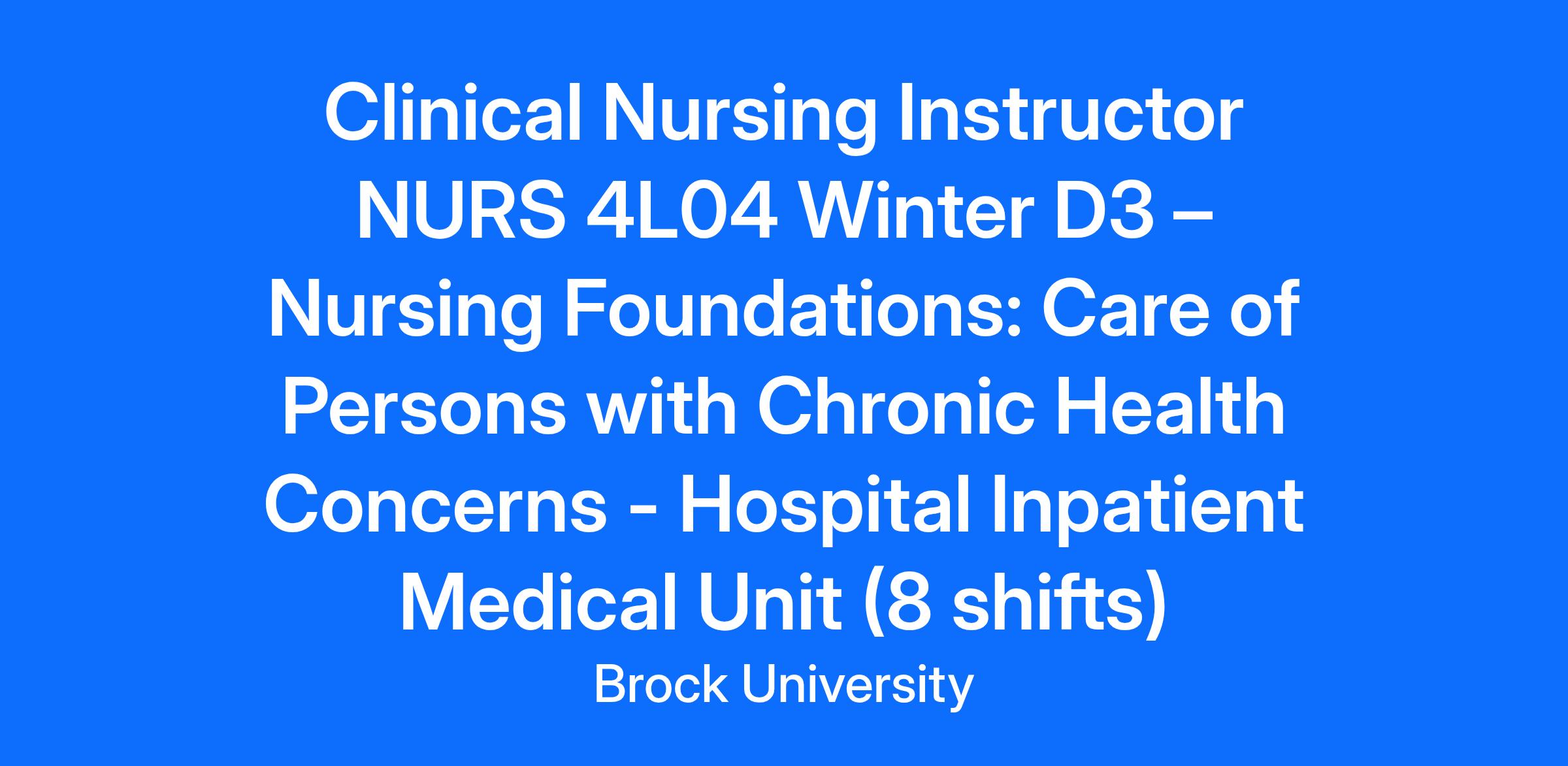 Brock University is located on the traditional territory of the Haudenosaunee and Anishinaabe peoples, many of whom continue to live and work here today. This territory is covered by the Upper Canada Treaties and is within the land protected by the Dish with One Spoon Wampum Agreement. We are one of Canada’s outstanding comprehensive universities, where excellence and innovation thrive! Brock has been recognized as a Top Employer in Hamilton-Niagara for seven consecutive years. We have been ranked #3 as Canada’s Best Employers and top 10 as one of Canada’s Best Employers for Diversity. For 2025, Brock has been proudly recognized as one of Canada’s Top Employers for Company Culture, ranked seventh by Forbes in partnership with Statista. At Brock, you will find a welcoming, inclusive community and an exciting range of meaningful career opportunities. Ignite new possibilities for your career. Break through at Brock. Post End Date: October 9, 2025 at 11:59 PM This job advertisement is to fill an existing vacancy in the CUPE4207-4 (Employee Group) Job Title: Clinical Nursing Instructor Course: NURS 4L04 – Nursing Foundations: Care of Persons with Chronic Health Concerns - Hospital Inpatient Medical Unit (1 position) Department: Nursing Term of Appointment: Contracts for this course are for 8 completed shifts, which include clinical time, preparation time, and may include a virtual post-conference component. Clinical days will consist of two days between Thursday and Sunday, based on clinical site availability, beginning March 12. Nominal Hours: 144 Wage Rate: $43.26-$49.95 per hour* *The wage rate is determined by seniority as outlined in Article 16 and Appendix B of the CUPE 4207-Unit 4 collective agreement. Duties: Reporting to the Chair/Assistant Chair-Clinical, Department of Nursing, the Clinical Nursing Instructor is responsible to: Prepare for and supervise students in a clinical setting for the experiential component of the course. Collaborate with the course instructor and lab coordinator to ensure student activities are aligned with the course syllabus and learning objectives. Prepare patient assignments before students’ arrival on the unit (for hospital placements) carefully considering each student’s experience level and capabilities and course learning objectives. Review the student’s preparation and plan for their clinical activities with attention and integration of nursing, pathophysiological, pharmacologic, and therapeutic concepts. Encourage an inquiring, theory, and evidence-based approach to nursing practice. Facilitate interprofessional and intraprofessional communication among students and all members of the health care team or agency. Model patient-centered care. Familiarize students with the relevant policies and protocols in the clinical setting with emphasis on any health & safety requirements. Provide ongoing verbal feedback to students and maintain a professional relationship with all learners. Assess journal reflections, and learning plans, and provide constructive feedback to students. Mark all assignments designated as the responsibility of the Clinical Nursing Instructor in the syllabus. Complete regular, comprehensive anecdotal notes regarding student progress and advise the course professor immediately of serious or ongoing student concerns. Identify gaps and facilitate the development and implementation of student plans in partnership with the course instructor as required. Facilitate student meetings / post-clinical conferences, and coordinate appropriate resources (e.g., multi-media). Foster discussion and reflection to enhance a positive and respectful learning environment. Adhere to confidentiality and privacy standards and legislation. Qualifications Successful completion of a BScN; Master’s degree preferred; Current registration with the College of Nurses of Ontario; Minimum of 3 years of clinical work experience as a nurse; Clinical work experience in inpatient medical nursing within the last 10 years and/ or clinical teaching experience in inpatient medical nursing within the last 10 years; Previous experience as a preceptor or with clinical instruction would be an asset; Demonstrated commitment and understanding of human rights, equity, diversity, and inclusion; Ability to address concerns and manage difficult situations, and to identify and act upon emergency situations; Effective organizational, time management, and communication skills; Ability to meet the clinical site occupational and immunization requirements. Note: Successful applicants are expected to supervise all scheduled/rescheduled clinical dates for the course they accept. This ensures consistency and improves the clinical experience for our students. Conflicts with another employer or vacation requests will generally not be approved. Applications Please apply with a current resume and cover letter. Members with seniority can include the seniority date on the application questionnaire. Candidates will be required to attest they are a Registered Nurse with the College of Nurses of Ontario in good standing and include their registration number. Applicants will be asked to confirm they meet the clinical site occupational and immunization requirements. For further information, please contact: Jessica Campbell Department of Nursing nursingclinical@brocku.ca We are committed to offering flexible work arrangements where possible as outlined in our Flexible Work Arrangement Policy. As a student-centered organization, all employees are required to work on campus as needed. Brock University is committed to creating a respectful and equitable workplace. We strive to foster a culture of diversity and inclusion in our work and learning environments. We welcome applications from all qualified individuals and actively encourage applications from women, people with disabilities, members of the 2SLGBTQIA+ community, Indigenous Peoples, people who identify as Black, African and/or Carib