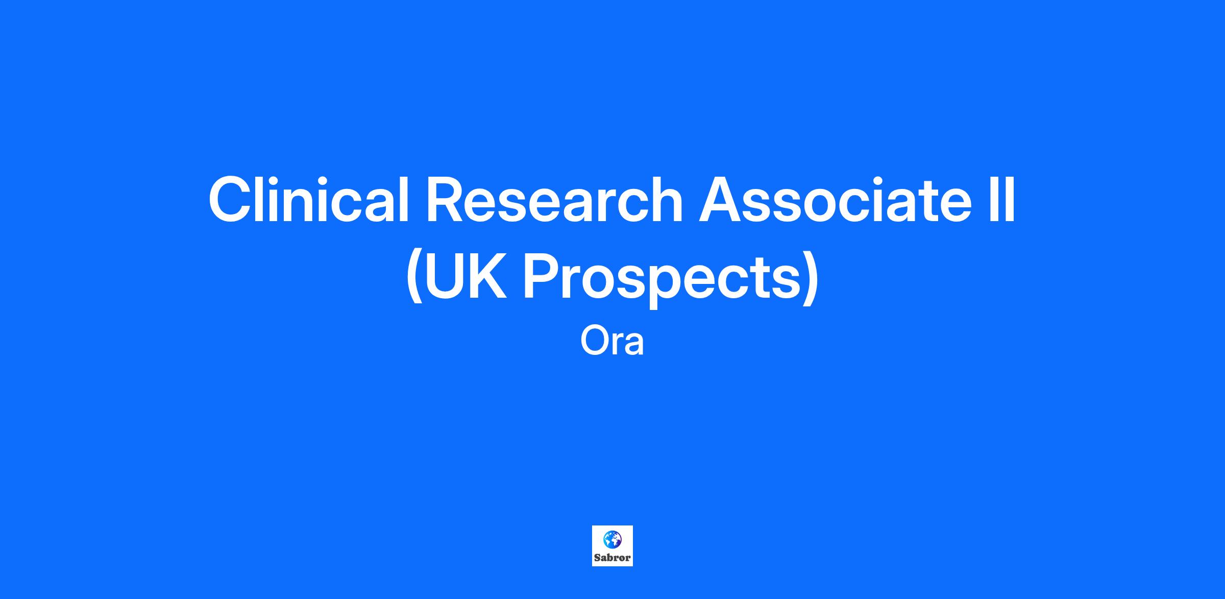 Thank you for your interest in Ora! We're excited to welcome candidates who are passionate about advancing their careers in Clinical Research! If you're seeking an opportunity for a Clinical Research Associate II, within the United Kingdom, but don't see an opportunity that you'd like to apply to, please send us your resume. We'll keep your information on file and will reach out if we find a match! At Ora, we are building the future of ophthalmic clinical research. As the world’s leading full-service ophthalmic drug and device development firm, we guide our clients across all phases of clinical research to efficiently bring new products and therapies to market. Over the past 45 years, our expert teams have helped earn more than 85 new product approvals. Ora's pre-clinical and clinical models, unique methodologies, integrated clinical data solutions, and global regulatory strategies have been refined and proven across thousands of global projects. Today, our team continues to expand across the globe, with over 600 employees across North America, Europe, Asia and Latin America. You can follow us on LinkedIn to keep up with what Ora is up to. People-First Commitment Our People-First Commitment prioritizes the well-being and development of Ora’s employees and stakeholders above all else. It signifies a holistic approach that values individuals as integral contributors to the organization’s success. We advance workplace belonging, community engagement, and scientific rigor by integrating equitable and inclusive practices to ensure our operations and relationships are aligned with our values. This commitment involves fostering a culture of accountability, open communication, and respect, where each voice is heard and regarded. Whether it is in our workplace or the studies we conduct, Ora knows that diversity and inclusion matters, is deeply aligned with our values, and ensures all communities can safely benefit from scientific advances. Our mission is to weave together people, processes, and technology to support innovation in ophthalmology around the world. We believe our business should be a force for good — to improve, heal, and change how we see. As a global company, our vibrant community and culture are nurtured by our core values: Prioritizing kindness, cultivating joy, operational excellence, and scientific rigor. Through our commitment to these values, we have built an inclusive and supportive work environment that fosters respect, accountability, and a fulfilling work-life balance for every team member. We know a diverse workforce adds to our collective value and strength as an organization. People of color, the LGBTQIA+ community, disabled candidates and veterans are strongly encouraged to apply. Ora is proud to be an Affirmative Action and Equal Opportunity Employer, committed to equal employment opportunity and fair, equitable compensation regardless of race, color, religion, sex, sexual orientation, gender identity, national origin, disability or protected veteran status. Our Privacy Policy | Ora (oraclinical.com)