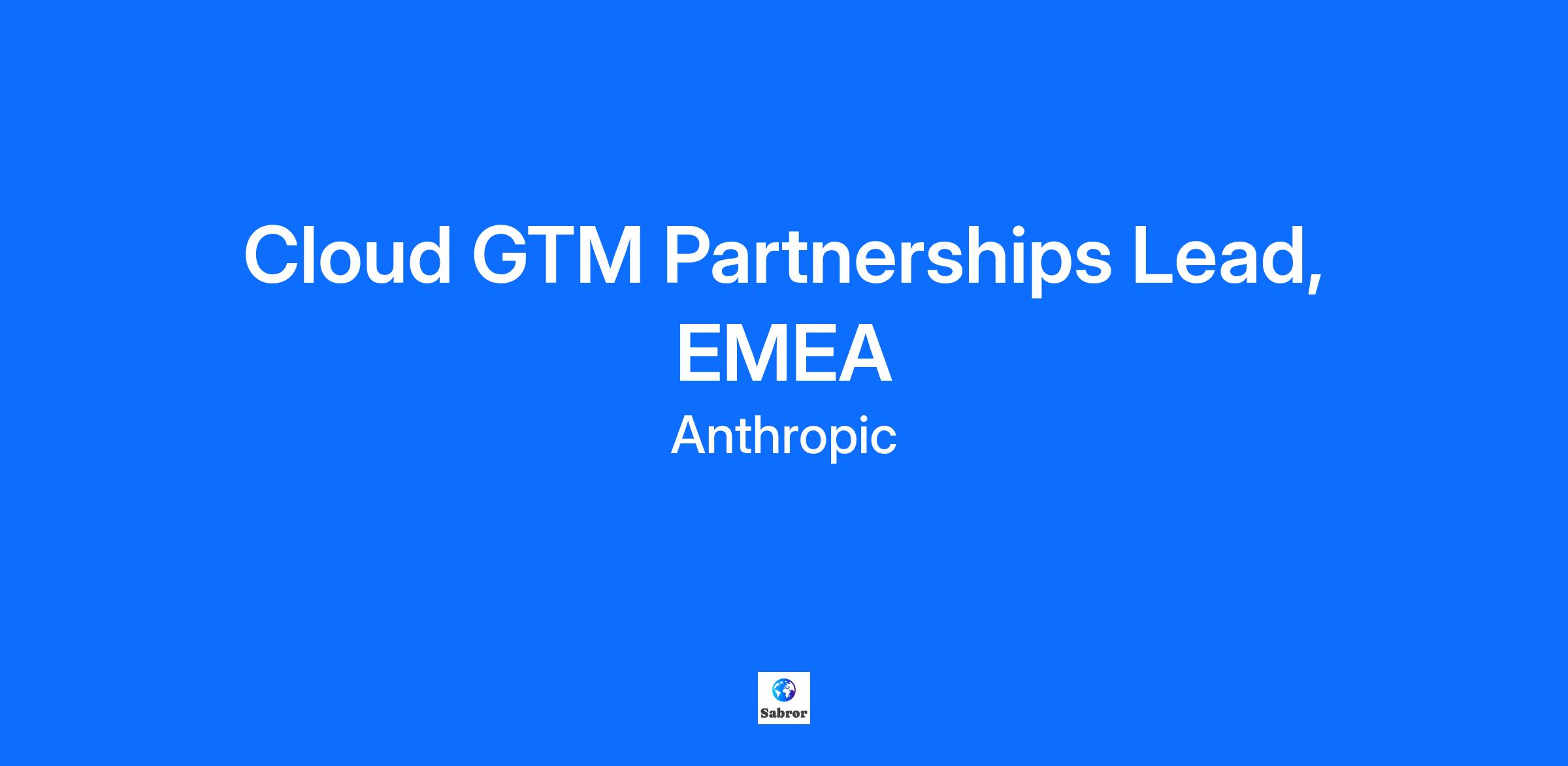 ABOUT ANTHROPIC Anthropic’s mission is to create reliable, interpretable, and steerable AI systems. We want AI to be safe and beneficial for our users and for society as a whole. Our team is a quickly growing group of committed researchers, engineers, policy experts, and business leaders working together to build beneficial AI systems. ABOUT THE ROLE: Anthropic is seeking an exceptional leader to drive our strategic go-to-market partnership with cloud partners. In this pivotal role, you will own and scale our most significant strategic relationships for Anthropic’s acceleration into EMEA, responsible for large scale revenue opportunities through our cloud partnerships. You will work closely with senior leadership across both partner organizations to drive joint success, shape strategy, and accelerate the adoption of Anthropic's AI capabilities through our Global Partner ecosystem. You will build and lead the strategy to maximize our cloud partnerships potential while ensuring our solutions are deployed safely and responsibly. This role offers the unique opportunity to shape how frontier AI technology is commercialized at massive scale. In this role, you will drive exponential growth for Anthropic in EMEA through our cloud partnerships while shaping how companies adopt and implement frontier AI technology. You'll be responsible for building programs that will scale across EMEA markets and segments, and developing the blueprint for how we and our cloud partners in the region will partner to drive joint success. RESPONSIBILITIES: * Develop and execute comprehensive GTM strategy for our cloud partnerships, including co-selling motions, enablement programs, and joint business plans * Drive strategic planning and execution of joint marketing and sales initiatives, including major customer engagements * Build and maintain executive-level relationships across cloud partners * Own forecasting, pipeline development, and revenue targets for the partnership * Create and implement scalable processes for partnership operations, including escalation management and reporting * Provide strategic market intelligence and competitive insights to inform product and business strategy * Design and execute segment-specific sales plays and enablement programs * Lead cross-functional efforts with U.S. GTM teams, providing strategic direction and operational excellence for how these teams can partner effectively with EMEA cloud partners * Lead quarterly and annual business reviews with key stakeholders * Identify and develop strategic opportunities to expand partnership scope and impact YOU MAY BE A GOOD FIT IF YOU HAVE: * 10+ years of enterprise technology experience, with at least 7 years in strategic partnerships and/or enterprise sales leadership. Experience leading strategic partnerships for a B2B SaaS Startup strongly preferred. * Proven track record of 0-1 building and scaling multi-billion dollar technology partnerships in the EMEA region, including cloud providers (e.g. AWS, Google Cloud) * Deep understanding of enterprise software and cloud services * Experience leading large, cross-functional teams in complex organizational environments * Strong executive presence and demonstrated ability to influence senior stakeholders * Track record of developing and executing successful co-selling strategies * Excellence in strategic planning, business operations, and program management * Deep understanding of enterprise sales motions and channel dynamics * Ability to balance strategic thinking with tactical execution * Experience working with technical products and translating complex capabilities into business value Deadline to apply: None. Applications will be reviewed on a rolling basis. The expected base compensation for this position is below. Our total compensation package for full-time employees includes equity, benefits, and may include incentive compensation. Annual Salary: £215,000—£250,000 GBP LOGISTICS Education requirements: We require at least a Bachelor's degree in a related field or equivalent experience. Location-based hybrid policy: Currently, we expect all staff to be in one of our offices at least 25% of the time. However, some roles may require more time in our offices. Visa sponsorship: We do sponsor visas! However, we aren't able to successfully sponsor visas for every role and every candidate. But if we make you an offer, we will make every reasonable effort to get you a visa, and we retain an immigration lawyer to help with this. We encourage you to apply even if you do not believe you meet every single qualification. Not all strong candidates will meet every single qualification as listed. Research shows that people who identify as being from underrepresented groups are more prone to experiencing imposter syndrome and doubting the strength of their candidacy, so we urge you not to exclude yourself prematurely and to submit an application if you're interested in this work. We think AI systems like the ones we're building have enormous social and ethical implications. We think this makes representation even more important, and we strive to include a range of diverse perspectives on our team. HOW WE'RE DIFFERENT We believe that the highest-impact AI research will be big science. At Anthropic we work as a single cohesive team on just a few large-scale research efforts. And we value impact — advancing our long-term goals of steerable, trustworthy AI — rather than work on smaller and more specific puzzles. We view AI research as an empirical science, which has as much in common with physics and biology as with traditional efforts in computer science. We're an extremely collaborative group, and we host frequent research discussions to ensure that we are pursuing the highest-impact work at any given time. As such, we greatly value communication skills. The easiest way to understand our research directions is to read our recent research. This research continues many of the directions ou