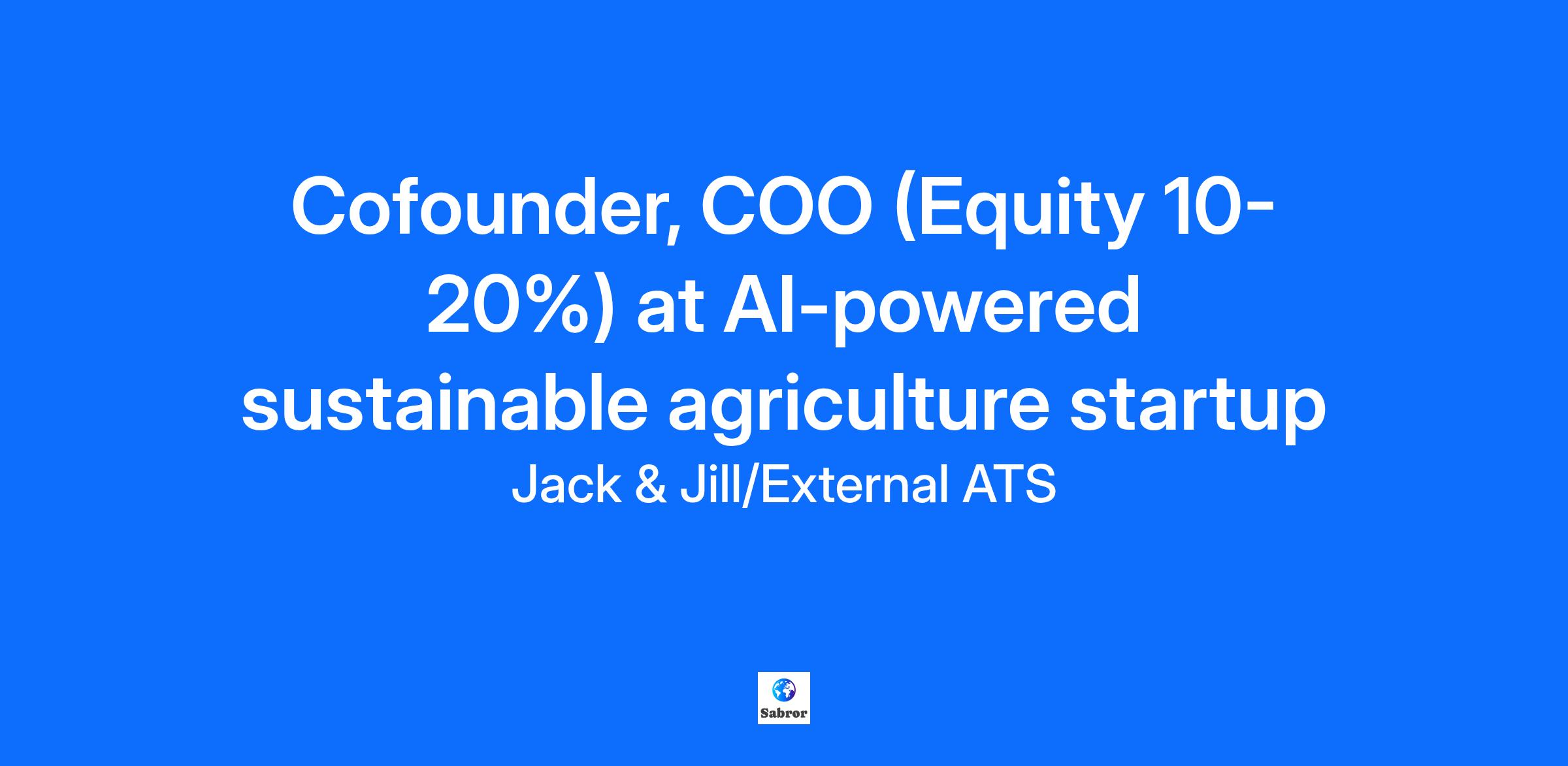 This is a job that we are recruiting for on behalf of one of our customers. To apply, speak to Jack. He's an AI agent that sends you unmissable jobs and then helps you ace the interview. He'll make sure you are considered for this role, and help you find others if you ask. Cofounder, COO Company Description: AI-powered sustainable agriculture startup Job Description: Lead product strategy, development, and operations as a Cofounder, COO for an innovative AI-powered platform transforming sustainable agriculture. You'll drive the vision, translate scientific models into actionable features, and build scalable systems to deliver measurable environmental and commercial impact for growers. This role is key to turning concept into global scale. Location: Remote Why this role is remarkable: Shape the future of sustainable agriculture with a deep tech solution addressing critical global challenges. Join a founding team with strong engineering and scientific expertise, backed by venture builders and partners. Lead product and operations from concept to scale, with significant co-founder equity (10-20%) and direct impact. What you will do: Partner with the CEO to define company vision, strategy, and execution roadmap, addressing operational bottlenecks. Own the long-term product vision and roadmap, integrating customer feedback, scientific insights, and technical feasibility. Translate complex agronomic models and data into intuitive, actionable product features for growers. The ideal candidate: Proven experience in a deep tech or agritech startup, ideally spanning both product and operations. Strong product intuition and the ability to effectively bridge technical and commercial domains. A hands-on, execution-oriented mindset, comfortable leading from initial concept through to market scale. How to Apply: To apply for this job speak to Jack, our AI recruiter. Step 1. Visit our website Step 2. Click 'Speak with Jack'. Step 3. Login with your LinkedIn profile. Step 4. Talk to Jack for 20 minutes so he can understand your experience and ambitions. Step 5. If the hiring manager would like to meet you, Jack will make the introduction.