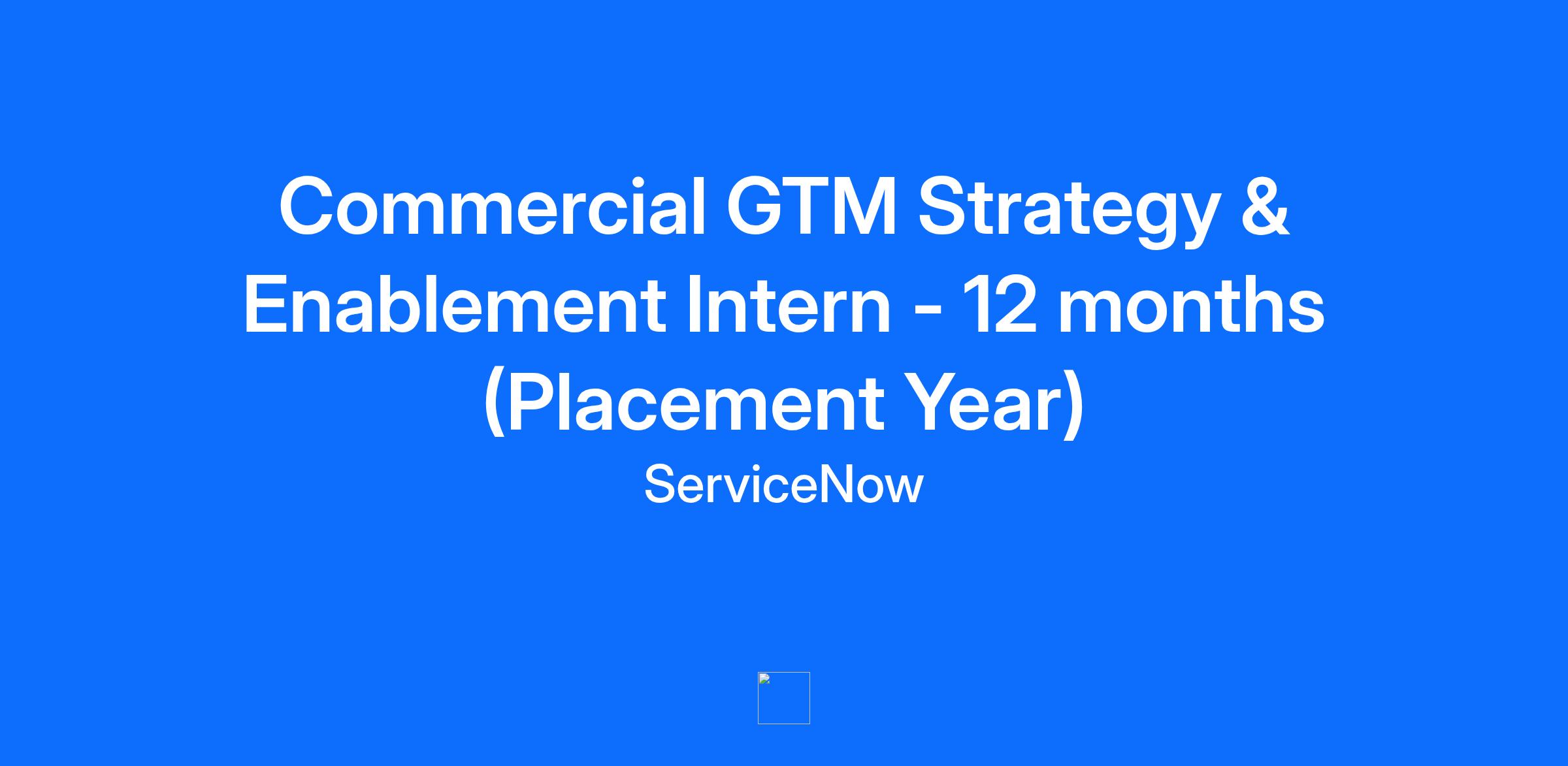Company DescriptionIt all started in sunny San Diego, California in 2004 when a visionary engineer, Fred Luddy, saw the potential to transform how we work. Fast forward to today — ServiceNow stands as a global market leader, bringing innovative AI-enhanced technology to over 8,100 customers, including 85% of the Fortune 500®. Our intelligent cloud-based platform seamlessly connects people, systems, and processes to empower organizations to find smarter, faster, and better ways to work. But this is just the beginning of our journey. Join us as we pursue our purpose to make the world work better for everyone.Job DescriptionAt ServiceNow, we’re looking for students who want to learn, grow, and take a giant step early in their career, all while making a giant impact. We offer 12 month internship opportunities all over the world across various business functions. Interns will participate in executive speaker series, career development workshops, philanthropic efforts, and team building activities. Additionally, interns will have access to online learnings and dedicated Summer Coach to further grow their careers with us If you want to make work, work better, we want you. What you get to do in this role: Will be working as part of the Go-To-Market (GTM) Programs & Excellence team to support and contribute to strategy and operations of our GTM teams.You will be working to support the Commercial Sales business for EMEA. You will be surrounded by dedicated teams that are in the earlier stages of their sales careers, selling in a dynamic, volume-led, high growth, high paced environment. The GTM Programs & Excellence team is a critical forward looking, planning & execution focused team. You will find unrivaled experience and learning as to how the machinery of business works and how transformation happens.Work in the ServiceNow (matrix) organization together with cross-function teals across sales, operations, marketing, program teams, channel resources & others to understand how these teams work and contribute to the success of the business.Will be trained on and contribute to specific projects relating to operations and execution in a fast-paced field-selling organization A great opportunity to gain a broad organization perspective, contribute to a multi-year growth plan and learn highly transferable skills QualificationsTo be successful in this role, we need someone who has: Experience in leveraging or critically thinking about how to integrate AI into work processes, decision-making, or problem-solving. This may include using AI-powered tools, automating workflows, analyzing AI-driven insights, or exploring AI’s potential impact on the function or industry. Strong problem-solving abilities Experience in, and interest in working with data and translating to actionable insight Keen to develop a broad skillset, to tackle complex, often unfamiliar problemsWilling to be proactive in seeking answers or attain new knowledge Be a team player and able to communicate current status Applicants must be currently enrolled in a bachelor's degree program and undertaking a placement year as part of their courseAvailable to start in June or September 2026. Additional InformationWork PersonasWe approach our distributed world of work with flexibility and trust. Work personas (flexible, remote, or required in office) are categories that are assigned to ServiceNow employees depending on the nature of their work and their assigned work location. Learn more here. To determine eligibility for a work persona, ServiceNow may confirm the distance between your primary residence and the closest ServiceNow office using a third-party service.Equal Opportunity EmployerServiceNow is an equal opportunity employer. All qualified applicants will receive consideration for employment without regard to race, color, creed, religion, sex, sexual orientation, national origin or nationality, ancestry, age, disability, gender identity or expression, marital status, veteran status, or any other category protected by law. In addition, all qualified applicants with arrest or conviction records will be considered for employment in accordance with legal requirements. AccommodationsWe strive to create an accessible and inclusive experience for all candidates. If you require a reasonable accommodation to complete any part of the application process, or are unable to use this online application and need an alternative method to apply, please contact [email protected] for assistance. Export Control RegulationsFor positions requiring access to controlled technology subject to export control regulations, including the U.S. Export Administration Regulations (EAR), ServiceNow may be required to obtain export control approval from government authorities for certain individuals. All employment is contingent upon ServiceNow obtaining any export license or other approval that may be required by relevant export control authorities. From Fortune. ©2025 Fortune Media IP Limited. All rights reserved. Used under license. Employee Type: Intern (Fixed Term) Region: EMEA - Europe, Middle East and Africa Work Persona: Flexible