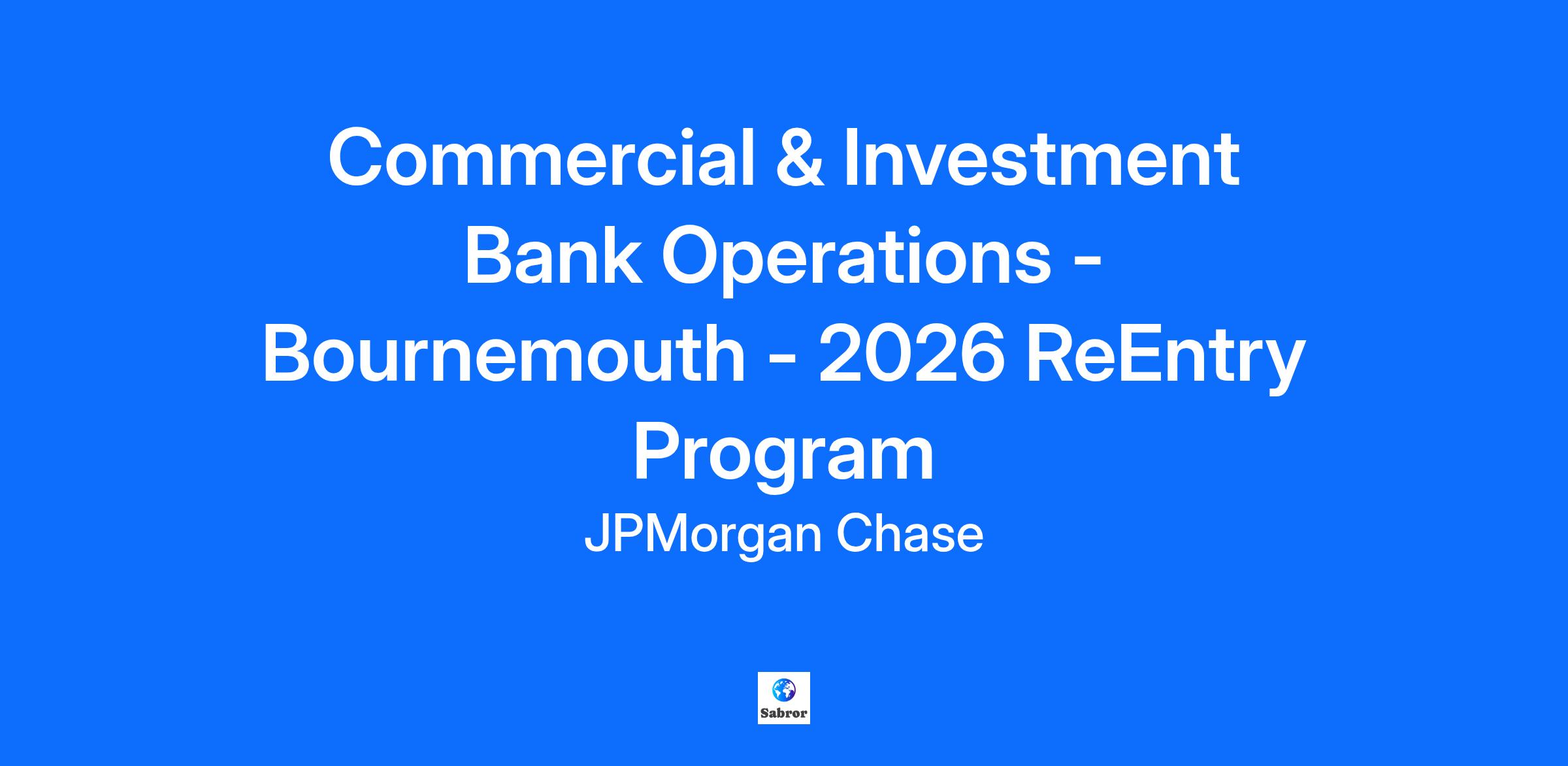 Commercial & Investment Bank Operations - Bournemouth - 2026 ReEntry Program