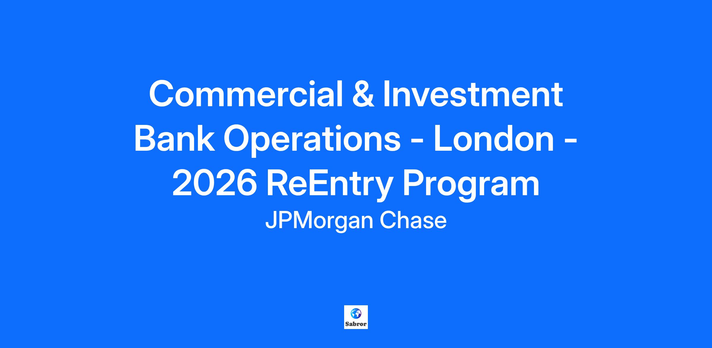 Relaunch your career with our Global ReEntry Program! At JPMorganChase, we recognize that rewarding careers do not always follow a conventional path. We value the diversity, fresh perspective and wealth of experience that returning professionals can bring. The ReEntry program offers experienced professionals, who are currently on an extended career break of at least two years, the support and resources needed to relaunch their careers. The program spans over 30 locations worldwide. The ReEntry Program is a 15-week fellowship program, beginning April 20, 2026 and ending July 31, 2026 with the prospect of an offer for permanent employment with JPMorganChase at the end of the program. The permanent placements will be based on both business needs and candidate skill set. Please refer to our ReEntry Overview page for further information regarding the Program. About the Team J.P. Morgan’s Commercial & Investment Bank is a global leader across banking, markets, securities services and payments. Corporations, governments and institutions throughout the world entrust us with their business in more than 100 countries. The Commercial & Investment Bank provides strategic advice, raises capital, manages risk and extends liquidity in markets around the world. What We Look For: Accomplished individuals who are currently on a voluntary career break for at least 2 years and wish to return to the workforce full time as part of the Commercial & Investment Banking team Creative, innovative team players with analytical, technical, problem solving, planning and organizational skills Individuals with strong interpersonal skills and able to communicate effectively in presentations, expressing complex financial strategies in an organized and articulate manner and relevant experience for the Line of Business The ability to relate well to external clients and internal partners and establishing strong working relationships is a crucial requirement of the program We are only able to consider applications from individuals who have the right to work in the UK.