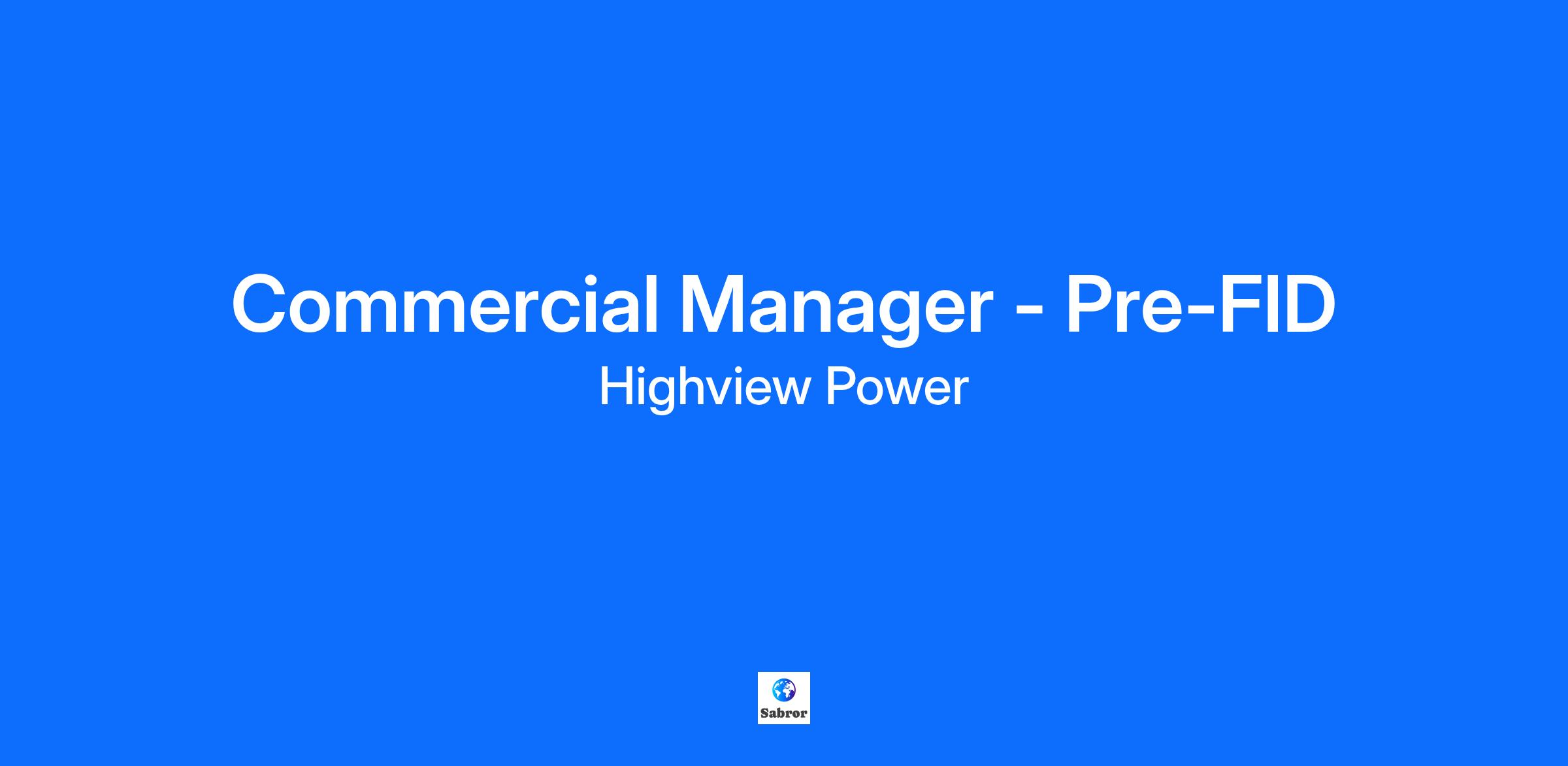 Commercial Manager - Pre-FID