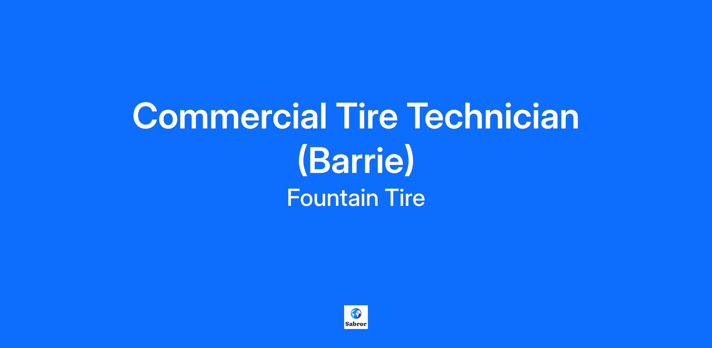 Overview Fountain Tire Barrie is looking for a responsible, safe, and motivated associate to join our team as a Commercial Tire Technician! What is in it for you? Competitive wages starting at $20 per hour We take care of you and your family with our impressive health, dental, and vision benefits, plus a RRSP program with company matching! We will develop your skills and certifications with our excellent training Regular full-time day shifts, with opportunities for overtime Save your money with our staff discounts on tires, parts and mechanical services at all Fountain Tire locations What each day will bring: Something different! You never know what kind of vehicle or tire you may be required to work on or what customers will need help You could be inspecting, installing, balancing, rotating, and/or repairing truck, farm, industrial and/or OTR tires OR you could be greeting and communicating with customers on all aspects of repair, service and tire sales Amazing customers to impress with your professional and friendly customer service The responsibility to keep yourself and your coworkers safe on the job Pride in the work you've done keeping your customers safe and on the road! What kind of person are we looking for? No previous experience required! We are willing to train the right candidate with a good attitude Must possess a valid driver’s license and be able to provide a satisfactory passenger or commercial Driver’s Abstract This work can unpredictable, physical, wet, cold, windy etc. and we need someone who will be up for the challenge We need someone who can be on call after hours Must be able to lift 100 pounds if required At Fountain Tire, you’d have a great place to work! Market leading wages, a manager with a large support network, and the chance to learn and grow. If you are interested apply in-store or online today!