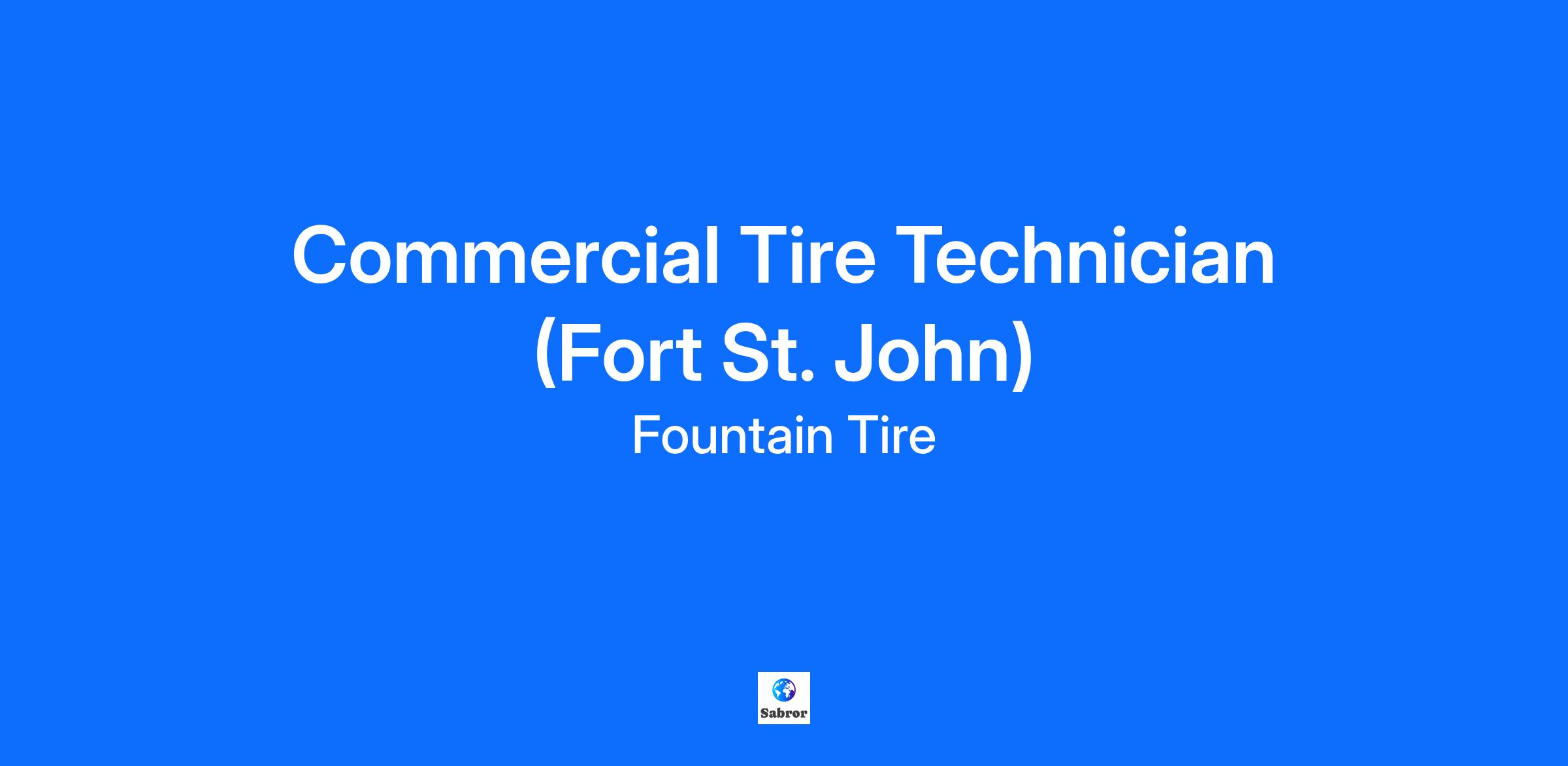 Overview Fountain Tire Fort St. John is looking for a responsible, safe and dedicated associate to join our team as a Commercial Tire Technician! What is in it for you? Competitive wages $25 - $30 per hour (based on experience) We take care of you and your family with our impressive health, dental, and vision benefits, plus a RRSP program with company matching! We will develop your skills and certifications with our excellent training Regular full-time day shifts, with opportunities for overtime Save your money with our staff discounts on tires, parts and mechanical services at all Fountain Tire locations What each day will bring: Something different! You never know what kind of vehicle or tire you may be required to work on or what customers will need help You could be inspecting, installing, balancing, rotating, and/or repairing truck, farm, industrial and/or OTR tires OR you could be greeting and communicating with customers on all aspects of repair, service and tire sales Amazing customers to impress with your professional and friendly customer service The responsibility to keep yourself and your coworkers safe on the job Pride in the work you've done keeping your customers safe and on the road! What kind of person are we looking for? We are looking for someone with at least 1 year of commercial tire experience in a professional setting Must possess a valid driver’s license and be able to provide a satisfactory passenger or commercial Driver’s Abstract This work can unpredictable, physical, wet, cold, windy etc. and we need someone who will be up for the challenge We need someone who can be on call after hours Must be able to lift 100 pounds if required At Fountain Tire, you’d have a great place to work! Market leading wages, a manager with a large support network, and the chance to learn and grow. If you are interested apply in-store or online today!