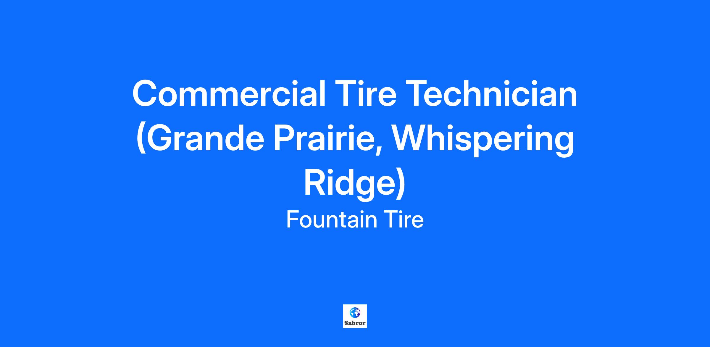 Overview Fountain Tire Grande Prairie (10205 156 Ave) is looking for a responsible, safe and dedicated associate to join our team as a Commercial Tire Technician! What is in it for you? Competitive wages starting at $23 per hour We help take care of you and your family with our impressive health, dental, and vision benefits, plus a RRSP program with company matching! We will develop your skills and certifications with our excellent training Regular full-time day shifts, with opportunities for overtime Save your money with our staff discounts on tires, parts and mechanical services at all Fountain Tire locations What each day will bring: Something different! You never know what kind of vehicle or tire you may be required to work on or what customers will need help You could be inspecting, installing, balancing, rotating, and/or repairing truck, farm, industrial and/or OTR tires OR you could be greeting and communicating with customers on all aspects of repair, service and tire sales Amazing customers to impress with your professional and friendly customer service The responsibility to keep yourself and your coworkers safe on the job Pride in the work you've done keeping your customers safe and on the road! What kind of person are we looking for? We are looking for someone with commercial or OTR tire experience, but we are willing to train the right candidate Must possess a valid driver’s license and be able to provide a satisfactory passenger or commercial Driver’s Abstract This work can unpredictable, physical, wet, cold, windy etc. and we need someone who will be up for the challenge We need someone who can be on call after hours Must be able to lift 100 pounds if required At Fountain Tire, you’d have a great place to work! Market leading wages, a manager with a large support network, and the chance to learn and grow. If you are interested apply in-store or online today!
