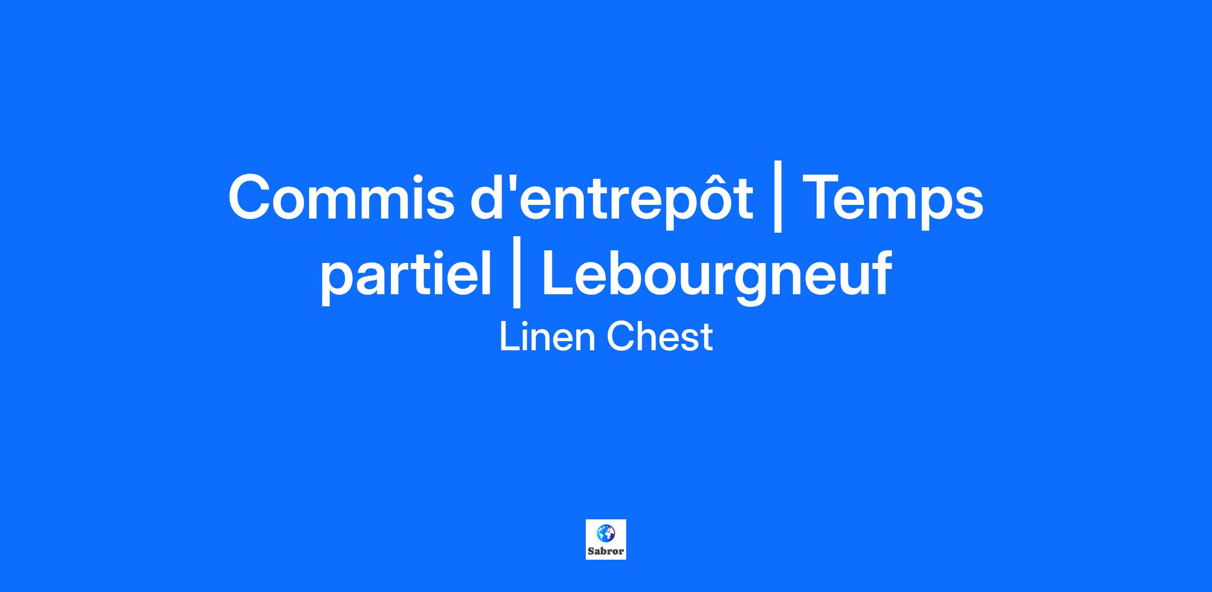 Description de l'entreprise Commis d'entrepôt | Temps partiel | Lebourgneuf Vous aimez bouger et le travail d’équipe vous allume ? Vous recherchez un environnement de travail dynamique et stimulant ? Nous sommes à la recherche de quelqu'un comme vous pour rejoindre notre équipe ! Description du poste Le commis d’entrepôt s’occupe d’assurer l’expédition, la réception, la cueillette à la pièce, le placage et l’emballage. Il est également responsable d’assurer la mise à jour de l’inventaire, ainsi que l’étiquetage approprié des produits selon les prix en vigueur en boutique. Ce que nous vous offrons : Entreprise familiale qui priorise le bien-être de ses employés ; Congés de maladies payées ; Environnement de travail humain où nos talents sont reconnus et appréciés ; Opportunités de croissance au sein de l’entreprise ; Formations et développement professionnels ; Possibilité de faire du temps plein ou du temps partiel selon vos préférences ; Programme d’assurances collectives (médical, paramédical et dentaire) ; Programme de référencement lucratif (jusqu’à 1000$) ; Rabais sur tous les produits Linen Chest. Qualifications Expérience en tant que commis d’entrepôt ; Être organisé ; Être en mesure de soulever une charge de 30 livres ; Être capable de se tenir debout et de marcher pendant de longue période de temps ; Être en mesure d’exécuter des tâches rapidement et avoir un souci de bien faire les choses. Informations supplémentaires Venez faire carrière au sein de la grande famille Linen Chest ! * Le générique masculin inclut le féminin et est utilisé sans aucune discrimination et uniquement dans le but d'alléger le texte.
