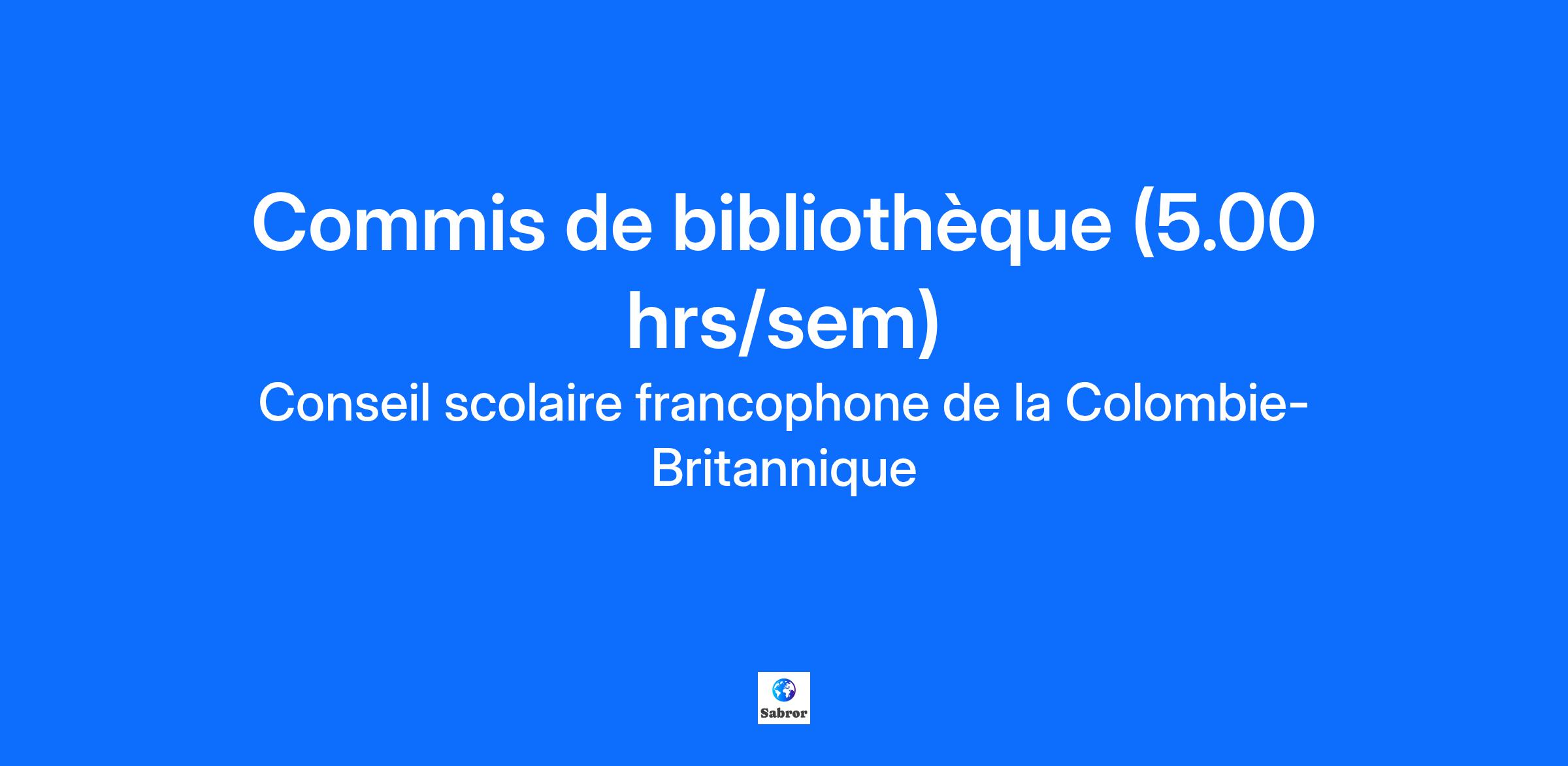 Description de l'entreprise Dans un esprit de réconciliation, nous reconnaissons que notre organisation et nos écoles se trouvent sur les territoires traditionnels des Premiers Peuples de la Colombie-Britannique. Nous sommes reconnaissant·e·s de prospérer sur ces territoires tout en prenant soin des familles et des enfants qui comptent pour nous afin de leur assurer un avenir rayonnant. Rejoindre notre équipe au Conseil scolaire francophone de la Colombie-Britannique, c'est saisir une belle opportunité de contribuer à l'épanouissement de la francophonie en milieu minoritaire dans un environnement éducatif dynamique qui incarne les principes d'apprentissage autochtones et valorise les apprentissages universels. Riche de nos 47 écoles à travers toute la province, nous sommes engagé·e·s envers la réussite de chacun de nos élèves. L'inclusion et la bienveillance au CSF sont les piliers de notre approche éducative. Tous-tes nos élèves sont accueilli·e·s dans un environnement scolaire inclusif et sécuritaire, adapté à leurs spécificités culturelles et individuelles, favorisant ainsi leur réussite scolaire et leur bien-être personnel. Pour savoir plus sur le CSF, visitez notre site internet. Description du poste Affichage (poste): #25-26/COMB.007-3 Type de poste: Permanent Répartition: 10 mois du calendrier scolaire (1er septembre au 30 juin) Taux horaire: 31.75$/heure, selon l’échelle de la convention collective Date de début du contrat: Dès que possible Date de fin du contrat: Sans objet Date de début d’affichage: 25/09/2025 Date de fin d’affichage: Jusqu’à ce que le poste soit comblé ​Mettre en circulation et recevoir les livres et autres documents de la bibliothèque ; Trier et ranger les livres et autres documents de la bibliothèque sur les rayons ; Réparer les ressources endommagées ; Exécuter des tâches administratives, telles que du classement de dossiers physiques ou électroniques, et faire le relevé des paiements reçus ; Renouveler les abonnements aux périodiques ; Aider les usagers à accéder aux documents et aux services en ligne de la bibliothèque, et à faire des prêts interbibliothèques ; Connaître et encourager le respect des procédures, conformément aux lois application et de destruction, de prêt et de circulation des documents ; Faire du catalogage - niveau 1 ; Note: Ce poste pourrait être combiné avec un poste de 5h d'ambassadeur·trice culturel·le, ceci représenant 10h par semaine. Selon dotation disponible et besoins organisationnels de l'école, des heures de surveillance pourraient être ajoutées au contrat. Qualifications Être titulaire d’un diplôme d’études secondaire et un programme collégiales de préférence en technique de la documentation ; Connaissance des méthodes et des usages propres à la gestion d'une bibliothèque ; Connaissance de logiciels (REGARD, Microsoft Office, etc.) ; Sens de l'initiative et habileté à travailler de façon autonome ; Connaissance du milieu éducatif francophone de la Colombie-Britannique ; Excellente maîtrise du français et de l'anglais (oral et écrit) ; Informations supplémentaires Comment postuler ? Nous vous encourageons à soumettre votre candidature en ligne en français. Nous tenons à remercier tous les candidats et toutes les candidates de leur intérêt pour ce poste. Veuillez noter que seules les personnes convoquées en entrevue seront contactées. Dans un esprit de réconciliation, nous reconnaissons que notre organisation et nos écoles se trouvent sur les territoires traditionnels des Premiers Peuples de la Colombie-Britannique.