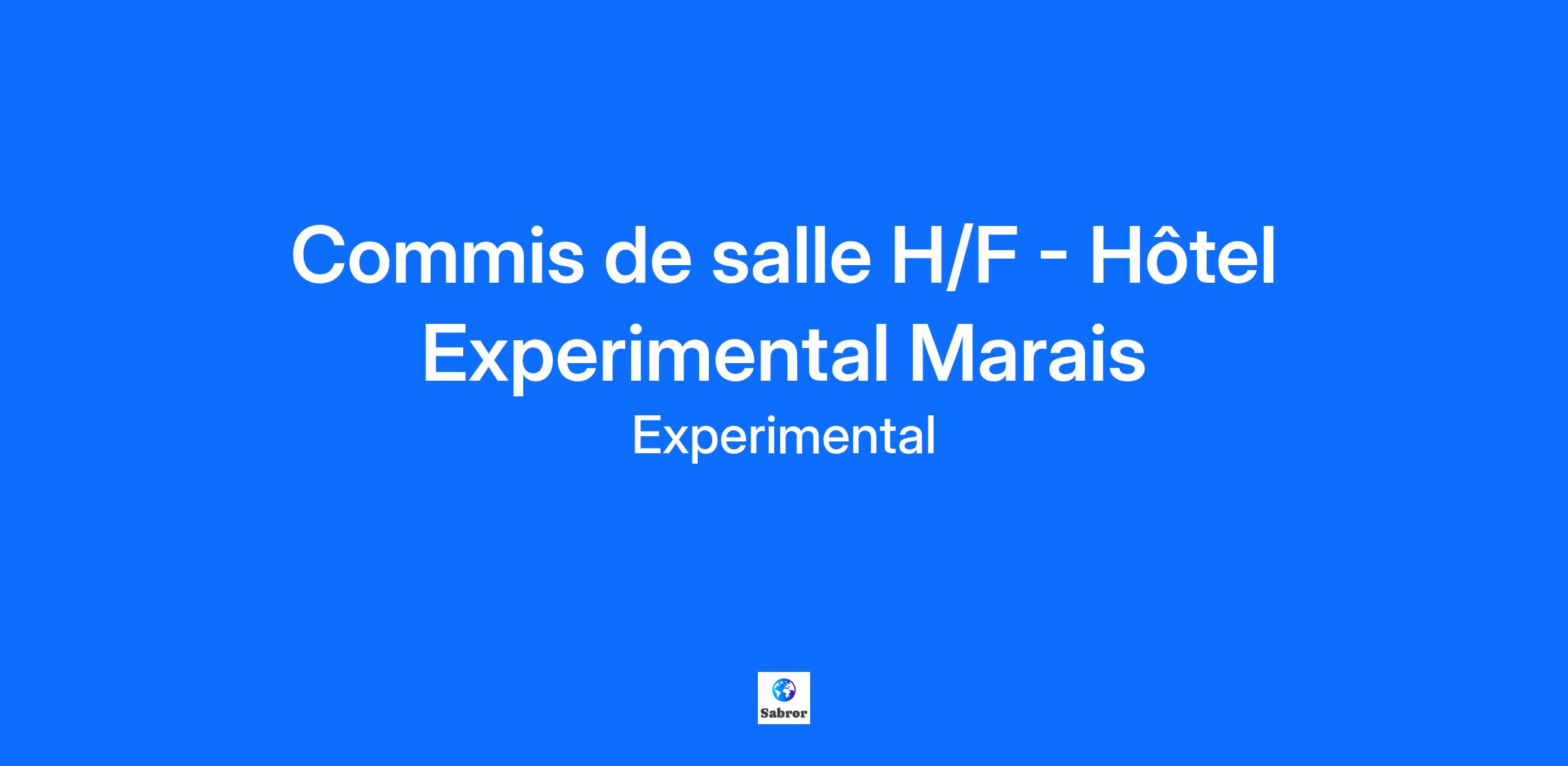 A PROPOS DE NOUS Fondé par trois amis d'enfance Olivier Bon, Pierre-Charles Cros et Romée De Goriainoff en 2007 puis rejoints par Xavier Padovani en 2010, Experimental bouleverse les codes du secteur de l'hôtellerie et de la restauration en offrant une expérience unique d'hospitalité contemporaine à une clientèle exigeante dans le monde entier. Célèbre pour avoir apporté la culture du bar à cocktails à Paris, le groupe exploite des bars à cocktails, mais aussi des bars à vins, des restaurants, et à partir de 2015 des Hôtels. Les destinations se diversifient au fil des années, de capitales européennes comme Paris et Londres, à des lieux plus saisonniers comme Ibiza ou Minorque pour l'été ou les pistes de ski de Verbier et Val d'Isère pour l'hiver. Le groupe possède également des établissements à Venise, New York, Biarritz et les Cotswolds. La philosophie du service est affirmée par trois principes clés : la qualité des produits, la précision du service et l'accueil chaleureux de nos clients. A PROPOS DE L’EXPERIMENTAL MARAIS Rejoignez l’aventure Experimental et faites partie d'une ouverture emblématique ! Nous ouvrons notre premier hôtel 5 étoiles à Paris en mars 2025 : l’Experimental Marais. Situé dans le Haut Marais, cet hôtel d’exception incarne l’élégance parisienne du groupe Experimental, avec un design audacieux signé Tristan Auer et une expérience client unique. Notre établissement de 43 chambres propose : Temple & Chapon, un grand restaurant inspiré des « Chop Houses » américaines, dirigé par la cheffe Mélanie Serre. L’American Bar, un hommage aux bars new-yorkais iconiques avec une carte de cocktails signatures et une sélection de vins prestigieux. Un spa exclusif, conçu en partenariat avec Suzanne Kaufmann, offrant des soins sur-mesure et une piscine. Rejoignez notre équipe passionnée. A PROPOS DU POSTE Sous la responsabilité du manager de restaurant, vos missions sont les suivantes : Apporter les plats de la cuisine en salle et faire le lien entre le chef de rang et la cuisine ; Assurer la mise en place des plateaux, liteaux, et plateaux room avant le service ; Préparer les plateaux room service et les monter en chambre ; Réaliser des opérations de fin de service : rangement et mise en place du prochain service ; Veiller à maintenir les espaces dans un état optimum (propreté, entretien et état de fonctionnement) ; Contribuer de façon globale à la bonne relation entre cuisine et salle en réagissant rapidement aux besoins des deux parties ; Être garant de la satisfaction de la clientèle par sa rapidité d’exécution et sa bonne tenue en salle. A PROPOS DE VOUS Vous êtes discret mais efficace, et vous avez une forte appétence pour l’univers de la restauration. Vous êtes disponible pour travailler les soirs, les week-ends et les jours fériés. Vivez l’expérience Experimental ! Tout au long de votre expérience, vous serez immergé dans un environnement stimulant et innovant. Vous rejoignez un groupe dynamique et évoluez aux côtés d’une diversité de fonctions et d’experts aux savoir-faire reconnus. Qu'il s'agisse d'un premier emploi ou d'une nouvelle opportunité, nous mettons un point d'honneur à recruter, développer et retenir les collaborateurs les plus motivés et talentueux de tous horizons et compétences. Voici ce que nous pouvons offrir : Opportunités de formations et développement de carrière. Possibilités de mobilité en France, Italie, Suisse, US, UK, Baléares, etc. Discounts attractifs dans tous nos établissements (bars à cocktails, bars à vin & restaurants). Mutuelle avantageuse Kenko, offrant de belles garanties et des services innovants. Remboursement à 50% des transports en commun. Séances de sport à prix réduit (partenariat avec Dynamo). Évènements d’entreprise.