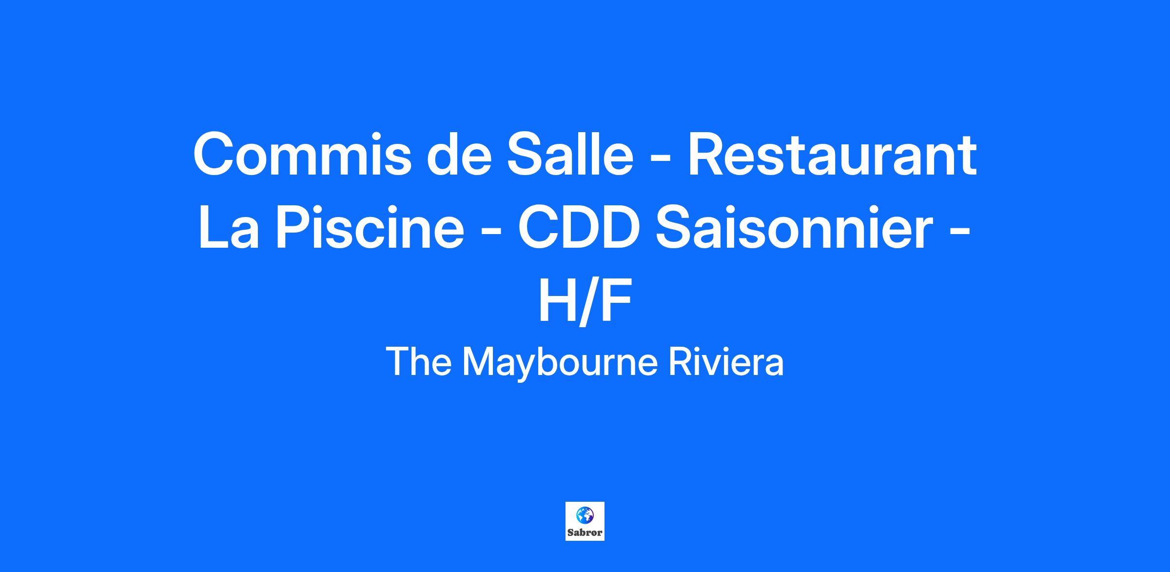 Nous recrutons un.e Commis de Salle au sein de notre inégalable Restaurant La Piscine qui sera en charge :