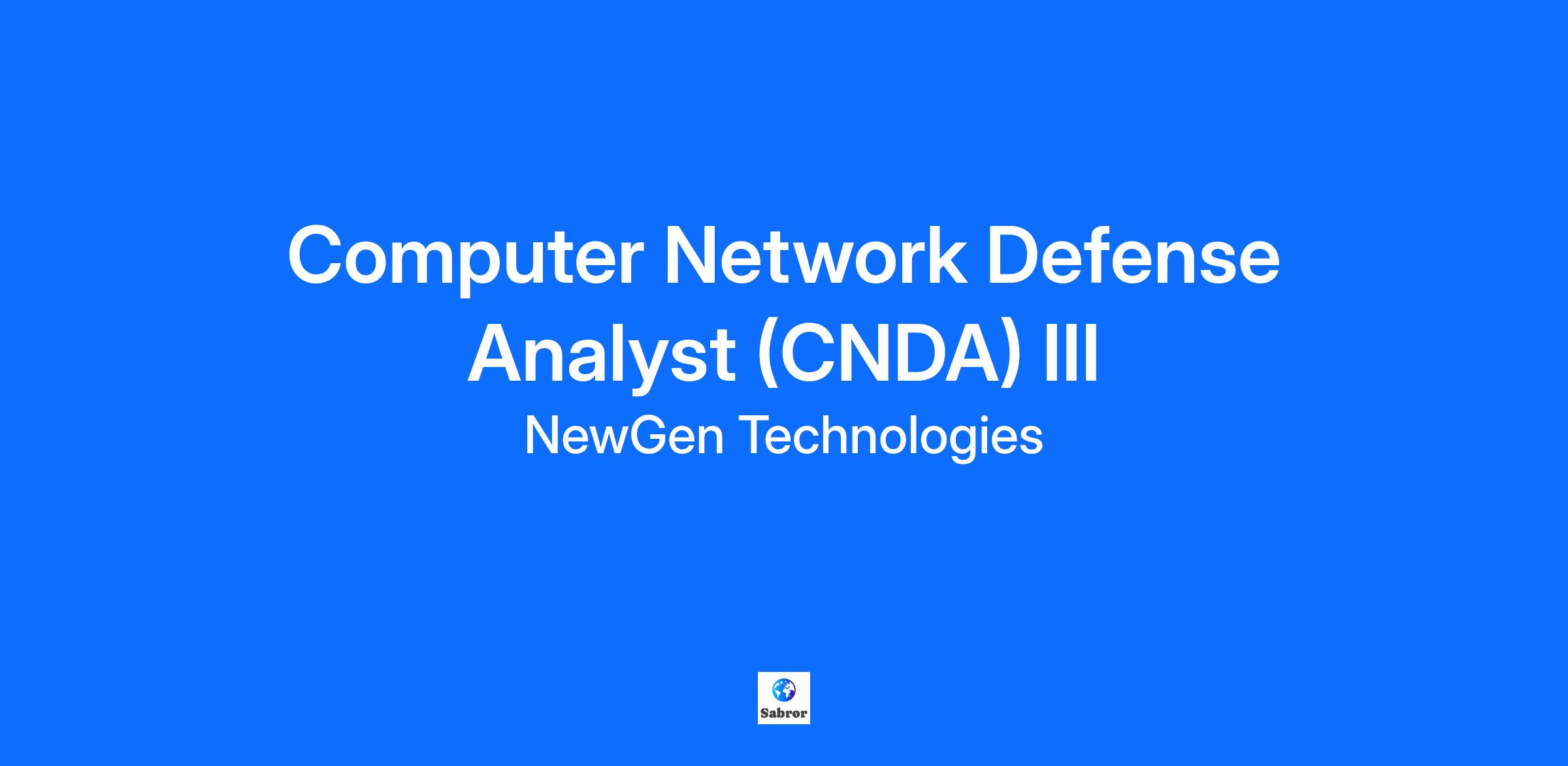 Computer Network Defense Analyst (CNDA) III