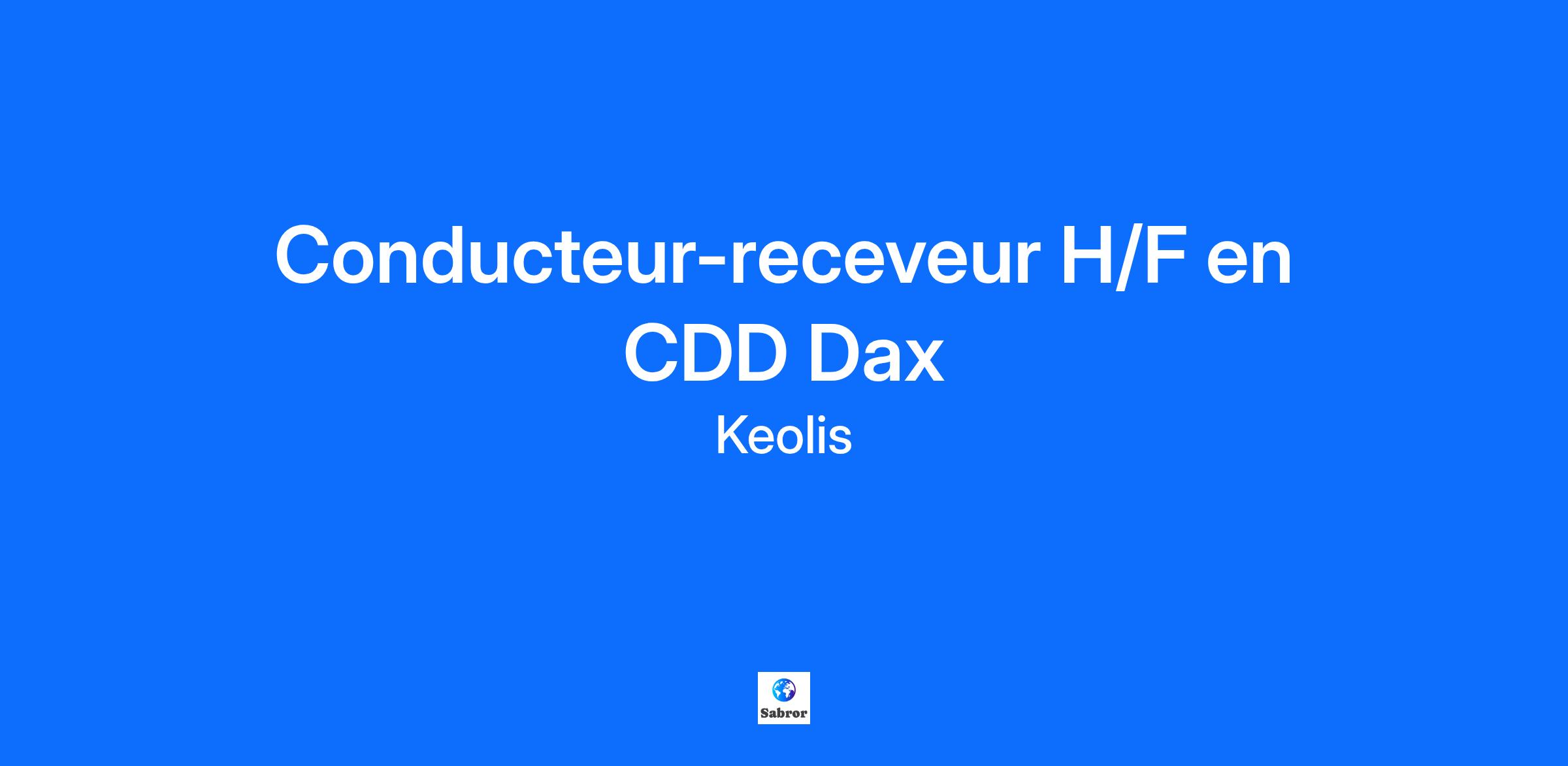 [[Conducteur-receveur H/F]] Dax CDD Keolis Gascogne, société de Transport de Voyageurs, nous recrutons des Conducteurs de Car H/F pour nos dépôts de Saint Pierre du Mont, Dax, Fourques et Agen ! Si vous recherchez un emploi utile aux autres et accessible à tous, Que vous soyez en reconversion, reprise d’activité ou déjà en poste, venez rejoindre nos équipes KEOLIS GASCOGNE et accompagner la vie quotidienne des voyageurs en tant que Conducteur de Car H/F !Description du poste : Keolis Gascogne, spécialisée dans le transport de voyageurs, recherche un conducteur H/F en CDD jusqu'au 11/12/2025, pour son dépôt de Dax ! Sous la responsabilité directe du service exploitation, vous effectuerez le transport des passagers en respectant leur confort et leur sécurité, en fonction des horaires et des lieux de passages prévus. Vous respectez la réglementation sur routière et du transport des personnes, les autres usagers, les contraintes de l'entreprise (véhicule, planning, horaires, arrêts desservis …). Vous êtes en capacité de maintenir un climat de tranquillité et de gérer les imprévus et prendre les mesures de première urgence en cas d'incident ou d'accident. Poste à Temps partiel (104 heures mensuel) jusqu'au 11/12/2025.Description du profil : Vous avez le sens des responsabilités et du service, vous êtes ponctuel(le) et soigné(e). Vous disposez impérativement du permis D et FIMO valides. Dans le cadre de la relation clientèle, vous maîtrisez la langue française (écrire, lire, parler). Rémunération : 13,03€/heure + primes liées à l'activité