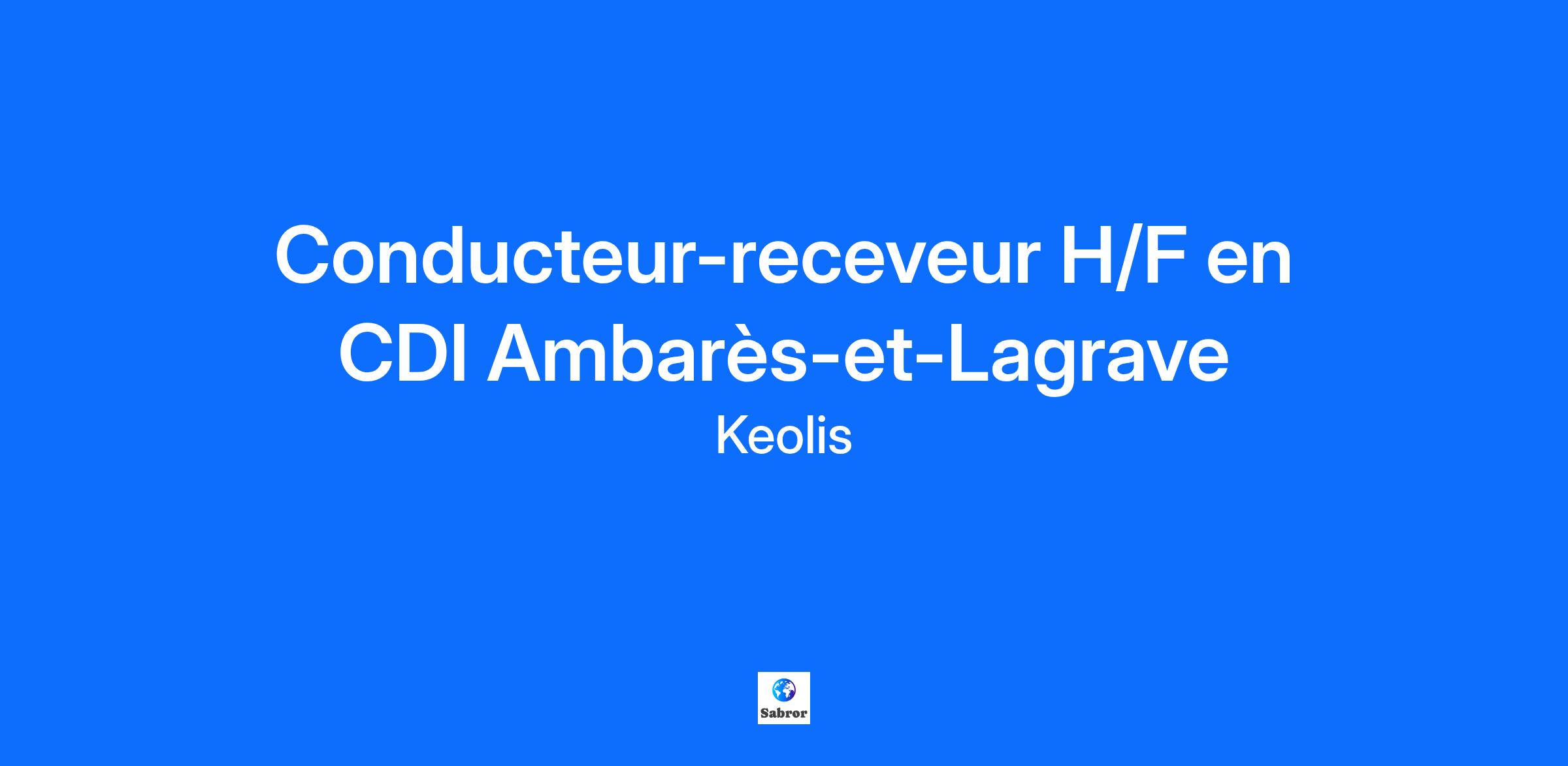 [[Conducteur-receveur H/F]] Ambarès-et-Lagrave Keolis est un des leaders mondiaux de la mobilité partagée et le partenaire privilégié des Autorités Organisatrices de Mobilité. En 2021, le Groupe a connu une croissance significative avec un chiffre d’affaires de 6,3 milliards d’euros. Présents dans 14 pays, nos 68 000 collaborateurs œuvrent chaque jour à la proposition d’une alternative crédible à la voiture individuelle et ainsi à l’accélération de la transition écologique. Ensemble, nous coconstruisons des solutions de transport en commun sûres, performantes et durables. Notre ambition est d’imaginer et de déployer ces mobilités au service de chaque territoire, pour une meilleure qualité de vie de tous et de chacun. Keolis Gironde, filiale du groupe Keolis, gère pour le compte des collectivités le transport régional de la région Nouvelle Aquitaine et intervient pour le compte de réseaux urbains locaux. Cette entreprise est composée de 425 collaborateurs. Keolis Gironde, spécialisée dans le transport de voyageurs, recherche des conducteurs receveur en CDI H/F, pour son dépôt d'Ambarès-et-Lagrave. Sous la responsabilité directe du service exploitation, vous : - effectuez le transport des passagers en respectant leur confort et leur sécurité, en fonction des horaires et des lieux de passages prévus, - respectez la réglementation sur routière et du transport des personnes, les autres usagers, les contraintes de l’entreprise (véhicule, planning, horaires, arrêts desservis …), - êtes en capacité si nécessaire de vendre des titres et gérer et veiller à votre caisse, - êtes en capacité de maintenir un climat de tranquillité et de gérer les imprévus et prendre les mesures de première urgence en cas d’incident ou d’accident. Profil Vous avez le sens des responsabilités et du service, vous êtes ponctuel(le) et soigné(e). Vous disposez impérativement du permis D et FIMO valides. Dans le cadre de la relation clientèle, vous maîtrisez la langue française (écrire, lire, parler). Rémunération : 13,54€/heure, 13 mois de salaire + primes liées à l'activité