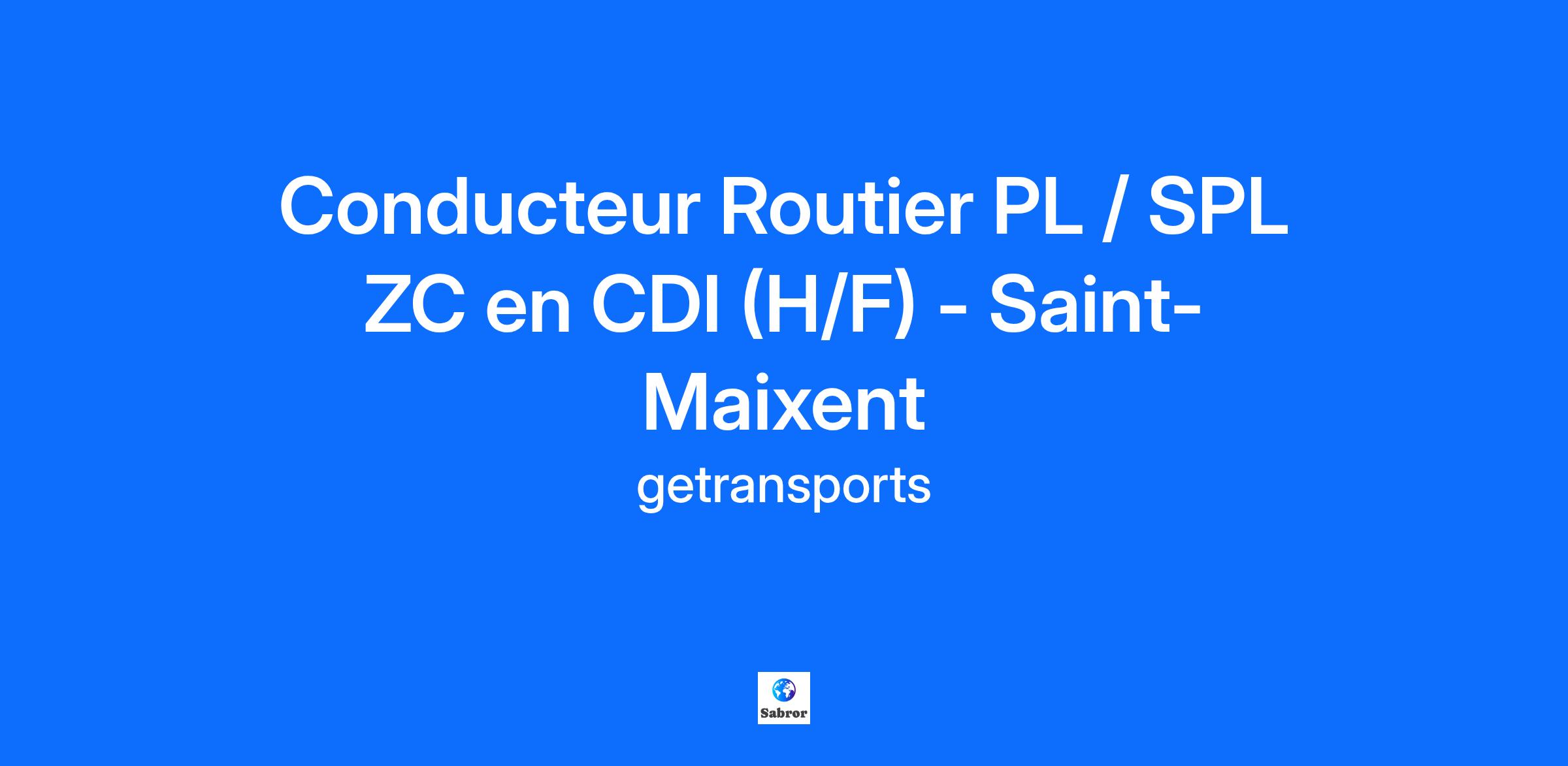 Conducteur Routier PL / SPL ZC en CDI (H/F) - Saint-Maixent