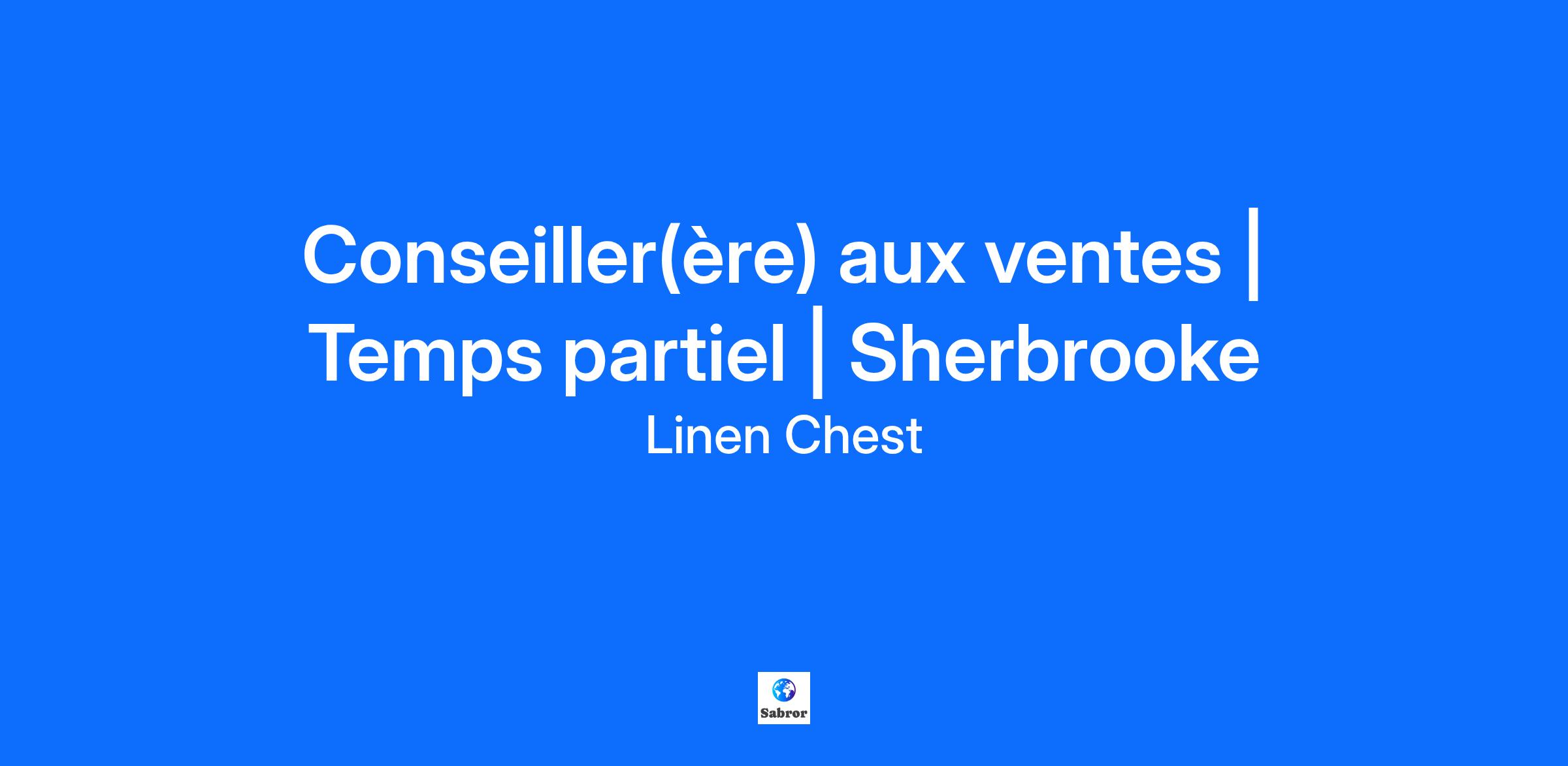 Description de l'entreprise Conseiller(ère) aux ventes | Temps partiel | Sherbrooke Vous voulez faire partie d’une équipe dynamique et vous êtes passionné par la vente ? Vous aimez connecter, développer des relations de confiance et offrir une expérience de magasinage unique ? Vous voulez devenir un expert dans votre domaine et être fier de représenter une entreprise prestigieuse ? Alors nous sommes à la recherche de quelqu'un comme vous pour rejoindre notre équipe ! Description du poste Le conseiller aux ventes s’occupe d'accompagner les clients tout au long de leurs expériences de magasinage et de créer des liens avec eux afin de mieux comprendre leurs besoins. Ce que nous vous offrons : Entreprise familiale qui priorise le bien-être de ses employés ; Salaires les plus compétitifs sur le marché du commerce de détail avec des opportunités de croissance ; Salaire de base + commissions avantageuses sur les ventes ; Congés de maladies payées ; Environnement de travail humain où nos talents sont reconnus et appréciés ; Opportunités de croissance au sein de l’entreprise ; Formations et développement professionnels ; Possibilité de faire du temps plein ou du temps partiel selon vos préférences ; Programme de référencement lucratif (jusqu’à 1000$) ; Rabais sur tous les produits Linen Chest ; Qualifications Capacité à gérer plusieurs clients simultanément en période d’achalandage Aimer travailler avec le public ; Avoir un esprit d’équipe développé. Informations complémentaires Il s'agit d'une occasion exceptionnelle de travailler pour une entreprise qui vous permettra d'évoluer dans un environnement de travail où vous pourrez vous épanouir et faire la différence. Venez faire carrière au sein de la grande famille Linen Chest ! * Le générique masculin inclut le féminin et est utilisé sans aucune discrimination et uniquement dans le but d'alléger le texte.