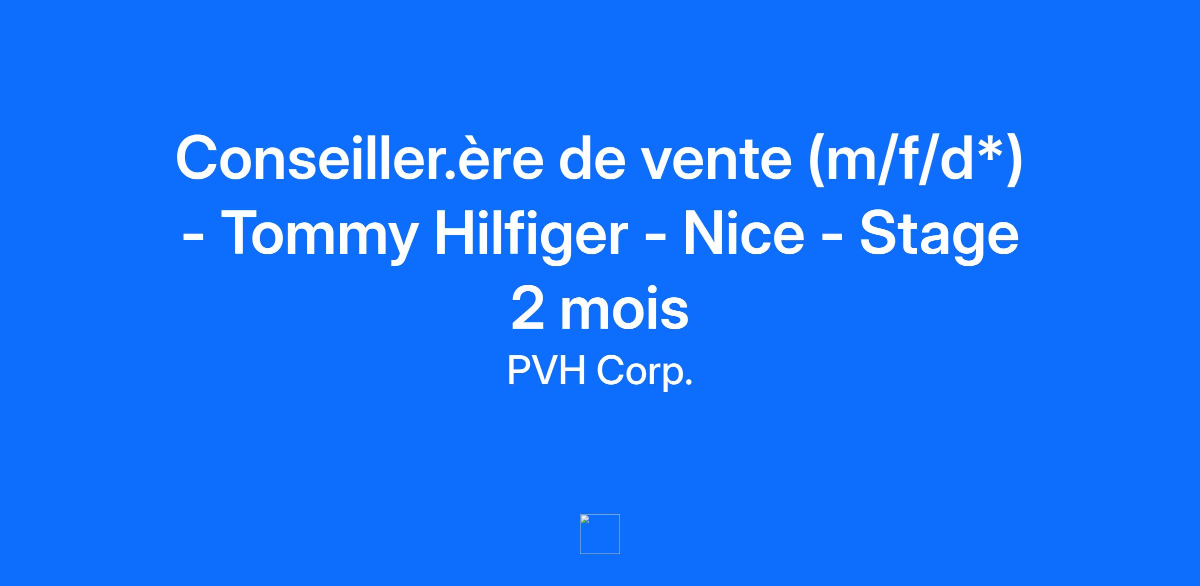 Design Your Future at PVH Conseiller.ère de vente (m/f/d*) - Tommy Hilfiger - Nice - Stage 2 mois Présentation de l’entreprise Créée en 1881, PVH est l'une des plus importantes entreprises textiles au monde, regroupant plusieurs marques de mode iconiques et lifestyle. Parmi elles figurent Calvin Klein, acquise en 2003, et Tommy Hilfiger en 2010. Description du poste Es-tu prêt.e à faire passer ta carrière au niveau supérieur et à rejoindre un parcours extraordinaire au sein de PVH ? Alors conçois ton avenir avec nous ! Rejoins notre équipe Tommy Hilfiger de la boutique de Nice, en tant que conseiller.ère de vente (m/f/d) en stage pour une durée de 2 mois maximum (dates flexibles). Voici les responsabilités qui te seront confiées afin d’atteindre nos objectifs communs : Fais vivre une expérience client unique et personnalisée Laisse parler ton tempérament commercial Sois le/la garant.e de la bonne tenue du point de vente : respect des guidelines visuel merchandising, réception et traitement des livraisons, gestion rigoureuse des stocks, encaissement… Transmets ta passion pour la mode et le produit Exprime ta créativité, sois curieux.se et THINK BIG ! Profil recherché Tu as idéalement une première expérience dans le secteur de la mode, du retail ou du commerce. Chez PVH nous sommes ouverts aux profils provenant de différents horizons. Ton niveau d’anglais te permet de répondre aux attentes de notre clientèle internationale. Postule dès maintenant, raconte-nous ton histoire et rejoins-nous ! Quelle est la prochaine étape ? Nos équipes examineront ta candidature, et t’appelleront si ton profil est compatible. Puis, tu auras l'opportunité de nous rencontrer lors d'un entretien. Nous sommes impatients.es de découvrir les prochains talents de PVH ! Welcome All at PVH ! Nous encourageons la diversité et le respect de l'individualité et nous sommes fier.ère.s de travailler avec des personnes talentueuses venant d'horizons différents. Les candidat.e.s sont considéré.e.s sans égard à leur âge, leur appartenance ethnique, leur sexe, leur expression de genre, leur identité de genre, leur nationalité, leur religion ou leur orientation sexuelle. Nous sommes convaincu.e.s que travailler dans un esprit d’inclusion favorise l’épanouissement de nos équipes et leur permet d’exprimer leur potentiel. Afin d’offrir un processus de recrutement inclusif et équitable, nous vous invitons à nous communiquer vos pronoms, prénom.s d’usage ou toute autre information relative à votre individualité lors du premier contact avec l’équipe Talent Acquisition. Toutes nos offres d'emploi sont ouvertes aux personnes en situation de handicap. *m/f/d : male/female/diversities REJOINS LA TEAM PVH #POWEROFPVH We are brand builders who focus our passion and creativity to build Calvin Klein and Tommy Hilfiger into the most desirable lifestyle brands in the world and at the same time position PVH as one of the best-performing brand groups in our sector.