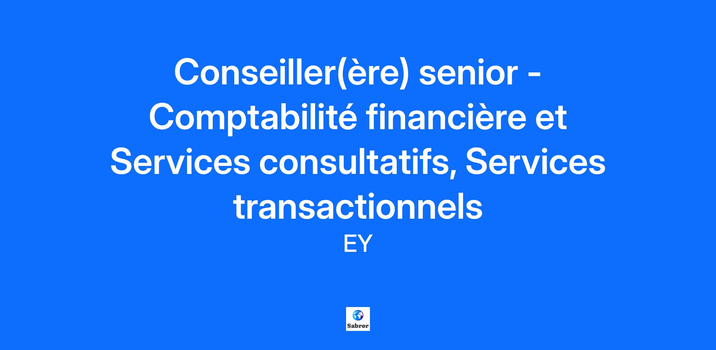 Chez EY, nous sommes All in pour façonner votre avenir en toute confiance.    Nous vous aiderons à réussir au sein d’un puissant réseau d’équipes diversifiées connectées à l’échelle mondiale et à mener votre carrière là où vous le souhaitez.    Joignez-vous à EY et travaillons ensemble pour un monde meilleur.  La possibilité   À titre de conseiller(ère) senior des Services transactionnels, vous serez un membre professionnel de notre équipe Services consultatifs, Comptabilité financière (SCCF). L’équipe SCCF exerce principalement ses activités à travers quatre piliers : ’Information d’entreprise et traitement comptable améliorés, Optimisation de la fonction Finance, Gestion de la trésorerie et Services transactionnels. Nous comprenons l’évolution du rôle du chef des finances et de la fonction Finance et travaillons avec nos clients en vue d’automatiser et de rationaliser les fonctions d’efficacité, de contrôle et de conformité, tout en veillant à l’amélioration de la valeur de la fonction Finance pour l’organisation. Prenant appui sur nos investissements considérables dans la technologie, les connaissances et les ressources d’apprentissage pour nos professionnels des services consultatifs, vous ferez partie d’une équipe qui fournit des services consultatifs financiers qui répondent aux besoins des clients et de leurs parties prenantes. Vos principales responsabilités   À titre de conseiller(ère) senior des Services transactionnels, vous contribuerez activement à des équipes axées sur la croissance et le développement de notre pilier des Services transactionnels, y compris le développement commercial, la gestion des relations avec les clients et la réalisation de mandats en contact avec les clients. Vous aiderez les dirigeants financiers à relever les défis auxquels leurs équipes font face à l’heure actuelle. Vous travaillerez avec eux afin de réaliser leurs objectifs de transactions, d’acquisitions, de désinvestissements, d’optimisation des processus et de numérisation des processus. Vous leur offrirez des conseils novateurs qui leur permettront d’optimiser leurs processus, d’utiliser des technologies de pointe et de créer de la valeur pour leur organisation.  Compétences et qualités pour réussir   Recensement et évaluation des besoins d’affaires et des besoins opérationnels, conception de solutions adaptées à ces besoins, évaluation de la fonction Finance, diagnostics opérationnels et optimisation des processus financiers, animation de formations personnalisées, et autres. Rédiger des livrables adaptés aux besoins des clients. Favoriser un environnement innovateur et orienté vers le travail d’équipe. Établir et maintenir des relations productives avec les équipes de direction des clients. Connaître les secteurs d’activité des clients et savoir reconnaître les principaux inducteurs de rendement, les tendances sur les plans commercial et opérationnel, ainsi que les faits nouveaux techniques et sectoriels. Se tenir au courant des faits nouveaux sur l’évolution de la conjoncture du marché et sur les changements réglementaires, ainsi que de leurs incidences sur nos clients. Suivre les programmes de formation afin de perfectionner ses compétences. Utiliser les technologies pour vous développer, partager vos connaissances avec les membres de l’équipe et améliorer la prestation de nos services. Entretenir des relations de coopération et d’entraide avec les équipes des autres lignes de services d’EY. Solides aptitudes en communications écrites et verbales en anglais, la maîtrise du français est un atout. D’excellentes aptitudes en relations interpersonnelles et en communication afin d’entretenir des relations irréprochables avec les clients. Connaissance approfondie des tendances commerciales ainsi que des faits nouveaux techniques et sectoriels. Excellentes compétences en leadership et en gestion de projet. Capacité à gérer de multiples missions et à respecter les délais.    Ce que nous recherchons Un diplôme universitaire de premier cycle en gestion de projets, en administration des affaires, en gestion des opérations ou en génie industriel; Au moins trois ans d’expérience pertinente; Un titre professionnel et (ou) des qualifications professionnelles, c.-à-d. CA, CPA (obtenu ou en cours d’obtention); Une grande capacité d’adaptation et une ouverture au changement; De l’intégrité au sein d’un environnement professionnel. Des connaissances/de l’expérience dans plusieurs aspects suivants :  l’évaluation de l’état de préparation au PAPE et la gestion des activités tout au long du cycle de vie du PAPE; une participation préalable à un PAPE, un atout; la planification et l’intégration d’acquisitions dans tous les aspects de l’organisation/des gens, des processus et de la technologie, y compris la gestion et l’exécution des projets; la planification et la gestion des cessions dans tous les aspects de l’organisation/des gens, des processus et de la technologie, y compris la gestion et l’exécution des projets; l’expérience de la comptabilité technique touchant les IFRS et les PCGR des États-Unis; l’expérience en audit ou en entreprise (opérationnelle) dans la clôture d’états financiers et dans la mise en place de contrôles internes à l’égard de l’information financière (de l’expérience dans la conformité au Règlement 52-109 ou l’article 404 de la loi Sarbanes-Oxley, un atout).  Des compétences analytiques très développées axées sur les analyses de rentabilité et la modélisation financière. De solides compétences en analyse et en résolution de problèmes et la capacité de faire preuve d’esprit critique et de trouver des solutions créatives, de sortir des sentiers battus et de relever de nouveaux défis. De l’expérience en optimisation des processus ou en ana