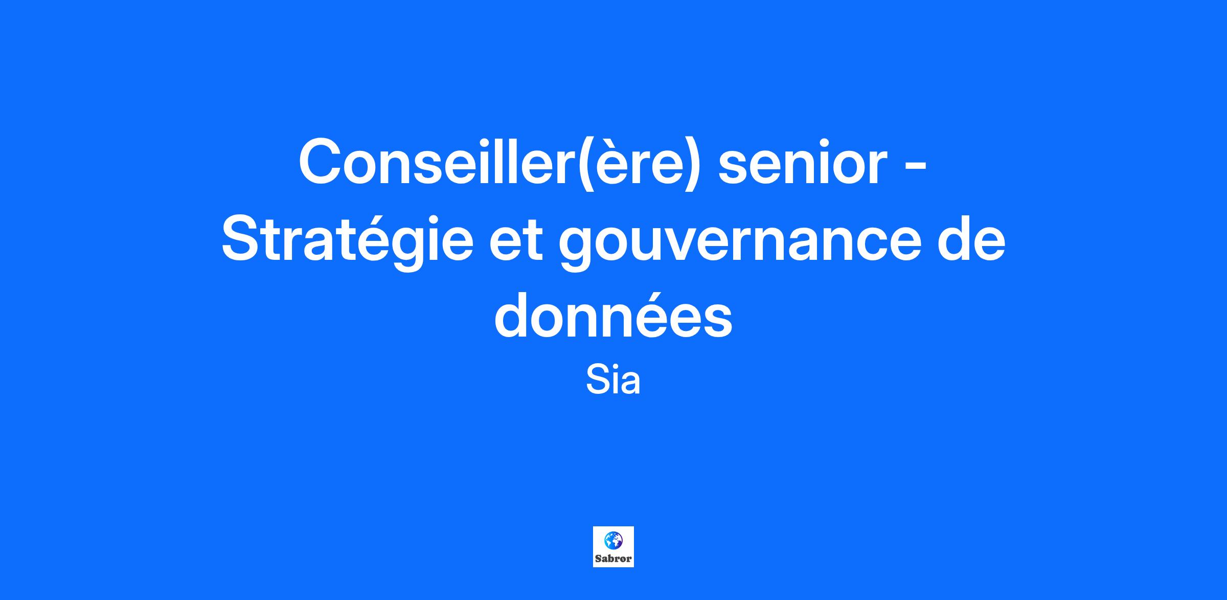 Description de l'entreprisePionnier du Consulting 4.0, Sia réinvente le métier du conseil et apporte un regard innovant et des résultats concrets à ses clients. Nous avons développé des solutions basées sur l’Intelligence Artificielle et le design pour augmenter l’impact de nos missions de conseil. Avec 3 000 consultants dans 21 pays.Sia Partenaires Inc. est présent au Canada avec un bureau situé à Montréal. Depuis son ouverture, ce bureau a connu une forte croissance, soutenue par sa capacité à construire des relations durables avec ses clients et à trouver des moyens novateurs de leur proposer des résultats tangibles.Fidèle à son approche innovante, Sia explore les possibilités offertes par l’Intelligence Artificielle, investit dans la data science et développe des consulting bots.Description du posteVous intégrerez notre communauté internationale dédiée à la valorisation et la gouvernance de la donnée au sein de notre unité d’affaires Transformation numérique et TI. Cette équipe intervient auprès de l’ensemble des secteurs d’activité (énergie, public / parapublic, industrie, banque, …) pour soutenir les organisations dans leurs enjeux liés aux données et, plus largement, au virage numérique. Nos conseillers accompagnent nos clients sur un ensemble de thématiques en lien avec les technologies de l’information (TI) et l’innovation.En intégrant notre équipe, vous interviendrez au sein d’une unité d’affaires pluridisciplinaire sur des projets variés autour de la donnée tels que :Développer des stratégies globales de gouvernance des données en élaborant des politiques directrices et des modèles opérationnels de gestion des données, ainsi qu'en mettant en place un dispositif de coordination et de surveillance dédié à la donnée.Contribuer au développement de la valorisation des données en définissant des cas d'usage, des objectifs et une feuille de route. Cela implique également de participer à la création de contenu destiné aux ventes et aux propositions.Élaborer une stratégie de données à l’échelle d’une organisation en définissant des objectifs clairs pour l'exploitation des données afin de contribuer à la rencontre des objectifs stratégiques.Assumer la gestion de projets afin de garantir la satisfaction des clients et l'atteinte des objectifs fixés. Cela implique de superviser l'avancement de plusieurs projets et de fournir un encadrement technique aux membres juniors de l'équipe pour résoudre des problèmes complexes.Établir une communication efficace avec les parties prenantes, en sensibilisant et en responsabilisant les collaborateurs quant à l'utilisation des données. Il s'agit également d'assurer une communication fluide avec les clients potentiels.Développer et mettre en œuvre des bonnes pratiques visant à améliorer la livraison et les opérations liées aux données. Cela comprend la conception de formations adaptées aux besoins des équipes, ainsi que la contribution au développement commercial par la définition d'offres et la création de contenu marketing.Renforcer les offres de l'entreprise par le biais de formations, de groupes de travail et de supports internes et externes. Cela peut inclure la publication d'articles, d'études et de messages sur les médias sociaux, ainsi que la contribution à une communauté plus large au sein de l'équipe de données et d'analyse.QualificationsVous êtes diplômé(e) d'une formation universitaire en intelligence d'affaires, informatique ou dans une discipline connexe, et vous avez accumulé au moins 5 années d'expérience professionnelle pertinente. Vous êtes fortement sensible aux nouvelles technologies, aux tendances et aux transformations qui se produisent sur le marché de la gestion de données. De plus, vous vous intéressez aux technologies et à la gestion des systèmes d'information. Vous êtes capable d'avoir une vision globale des problématiques liées à la gestion de données, tant sur le plan technique qu'organisationnel. Par ailleurs, vous possédez une expertise reconnue dans des domaines plus spécialisés tels que les API, les données ouvertes, la visualisation des données, les données massives, etc. La possession d'une certification DAMA ou équivalente constitue un atout. En plus de ces qualifications, vous êtes doté(e) d'une curiosité intellectuelle, d'une capacité à travailler en équipe, d'une ouverture d'esprit et d'un sens de l'analyse. Vous souhaitez rejoindre un environnement professionnel motivant où vous partagerez des valeurs telles que l'excellence, l'entrepreneuriat, l'innovation, la culture du partage, la bienveillance, ainsi que l'équilibre entre vie personnelle et vie professionnelle. Français, anglais professionnel courant indispensable.Informations supplémentairesPoste basé au bureau de Montréal (dans le Vieux Montréal)Vous souhaitez rejoindre un environnement professionnel motivant où vous partagerez les valeurs que sont la culture du résultat, la qualité et la satisfaction client ? Rejoignez-nous !Sia Partners est un employeur qui souscrit au principe de l’égalité d’accès à l’emploi. Tous les aspects de l’emploi, tels que le recrutement, les promotions, la rémunération, ou les sanctions sont basés uniquement sur les performances, les compétences, et le comportement des employés ou les besoins de l’entreprise.Sia is an equal opportunity employer. All aspects of employment, including hiring, promotion, remuneration, or discipline, are based solely on performance, competence, conduct, or business needs.