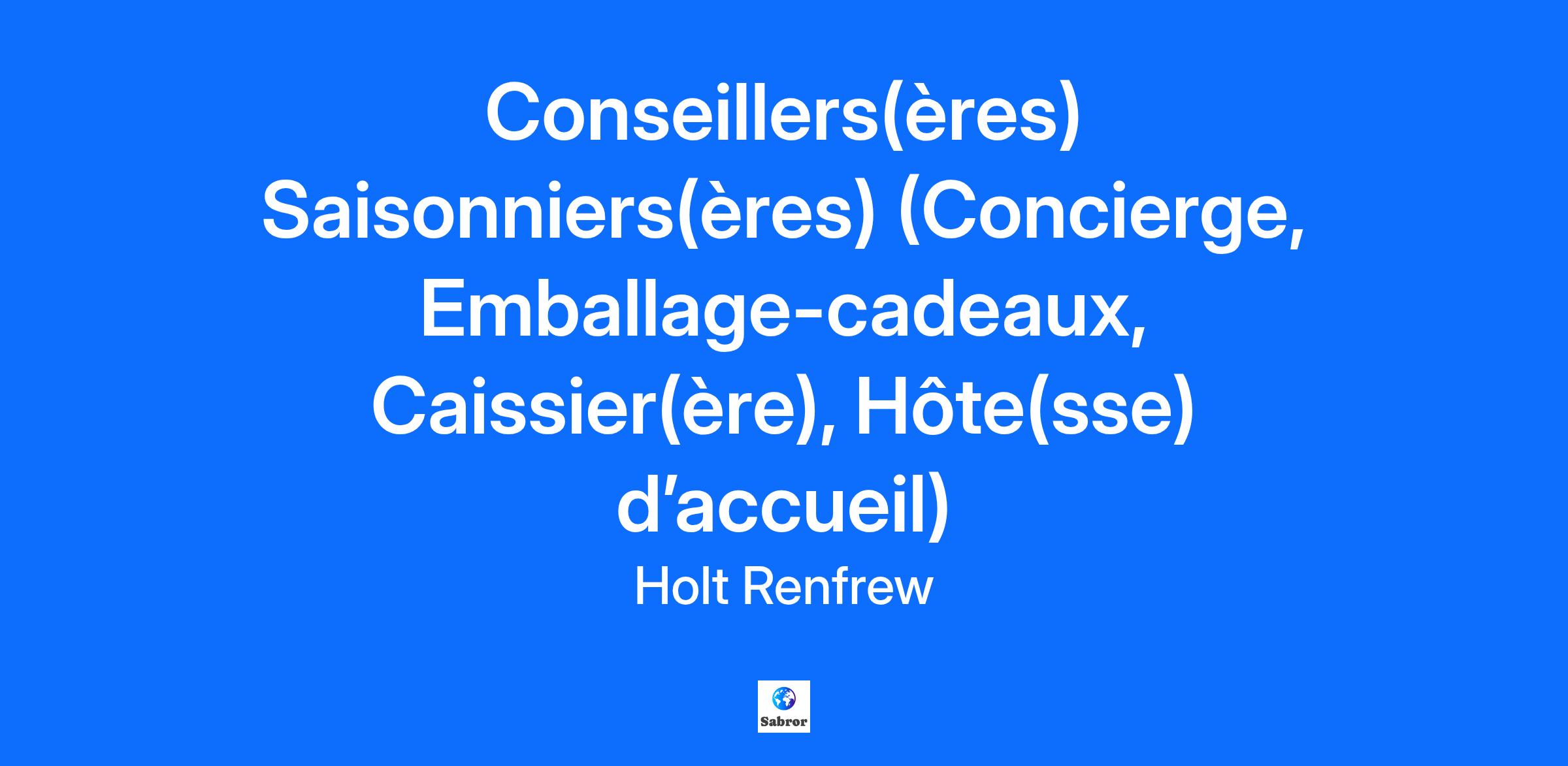 Holt Renfrew offers you an inspiring, fashion-driven environment with opportunities to learn and grow. From our incredible partnerships with iconic luxury brands, to our commitments to corporate social responsibility, you will be inspired every day. Vous aimez l'effervescence de la saison des fêtes? Vous recherchez un travail à temps plein ou à temps partiel qui vous permettra de vous amuser et de faire une différence dans la journée d’une autre personne? Nous embauchons des associé(e)s saisonnier(ère)s pour divers rôles, notamment à la conciergerie/réception, à l’emballage-cadeaux, à la caisse, à l’accueil ainsi qu’en cabine d’essayage dans nos magasins! Qui sommes-nous? Holt Renfrew est le détaillant de luxe principal au Canada, proposant des vêtements, des chaussures, des accessoires et des produits de beauté des marques des plus prestigieuses maisons de mode au monde, pour femmes et pour hommes. Rejoignez-nous dans nos magasins d'un bout à l'autre du pays, où nous nous efforçons de faire de chaque visite une expérience inspirée et distincte de la mode de luxe. Ce que nous offrons : Taux de rémunération compétitif entre 18 et 20 $ de l'heure, en fonction de l'expérience. Opportunité de gagner des commissions sur les ventes (pour les postes d'associé de vente). 0 à 39 heures par semaine. Remise pour employés saisonniers Une atmosphère amusante et conviviale avec une formation enc ours d’emploi Pourquoi embauchons-nous dans nos magasins? Les conseillers(ères) saisonniers(ères) travaillent en collaboration avec les équipes des magasins pour inspirer une vie sous le signe du style et offrir des expériences de shopping extraordinaires à nos clients. Les postes de conseillers(ères) saisonniers(ères) sont disponibles dans les domaines suivants (les besoins de chaque magasin varient) Conciergerie et Réception :Offrir un excellent service à la clientèle à tous les clients en agissant à titre d’ambassadeur, et résoudre les problèmes de service à la clientèle courants. Gérer les demandes et les renseignements reçus (en personne aux kiosques d’information, par téléphone ou par courriel) et y répondre dans un délai de 24 heures. Traiter les cartes-cadeaux. Préposé(e), emballage-cadeau : Emballer les achats des clients conformément aux normes d’emballage-cadeaux de Holt Renfrew Caissier(ère) : Accueillir les clients de manière amicale et chaleureuse, utiliser la technologie du point de vente, effectuer les transactions, percevoir les paiements et remettre les reçus aux clients. Hôte(sse) d’accueil :Accueillir les clients de manière amicale et chaleureuse, répondre aux questions générales et orienter les clients dans le magasin. Exigences : Passionné(e) par la marque et par le service à la clientèle en personne Capacité à travailler dans un environnement dynamique au sein d’une équipe Souci du détail, capacité à rester debout pendant de longues périodes et à se déplacer dans le magasinCapacité à utiliser la technologie du point de vente en magasin (formation offerte) Disponibilité pour travailler à divers quarts, y compris le matin, l’après-midi, le soir et les fins de semaine durant la période des Fêtes jusqu’à la fin décembre Holt Renfrew is an equal opportunity employer committed to fostering a diverse and inclusive workplace. Our future success depends on the perspectives and contributions of all our employees -- their diverse backgrounds, abilities and experiences make our business stronger. If you are contacted for a job opportunity and require accommodation, please email careers@holtrenfrew.com and let us know so we can ensure you have an accessible candidate experience throughout the recruitment process. All requests are confidential and used only to meet candidate needs. We are Canada’s FASHION and LIFESTYLE retailer, providing a strong trusted voice in the global fashion world on behalf of Canadian customers. We are the curators of EXTRAORDINARY products that INSPIRE our customers and are respectful of both people and planet. We provide personal service and experiences to empower our customers and colleagues to find the truest expression of themselves and create JOY in doing so. We are committed to creating and inspiring a more SUSTAINABLE future for all. We aim to IGNITE the possibility of POSITIVE CHANGE. No other brand has this combination of traits, and they give us our strong point of view and set us apart. Magenta Own and elevate Magenta so that it is synonymous with the brand. Canadian Be proud and make Canadians proud of who we are by representing a modern Canada, its values, its people, and its ethos on the global retail stage. Sustainability Be a leader in sustainability and ignite the possibility of positive change in others. Build loyalty by being known as a trusted brand that cares for its customers, colleagues, communities, as well as the planet. Personal Service Deliver the highest quality of service, not just to our most valuable customers, but to all guests of Holts. Our reach may be global, but our Values remain proudly Canadian. They are meaningful to us and guide how we work together and interact with our communities. Warmth Be open, welcoming, and respectful to others. Unity We are one team, one community, sharing one planet. Passion Passion is what drives us to be curious and think creatively. Excellence We constantly encourage ourselves to be better.