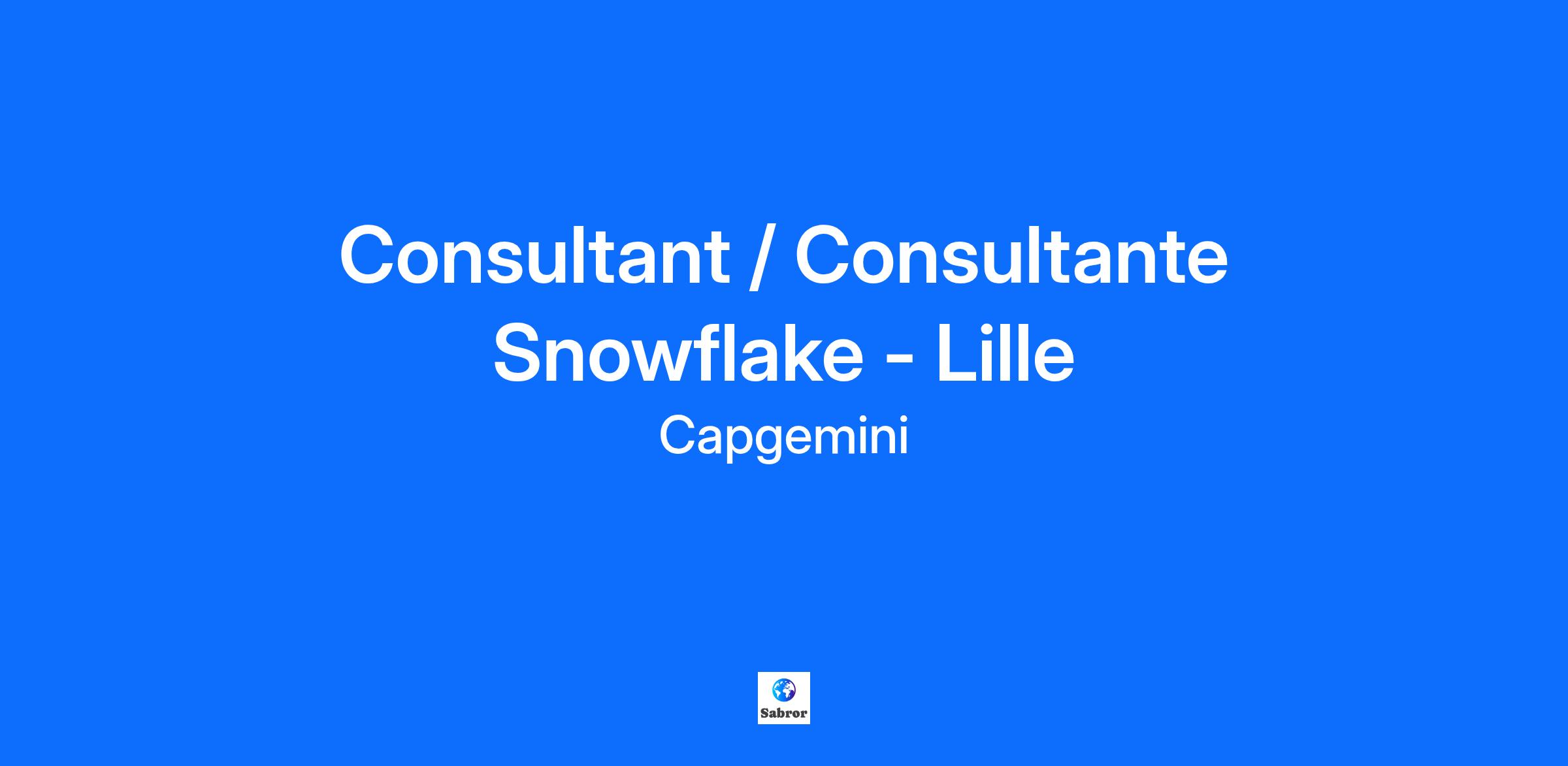 Consultant / Consultante Snowflake - Lille