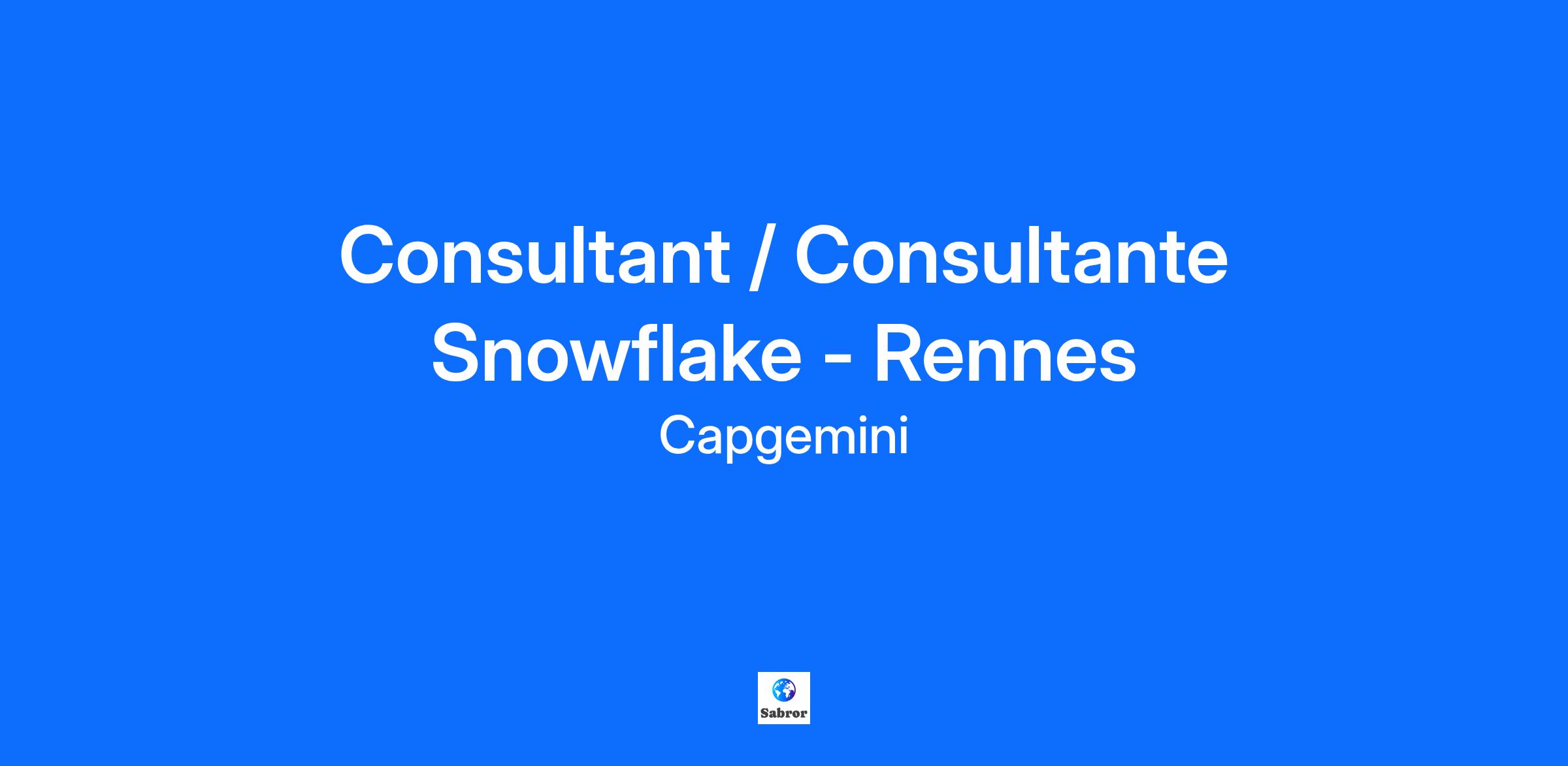 Consultant / Consultante Snowflake - Rennes