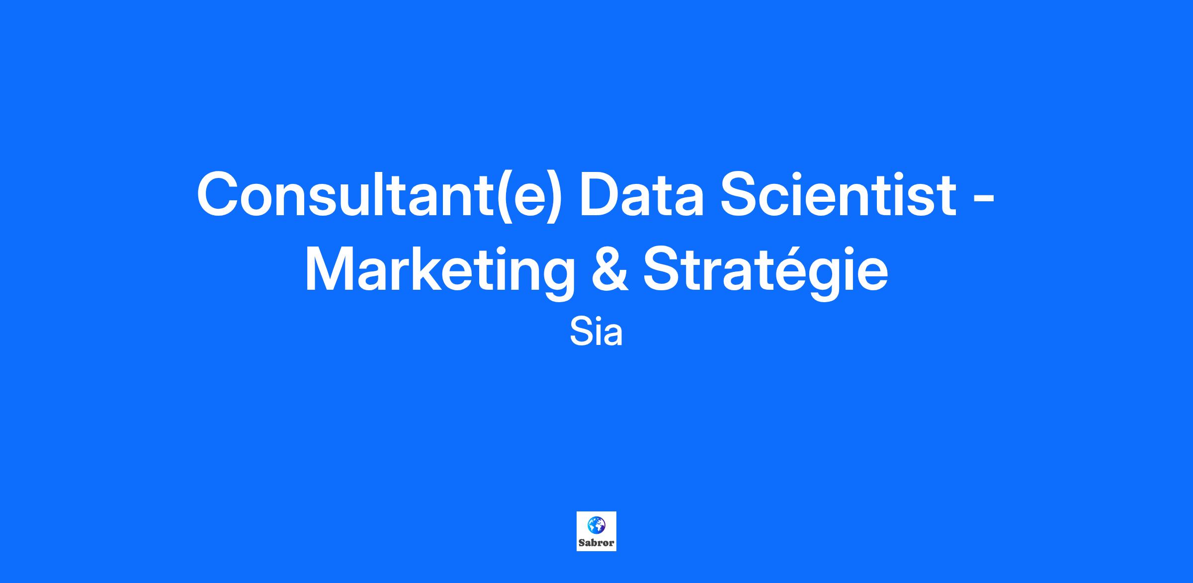Consultant(e) Data Scientist - Marketing & Stratégie