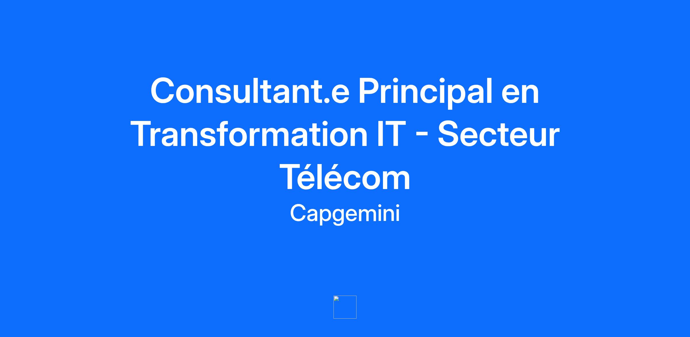 Choisir Capgemini, c'est choisir une entreprise où vous serez en mesure de façonner votre carrière selon vos aspirations. Avec le soutien et l'inspiration d'une communauté d’experts dans le monde entier , vous pourrez réécrire votre futur . Rejoignez nous pour redéfinir les limites de ce qui est possible, contribuer à libérer la valeur de la technologie pour les plus grandes organisations et participer à la construction d’un monde plus durable et inclusif Vos missions En rejoignant notre équipe parisienne en tant que Consultant Principal en Transformation IT, vous accompagnerez les principaux acteurs du secteur des télécommunications dans leurs projets de transformation numérique. Vous serez au cœur des initiatives stratégiques pour moderniser leurs infrastructures et améliorer l’expérience client. Vos responsabilités principales seront les suivantes : • Définir et piloter la transformation IT des opérateurs télécoms en alignement avec leurs enjeux business et technologiques. • Accompagner les clients dans la modernisation de leurs infrastructures réseau (5G, fibre optique, edge computing) et l’optimisation de leurs processus métiers. • Diriger les phases de cadrage et de mise en œuvre de projets complexes intégrant les nouvelles technologies (cloud, cybersécurité, intelligence artificielle, big data). • Contribuer au développement commercial en identifiant de nouvelles opportunités et en renforçant nos partenariats stratégiques. • Assurer une veille technologique et anticiper les évolutions du secteur télécom pour proposer des solutions innovantes et différenciantes. • Encadrer et faire grandir des équipes Votre profil • Passionné(e) par l’innovation et les nouvelles technologies appliquées au secteur des télécoms. • Expérience minimale de 10 ans dans le pilotage de projets/programmes IT complexes. • Expertise avérée dans le secteur télécom, avec une compréhension approfondie des enjeux liés aux réseaux, aux services numériques et à l’expérience client. • Excellentes compétences en gestion de projet et en pilotage d’équipes multidisciplinaires. • Capacité à interagir avec des interlocuteurs de haut niveau et à porter des initiatives de transformation. • Niveau d’anglais opérationnel (B2) et plus. 3 raisons de nous rejoindre • Qualité de vie au travail : accord de télétravail en France et à l’international, politique d’égalité professionnelle et parentalité, équilibre des temps de vie. • Apprentissage en continu : formations et certifications en libre accès, accompagnement sur mesure avec votre people manager. • Avantages groupe & CSE : plan d’actionnariat, activités à tarifs préférentiels, remboursement partiel des vacances, abonnement sportif ou culturel. Capgemini est un leader mondial , responsable et multiculturel , regroupant près de 350 000 personnes dans plus de 50 pays. Fort de 55 ans d’expérience , nous sommes un partenaire stratégique des entreprises pour la transformation de leurs activités en tirant profit de toute la puissance de la technologie et des innovations dans les domaines en perpétuelle évolution tels que le cloud, la data, l’Intelligence Artificielle , la connectivité , les logiciels , l’ingénierie digitale ou les plateformes. Get The Future You Want* |www.capgemini.com/fr fr *Capgemini, le futur que vous voulez