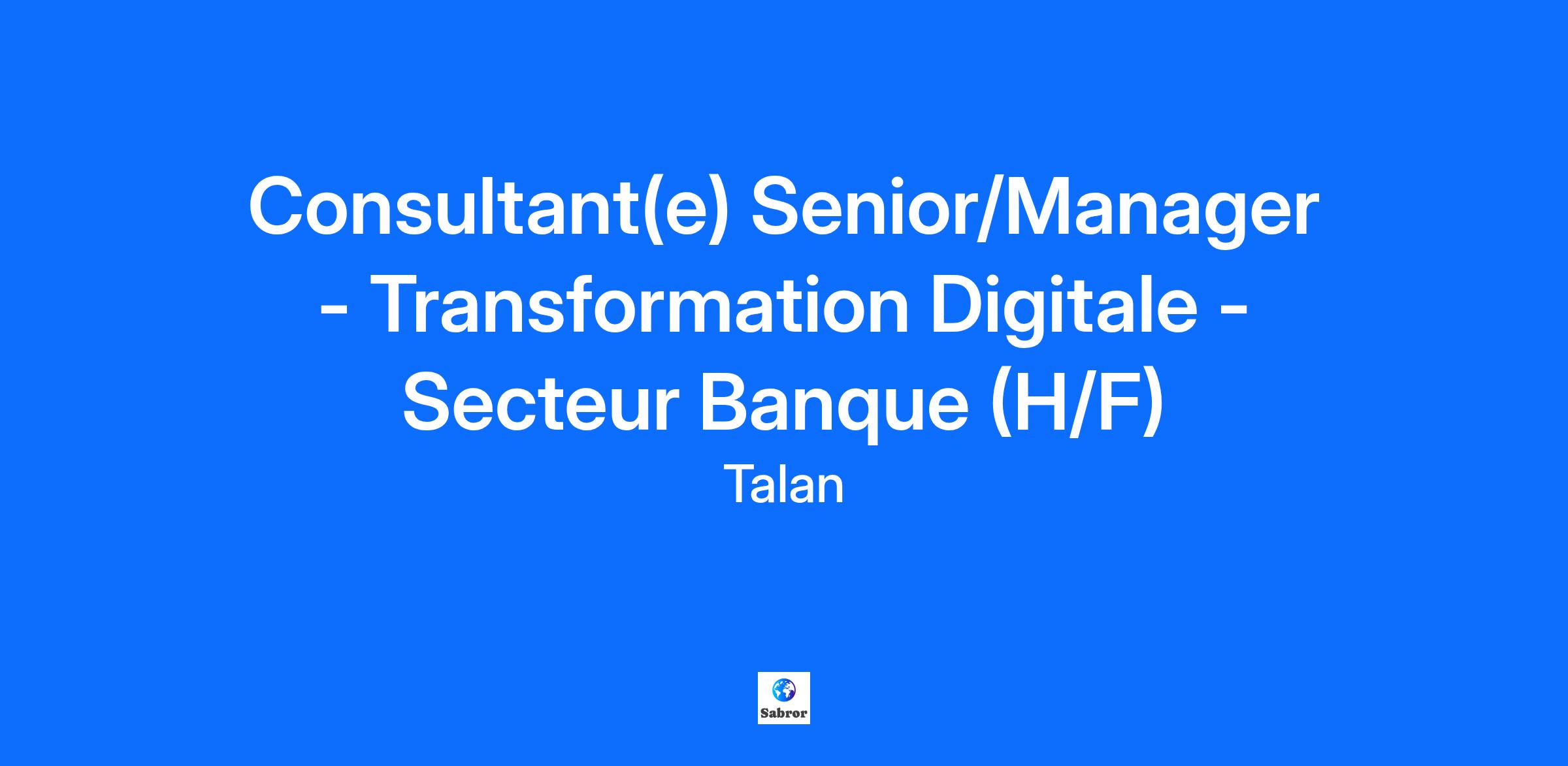 Consultant(e) Senior/Manager - Transformation Digitale - Secteur Banque (H/F)