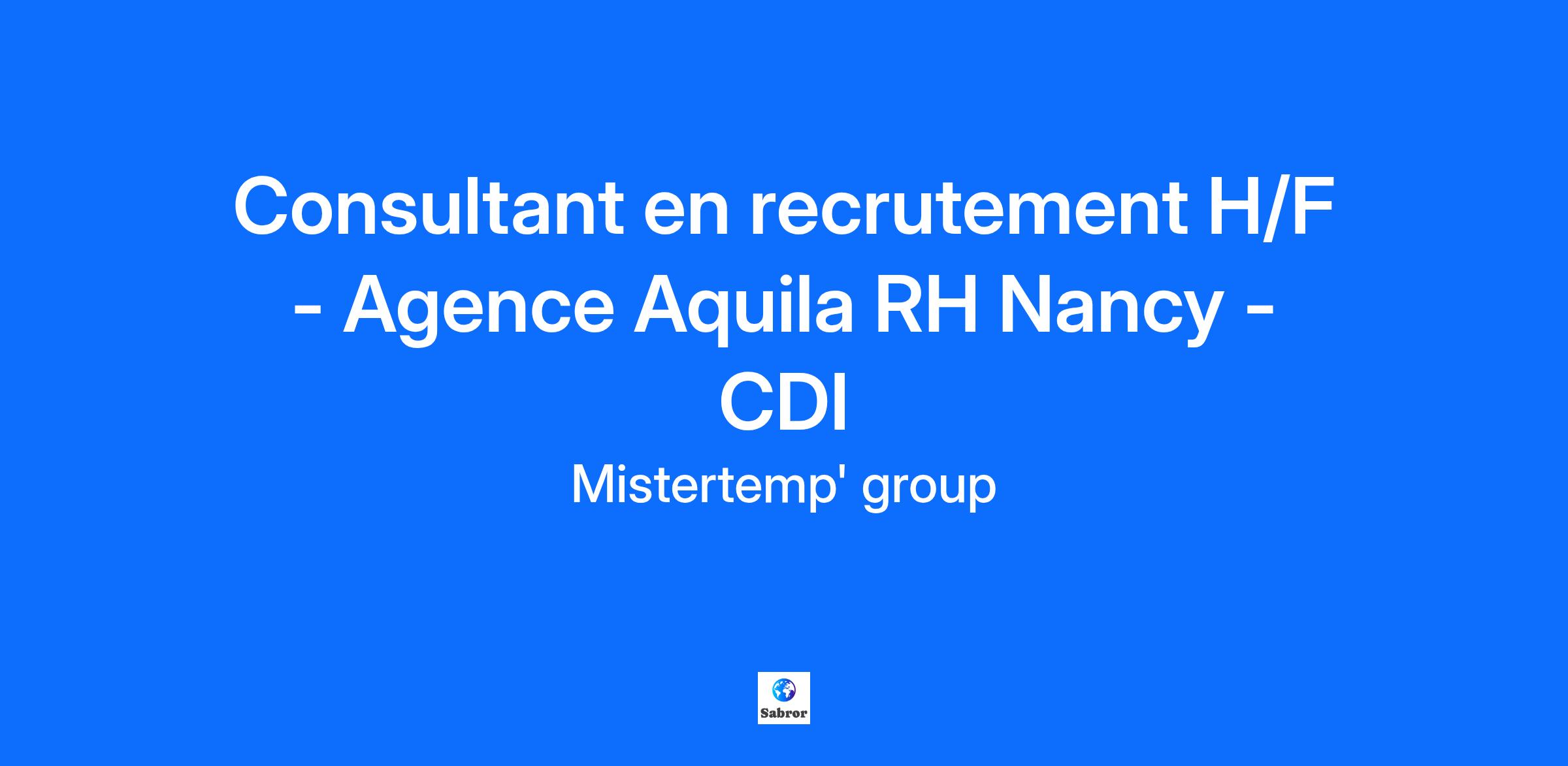 Chez Mistertemp’ Group, nous allions innovation digitale et proximité locale pour révolutionner le monde du recrutement (intérim/CDD/CDI). Présents en France, Italie, Espagne et au Canada, nous sommes fiers de figurer parmi les 12 startups HR Tech les plus innovantes en France, tout en étant lauréats des prestigieux French Tech 120 et Next 40. Avec une plateforme technologique de pointe et un réseau de 240 agences, nous avons une ambition claire : devenir le leader européen du recrutement. Pour y parvenir, nous cherchons des talents passionnés, motivés et prêts à s’investir dans un environnement dynamique et en pleine évolution. Aquila RH, marque emblématique du groupe Mistertemp est spécialisée dans le recrutement généraliste (BTP, industrie, logistique et tertiaire). Notre agence de Nancy recherche son/sa Consultant(e) recrutement en CDI. Nous sommes une équipe passionnée et motivée à trouver les meilleurs profils pour nos clients. Chaque jour, nous relevons le défi de connecter les compétences avec les opportunités et nous le faisons avec un brin de folie et beaucoup de professionnalisme. Car oui, chez Aquila RH, nous croyons en la magie des talents ! Rattaché(e) au responsable de l’agence, vous aurez pour challenge de développer l'activité de l'agence et d'accompagner nos clients sur leurs besoins en recrutement tout en assurant une qualité de services. Pour cela, trois grands rôles vous seront attribués: As de la présentation : Porte-parole dans le cadre du développement de l'activité et à la croissance du cabinet, la prospection et la fidélisation clients seront vos alliés ! Vous êtes un(e) véritable commercial(e) dans l'âme ! Détective du recrutement : vous enquêtez sur les besoins de nos différents clients, pour comprendre leurs attentes et leurs exigences (CDD, CDI et intérim). Vous vous lancerez à la poursuite des candidats les plus motivés, en utilisant tous les moyens de sourcing à votre disposition. Chef(fe) d’orchestre : Vous piloterez l’ensemble du processus administratif à savoir : la rédaction des contrats, DPAE, saisie des RH, vérification des documents administratifs, suivi des visites médicales, gestion des acomptes, facturation… Vous êtes un commercial dans l'âme, vous faites preuve de ténacité et avez fait valoir votre esprit de conquête ? Vous aimez instaurer des relations solides avec le client et les candidats ? Nous recherchons avant tout un savoir être, une personnalité empreinte de dynamisme et de curiosité, quelqu'un qui sera dans l'optique de progresser et de faire progresser. 📍 Localisation : Agence située à XXX 📅 Disponibilité : Poste en CDI à pourvoir ASAP 💰 Rémunération: Fixe 26-28K€+ variables mensuels Du lundi au vendredi sur une base hebdomadaire de 39 heures par semaine Alors prêt(e) pour l’aventure Aquila RH ? 😉 Rejoignez une entreprise qui valorise la diversité et l’inclusion ! Nos engagements se reflètent dans tous nos recrutements, où chaque candidat est évalué sur ses compétences, son potentiel et sa passion. Bienvenue dans un lieu où être 'handi-friendly' est une priorité.