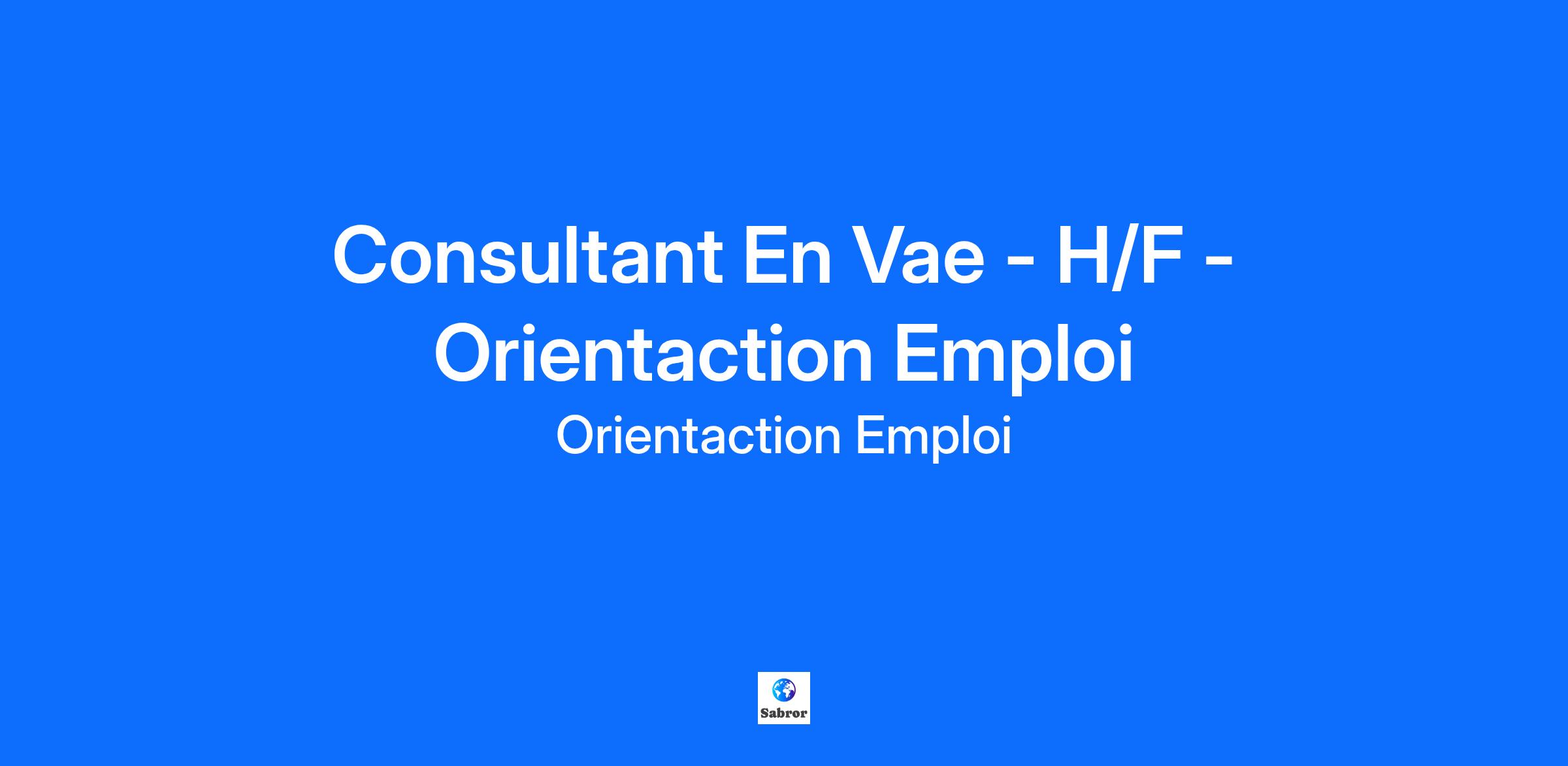 Consultant En Vae - H/F - Orientaction Emploi
