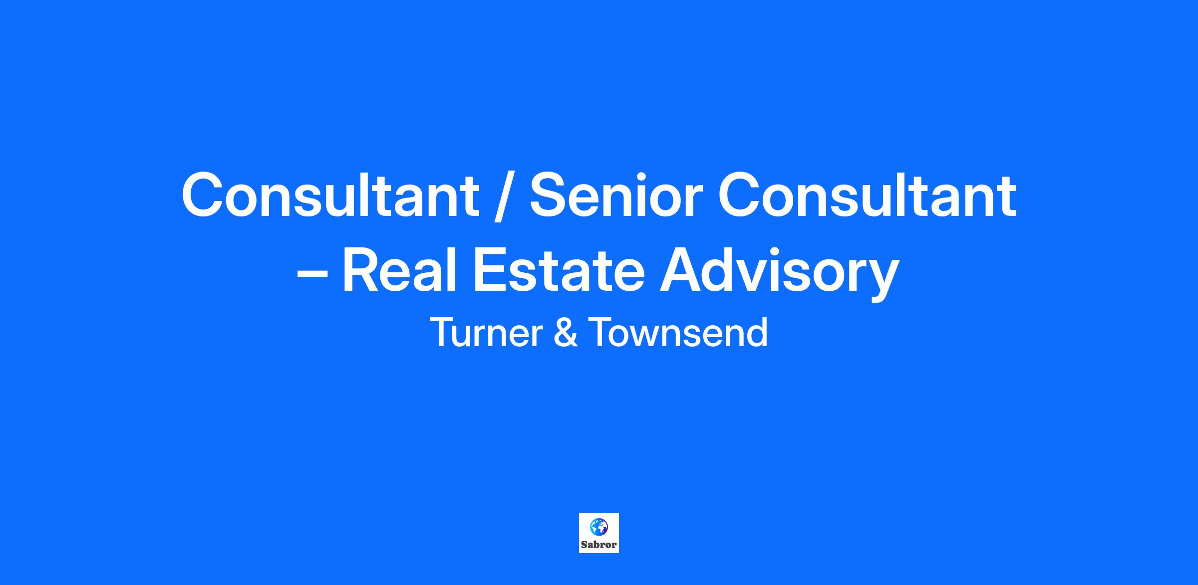 Consultant / Senior Consultant – Real Estate Advisory