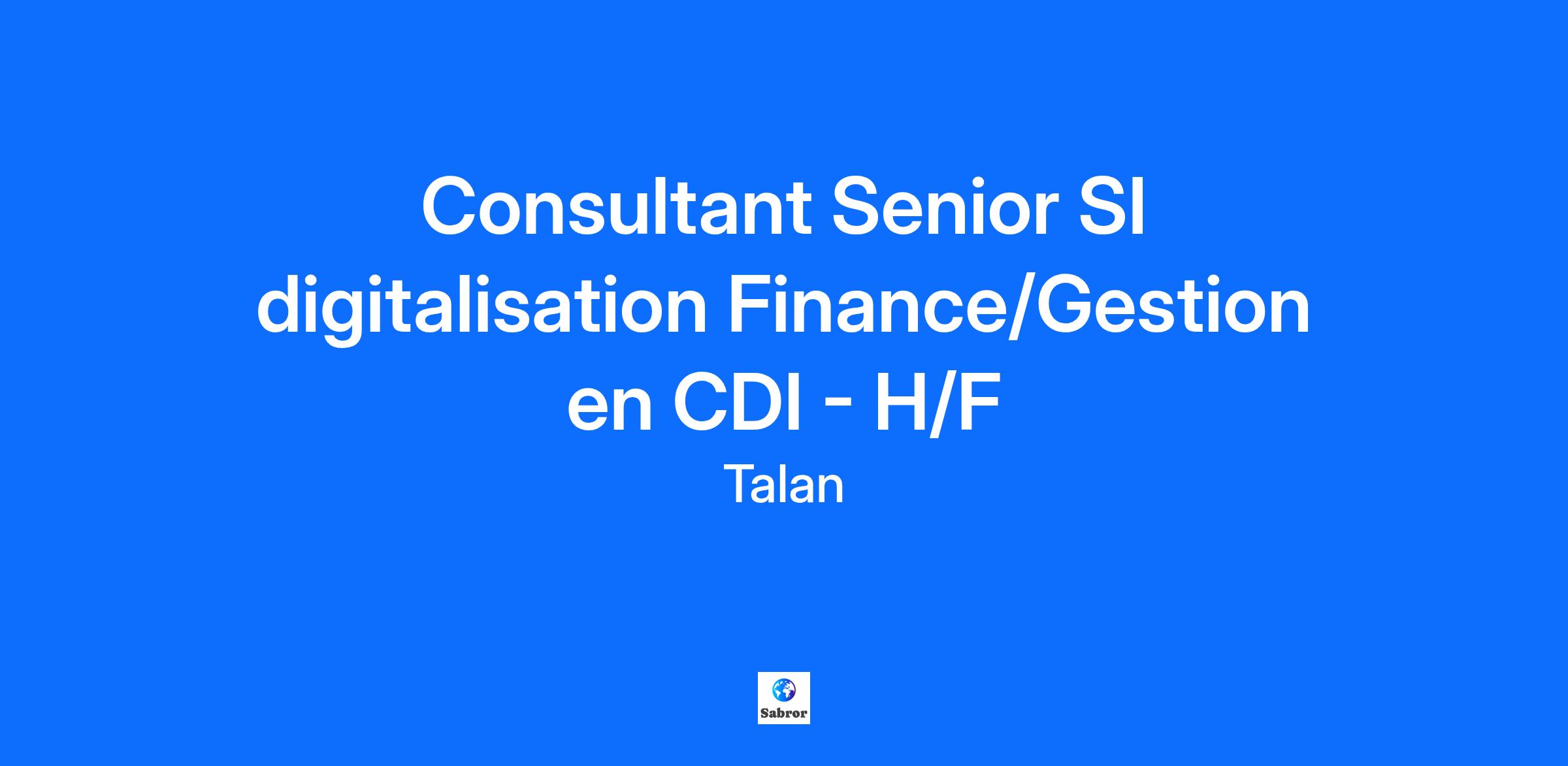 Consultant Senior SI digitalisation Finance/Gestion en CDI - H/F