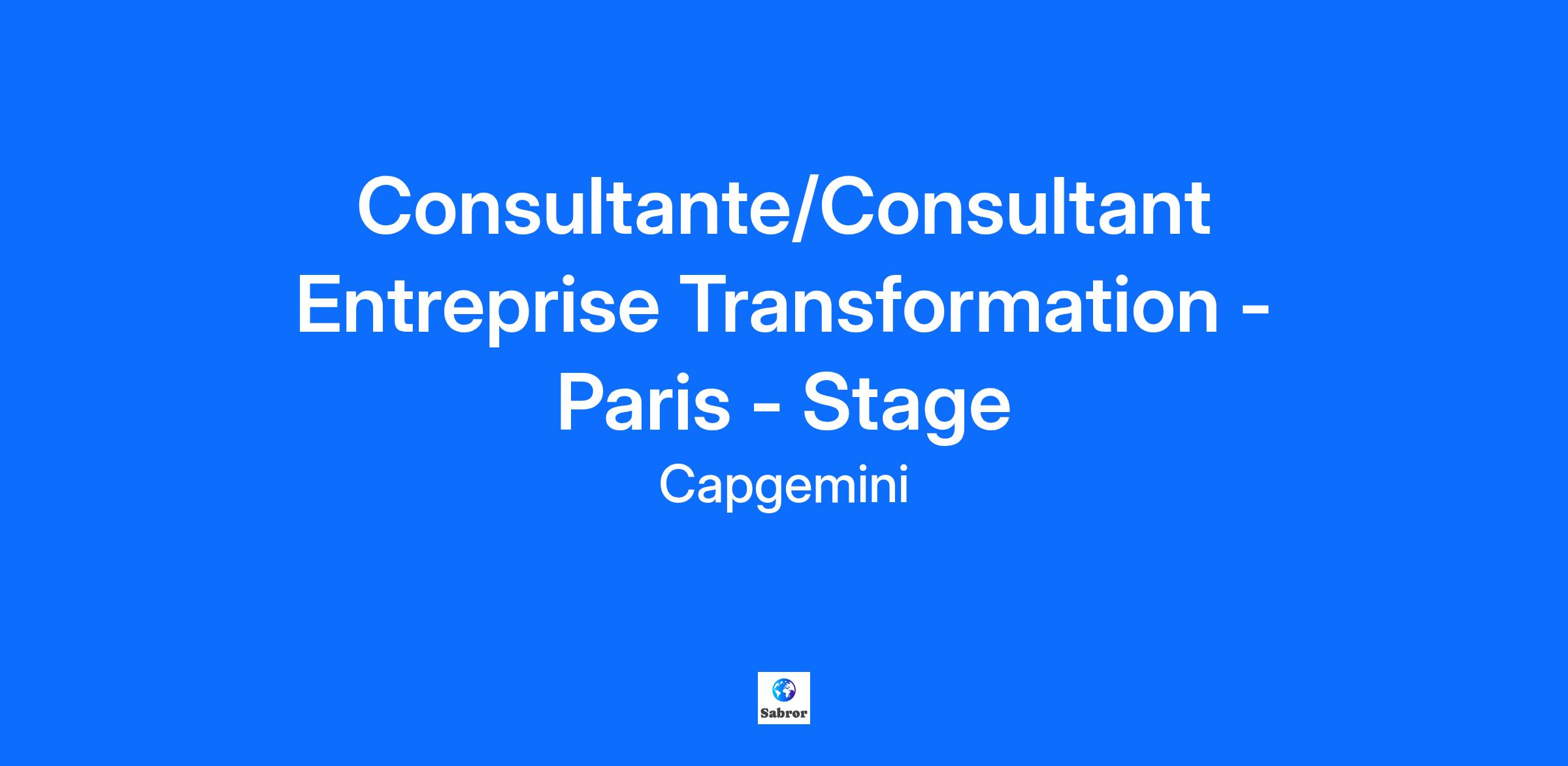 Consultante/Consultant Entreprise Transformation - Paris - Stage
