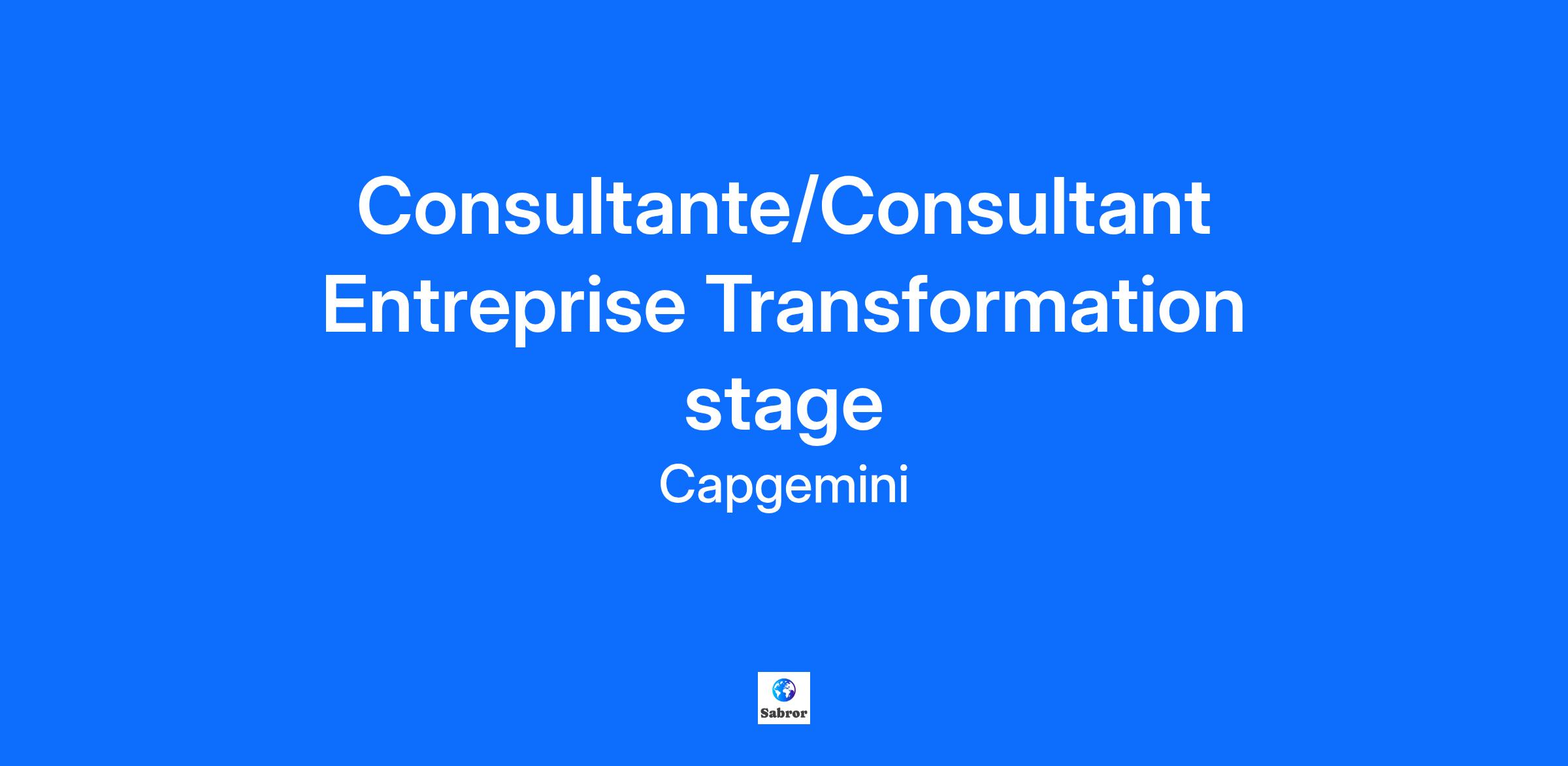 Chez Capgemini Invent, nous croyons que l'innovation est le moteur du changement. En tant que consultants en transformation digitale, nous combinons nos capacités stratégiques, créatives et scientifiques, en collaborant étroitement avec nos clients pour leur fournir des solutions de pointes. Rejoignez-nous pour conduire une transformation adaptée aux défis d'aujourd'hui et de demain. Stage à pourvoir dès janvier 2026 Vos missions Entreprise Transformation accompagne les directions d'entreprise dans l'optimisation de la performance de l'entreprise par l'amélioration des pratiques et processus IT, en intégrant des enjeux humains dans son modèle opérationnel. Les capabilities présentes : Business Technology: Optimisation de la performance de l'entreprise, amélioration des pratiques et processus au sein de la DSI. Corporate Expérience : Accompagnement des directions d'entreprise dans les fonctions achats, finance et opérations afin de garantir une excellence opérationnelle. Workforce & Organisation : Transformation RH et organisationnelle, conduite du changement. En tant que consultant(e) junior, vous serez amené(e) à accompagner les équipes sur des problématiques de stratégie, d’organisation et d’efficacité opérationnelle. Au sein d'une équipe projet et au contact du client : Vous serez en charge de collecter et d’analyser des données, via la conduite d’entretiens ou l’animation d’ateliers de co-construction, Vous établirez des présentations pour nos clients et contribuerez à la formalisation des recommandations stratégiques, Vous aurez également la possibilité de vous investir dans la vie interne du cabinet (coreteam, formations...). Votre profil Vous êtes en 5ème année d’école de commerce, d’ingénieur ou d’université, Vous êtes à la recherche d'un stage de fin d'études, Vous avez une appétence marquée pour les sujets liés aux transformations des entreprises et à l’innovation digitale, Pratiquant couramment l’anglais et le français, Curiosité intellectuelle et grande capacité d’adaptation, Vous souhaitez intégrer un environnement professionnel motivant où vous valoriserez votre esprit d’équipe, vos capacités d’analyse et de synthèse au service de nos clients. 3 raisons de nous rejoindre Qualité de vie au travail : accord de télétravail en France et à l’international, accord sur l’égalité professionnelle, la parentalité, l’équilibre des temps et la mobilité durable. Apprentissage en continu : certifications et formations en libre accès, accompagnement sur mesure avec votre career manager, parcours d’intégration sur plusieurs mois. Avantages groupe & CSE : plan actionnariat, tarifs préférentiels, remboursement partiel vacances, remboursement de votre abonnement sportif ou culturel. Nos engagements et priorités Le groupe Capgemini encourage une culture inclusive dans un cadre multiculturel et handi-accueillant. En nous rejoignant, vous intégrez un collectif qui valorise la diversité, développe le potentiel de ses talents, s’engage dans des initiatives solidaires avec ses partenaires, et se mobilise pour réduire son impact environnemental sur tous ses sites et auprès de ses clients. Capgemini Invent est la marque d’innovation digitale, de design et de transformation du groupe Capgemini. Etablie dans plus de 30 studios et plus de 60 dans le monde, elle compte une équipe de plus de 12 500 experts en stratégie, data scientists, concepteurs de produits et d’expériences ou encore experts en marques et en technologie qui développent de nouveaux services digitaux, produits, expériences et modèles d’affaire pour une croissance durable. Get The Future You Want* | www.capgemini.com/fr *Capgemini, le futur que vous voulez