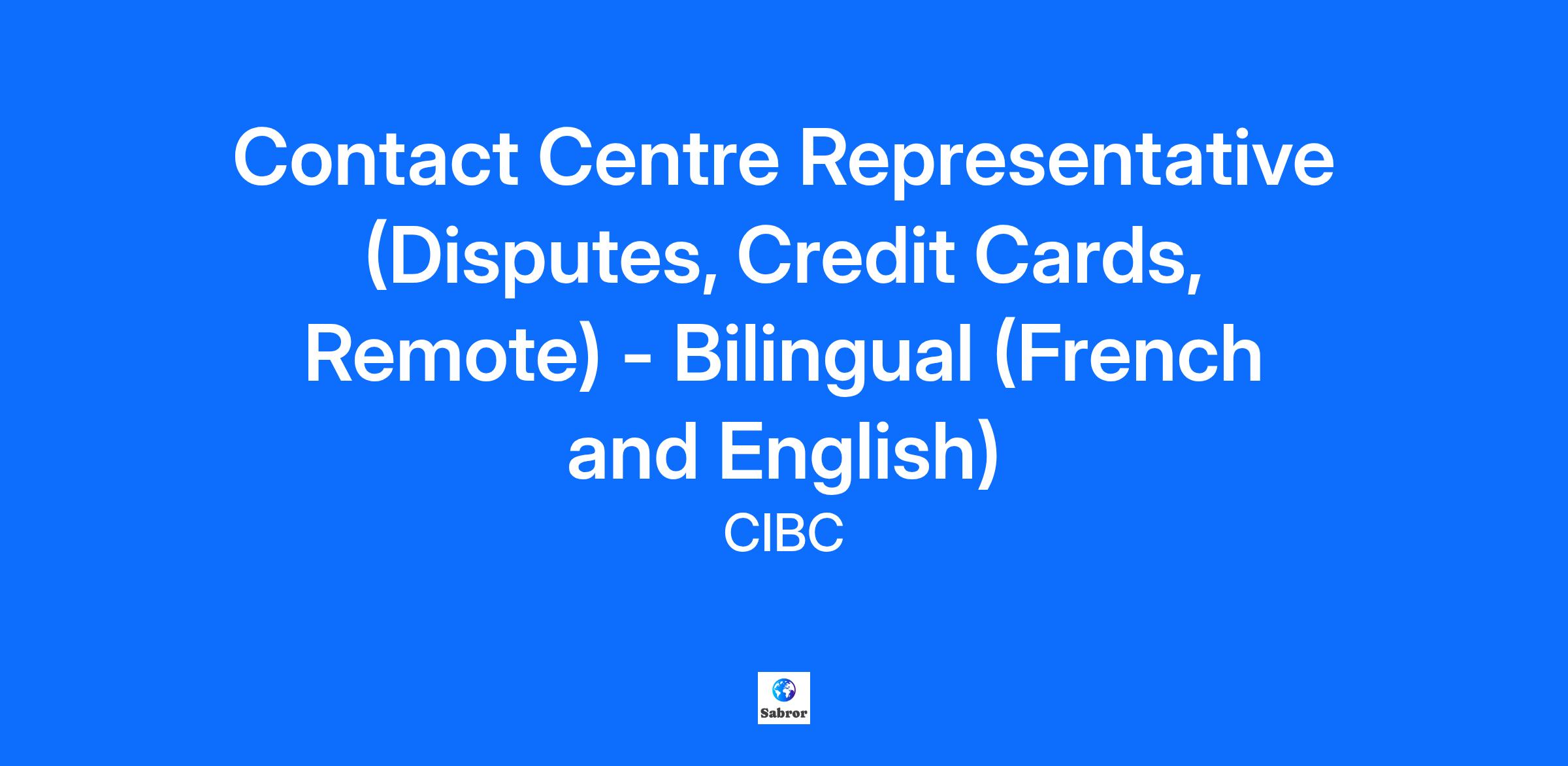We’re building a relationship-oriented bank for the modern world. We need talented, passionate professionals who are dedicated to doing what’s right for our clients. At CIBC, we embrace your strengths and your ambitions, so you are empowered at work. Our team members have what they need to make a meaningful impact and are truly valued for who they are and what they contribute. To learn more about CIBC, please visit CIBC.com What you'll be doing The Disputes Contact Centre Representative will respond to incoming inquiries or requests from our credit card clients in a pleasant, courteous, knowledgeable and professional manner. Dispute Contact Centre Representatives may also be assigned to make outbound calls to clients to resolve disputes, educate the client on the dispute handling process, or to request additional information from the client. At CIBC we enable the work environment most optimal for you to thrive in your role. You can effectively perform all work activities remotely, and will only be required to be on-site on an occasional basis. We have embarked on an Agent@Home remote work program. All employees are required to meet the Agent@Home program requirements and be able to attend your primary work location within two hours’ notice for any business-related purposes. Agent@Home Program Requirements You reside within a 2 hour radius of the CIBC main Office ( 440 King St, Fredericton) Ability to work independently as an Agent @ Home with a secure workspace, in a room or office with a door that closes it off from noises and distractions. Wired Internet connection, capable of continuously supporting excellent call quality and high-speed response rate (Internet connection can be connected to modem through hard cable (not wireless) with a minimum download speed of 15 mbps and upload speed of 10 mbps). Satellite internet providers are prohibited and cannot be used due to the impact on call quality and the stability of service. The start date for this role is November 17th, 2025. Contact Centre business hours are from Monday to Sunday, 8:00AM – 12:00AM (EST). You must be flexible to work evening shifts including weekends and holidays as your hours will be based on Contact Centre hours. If this sounds like you, but you are not sure if you are ready to be on the frontlines of client service, we’ve got you covered. The incredible program you’ll benefit from begins with 5 weeks of training consisting of a mix of in-class learning and on-the-job application How you'll succeed Call Ownership – Respond to incoming calls or make outbound calls. Take complete ownership of calls in a friendly, courteous and professional manner. Data Collection – Gather information as required by Visa and MasterCard Operating Regulations to process and support chargeback. Request and send customer correspondence and follow up with customers when necessary. Decision Making – Resolve credit card application inquiries by utilizing current Review, Secured, Duplication, Missing and Verification rules. Processing credit limit change requests while using clear and empathetic judgements. Who you are You put our clients first. You engage with purpose to find the right solutions. You go the extra mile, because it’s the right thing to do. You love to learn. You’re passionate about growing your knowledge, and you know that there is no limit to what you can achieve. You’re driven to succeed. You are motivated by accomplishing your goals and delivering your best to make an impact. You’re passionate about people. You find meaning in relationships, and surround yourself with a diverse network of partners. You build trust through respect and authenticity. You engage with your heart and mind. You care about people and you understand different perspectives. You listen and learn from the experience of others. Values matter to you. You bring your real self to work and you live our values - trust, teamwork, and accountability. You're fluent in French and English to serve our clients in the community. What CIBC Offers At CIBC, your goals are a priority. We start with your strengths and ambitions as an employee and strive to create opportunities to tap into your potential. We aspire to give you a career, rather than just a paycheck. We work to recognize you in meaningful, personalized ways including a competitive salary, incentive pay, banking benefits, a benefits program*, defined benefit pension plan*, an employee share purchase plan, a vacation offering, wellbeing support, and MomentMakers, our social, points-based recognition program. Our spaces and technological toolkit will make it simple to bring together great minds to create innovative solutions that make a difference for our clients. We cultivate a culture where you can express your ambition through initiatives like Purpose Day; a paid day off dedicated for you to use to invest in your growth and development. *Subject to plan and program terms and conditions What you need to know CIBC is committed to creating an inclusive environment where all team members and clients feel like they belong. We seek applicants with a wide range of abilities and we provide an accessible candidate experience. If you need accommodation, please contact Mailbox.careers-carrieres@cibc.com You need to be legally eligible to work at the location(s) specified above and, where applicable, must have a valid work or study permit. We may ask you to complete an attribute-based assessment and other skills tests (such as simulation, coding, French proficiency, MS Office). Our goal for the application process is to get to know more about you, all that you have to offer, and give you the opportunity to learn more about us. Job Location Fredericton-440 King,King Place 4th Floor Employment Type Regular Weekly Hours 37.5 Skills Call Center, Communication, Customer Service, Inbound Calls At CIBC, we are in business to help our clients, employees and shareholders achieve what is important to th