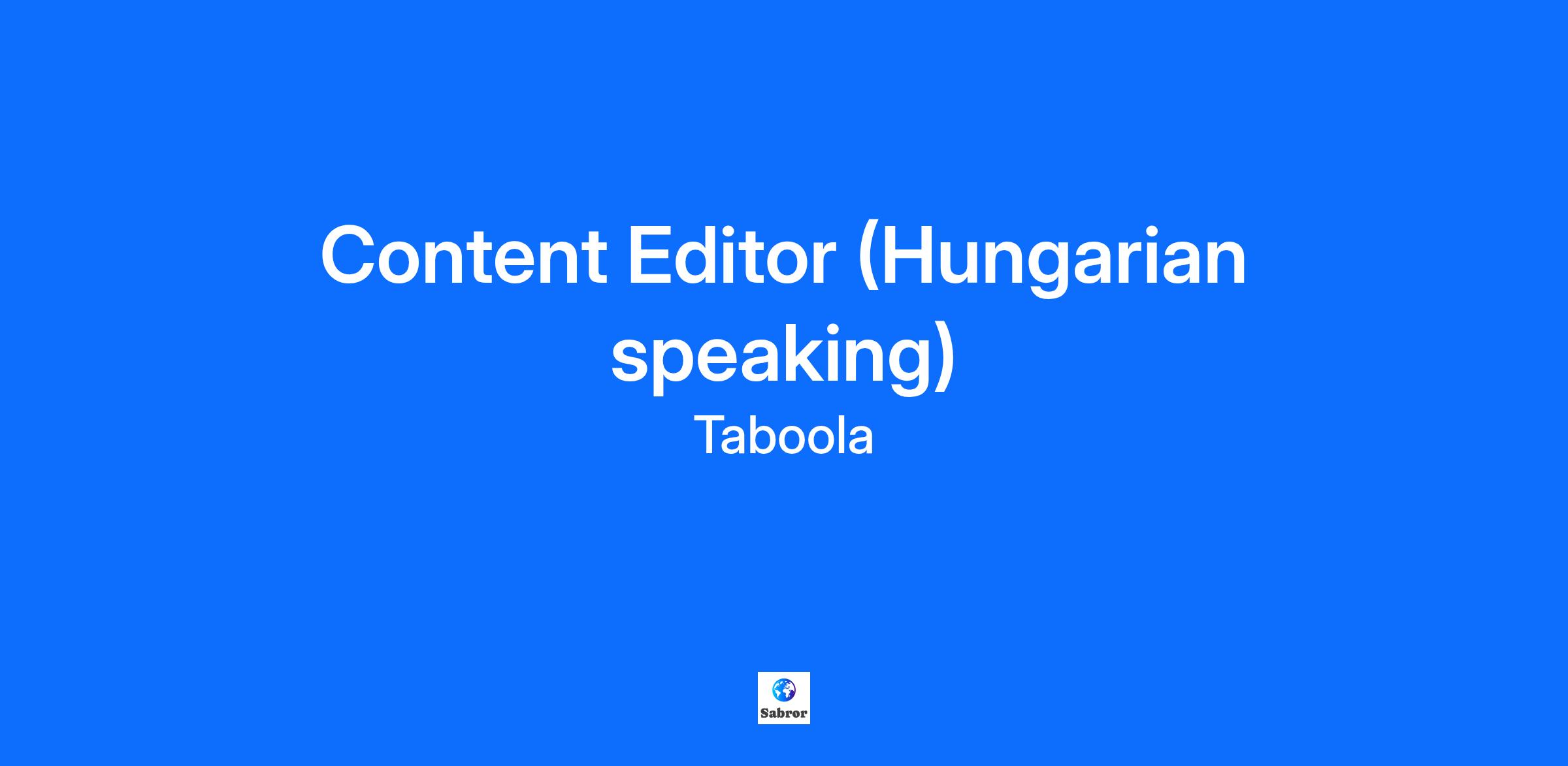 Online Content Editor (Hungarian Speaking) – Remote, EMEA Realize your potential by joining the leading performance-driven advertising company! As an Online Content Editor focused on Hungarian audiences, you will shape the content feeds that millions of people see every day on leading mobile platforms. You will review and curate timely, high-quality articles that reflect the interests of local readers. Working remotely across EMEA, you’ll play a vital role in ensuring Taboola’s content recommendations are accurate, relevant, and engaging. To thrive in this role, you’ll need: Native or professional fluency in Hungarian and English 2+ years’ experience in digital journalism, editing, or publishing Deep familiarity with Hungarian media, politics, and popular culture Ability to work independently and manage editorial workflows Confidence using editorial or content management tools Bonus points if you have: Experience with SEO, content recommendation platforms, or mobile content delivery Background in news curation, editorial policy, or audience engagement How you’ll make an impact: As an Online Content Editor, you will: Review and curate news and editorial content for Hungarian feeds Ensure articles meet standards for accuracy, legality, recency, and source diversity Apply strong editorial judgment to maintain balance across categories Monitor breaking news and cultural trends to keep feeds updated Flag risks, policy violations, or misinformation Support platform quality through consistent and timely content decisions Why Taboola? If you ask Taboolars what they love about working here, they’ll tell you that they’ve been empowered to realize their full potential while growing and learning from and with smart and talented people. They’ll also share more about: Adam Singolda, Taboola Founder and CEO says: “You can copy anything from another business but you can’t copy a company’s culture.” Well-being: Enjoy comprehensive benefits, a fully stocked kitchen, and location-specific perks. Flexibility: We offer a hybrid work schedule with 3 days in-office with an option to come in more often if desired. Work with some of the biggest names: Our publisher partners include Yahoo, Conde Nast, Fox Sports, NBCU, ESPN, CBS, and E! Online. Our advertiser clients include Wells Fargo, Honda, Pinterest, Expedia and Honda. Ready to realize your potential? Taboola is an equal opportunity employer and we value diversity in all forms. We are committed to creating an inclusive environment for all employees and believe such an environment is critical for success. Employment is decided on the basis of qualifications, merit, and business need. Learn more about #TaboolaLife on LinkedIn, Facebook, Instagram, X, YouTube, & the Taboola Life Blog. About Taboola Taboola empowers businesses to grow through performance advertising technology that goes beyond search and social and delivers measurable outcomes at scale. Taboola works with thousands of businesses who advertise directly on Realize, Taboola’s powerful ad platform, reaching approximately 600M daily active users across some of the best publishers in the world. Publishers like NBC News, Yahoo, and OEMs such as Samsung, Xiaomi and others use Taboola’s technology to grow audience and revenue, enabling Realize to offer unique data, specialized algorithms, and unmatched scale. #LI-Remote #LI-LG1