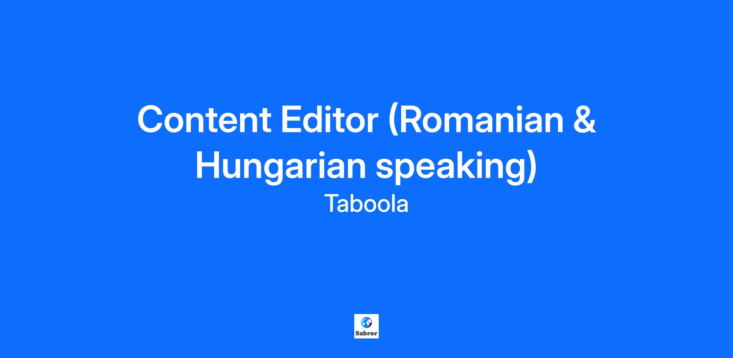 Online Content Editor (Romanian & Hungarian speaking) – Remote, EMEA Realize your potential by joining the leading performance-driven advertising company! As an Online Content Editor focused on Romanian and Hungarian audiences, you will shape the content feeds that millions of people see every day on leading mobile platforms. You will review and curate timely, high-quality articles that reflect the interests of local readers. Working remotely across EMEA, you’ll play a vital role in ensuring Taboola’s content recommendations are accurate, relevant, and engaging. To thrive in this role, you’ll need: Native or professional fluency in Romanian, Hungarian and English 2+ years’ experience in digital journalism, editing, or publishing Deep familiarity with Romanian media, politics, and popular culture Ability to work independently and manage editorial workflows Confidence using editorial or content management tools Bonus points if you have: Experience with SEO, content recommendation platforms, or mobile content delivery Background in news curation, editorial policy, or audience engagement How you’ll make an impact: As an Online Content Editor, you will: Review and curate news and editorial content for Romanian and Hungarian feeds Ensure articles meet standards for accuracy, legality, recency, and source diversity Apply strong editorial judgment to maintain balance across categories Monitor breaking news and cultural trends to keep feeds updated Flag risks, policy violations, or misinformation Support platform quality through consistent and timely content decisions Why Taboola? If you ask Taboolars what they love about working here, they’ll tell you that they’ve been empowered to realize their full potential while growing and learning from and with smart and talented people. They’ll also share more about: Adam Singolda, Taboola Founder and CEO says: “You can copy anything from another business but you can’t copy a company’s culture.” Well-being: Enjoy comprehensive benefits, a fully stocked kitchen, and location-specific perks. Flexibility: We offer a hybrid work schedule with 3 days in-office with an option to come in more often if desired. Work with some of the biggest names: Our publisher partners include Yahoo, Conde Nast, Fox Sports, NBCU, ESPN, CBS, and E! Online. Our advertiser clients include Wells Fargo, Honda, Pinterest, Expedia and Honda. Ready to realize your potential? Taboola is an equal opportunity employer and we value diversity in all forms. We are committed to creating an inclusive environment for all employees and believe such an environment is critical for success. Employment is decided on the basis of qualifications, merit, and business need. Learn more about #TaboolaLife on LinkedIn, Facebook, Instagram, X, YouTube, & the Taboola Life Blog. About Taboola Taboola empowers businesses to grow through performance advertising technology that goes beyond search and social and delivers measurable outcomes at scale. Taboola works with thousands of businesses who advertise directly on Realize, Taboola’s powerful ad platform, reaching approximately 600M daily active users across some of the best publishers in the world. Publishers like NBC News, Yahoo, and OEMs such as Samsung, Xiaomi and others use Taboola’s technology to grow audience and revenue, enabling Realize to offer unique data, specialized algorithms, and unmatched scale. #LI-Remote #LI-LG1